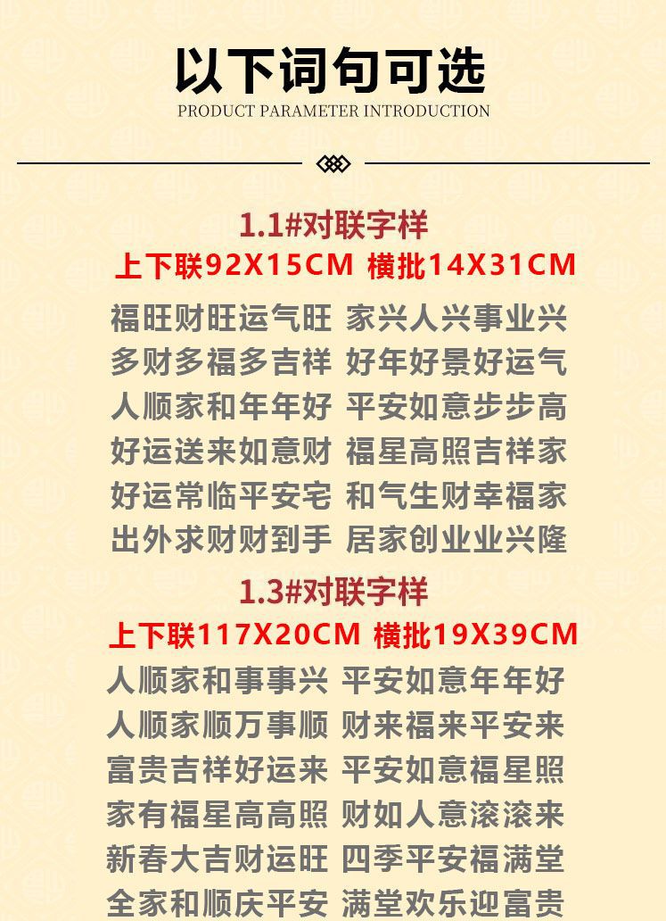| 1.3 people are happy with family and things, safe and ruyi niannianhao(1.3人顺家和事事兴 平安如意年年好) | USD $6.36 | 303 piece available |