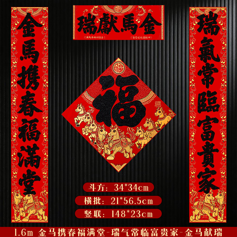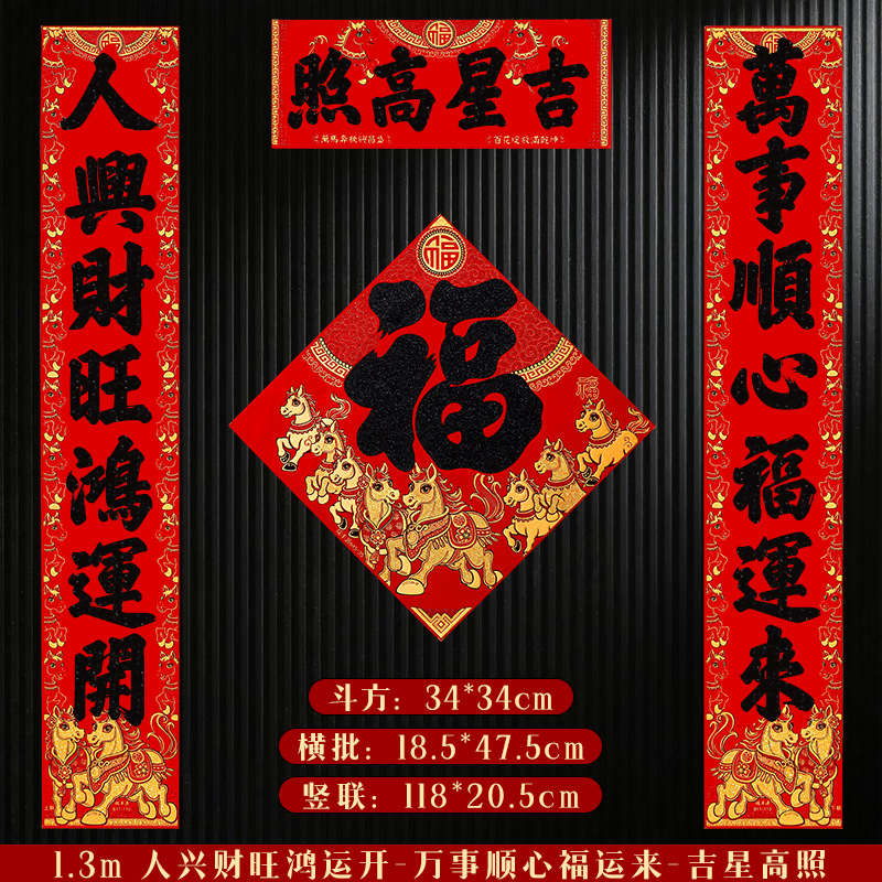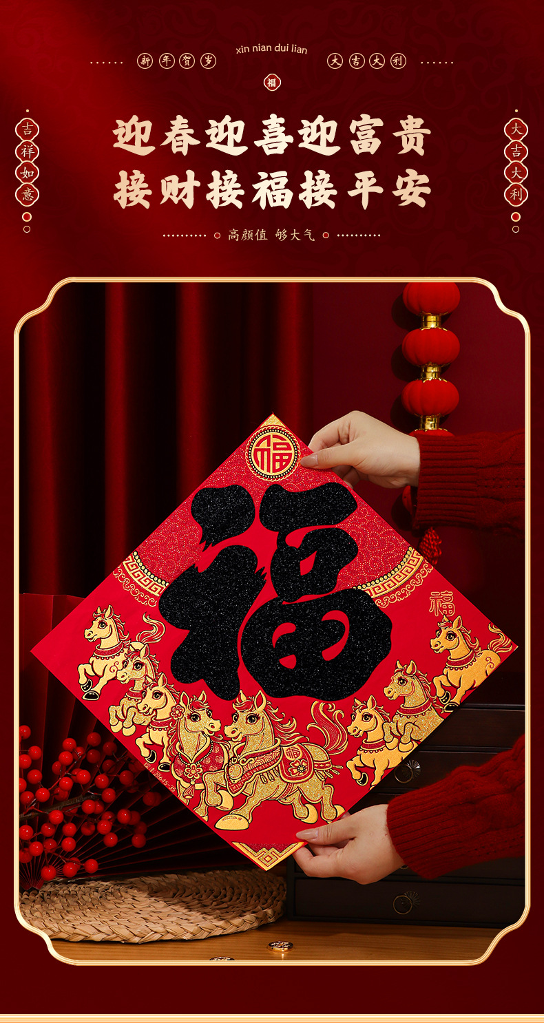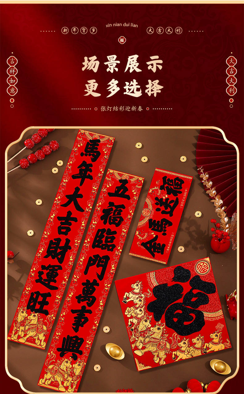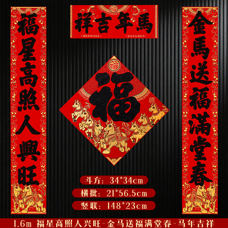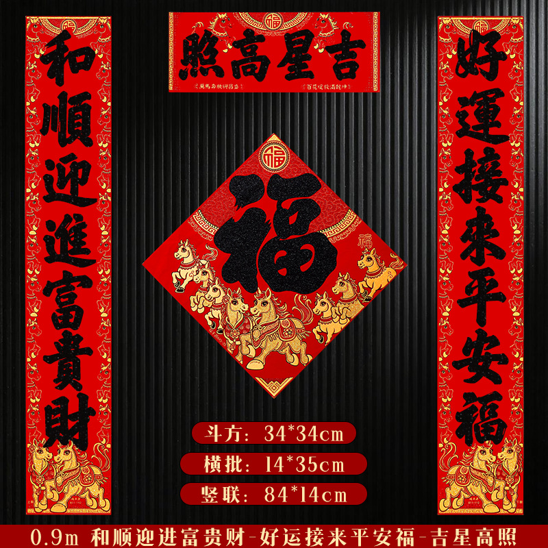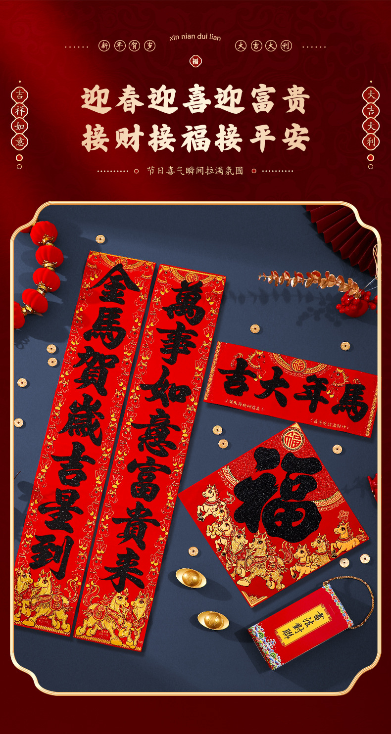 马年对联2026新年新款绒布门联过年春节农村大门贺年春联自带背胶