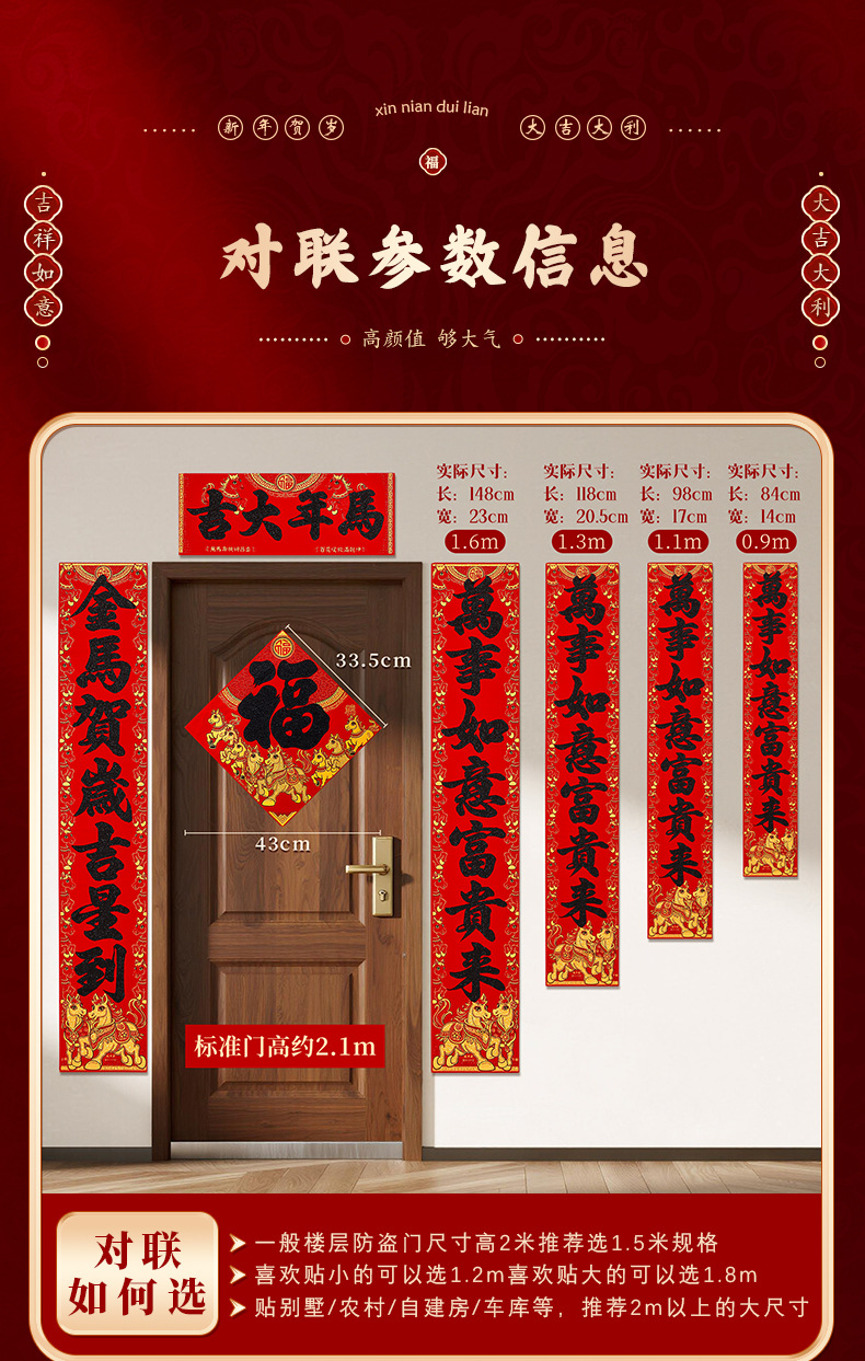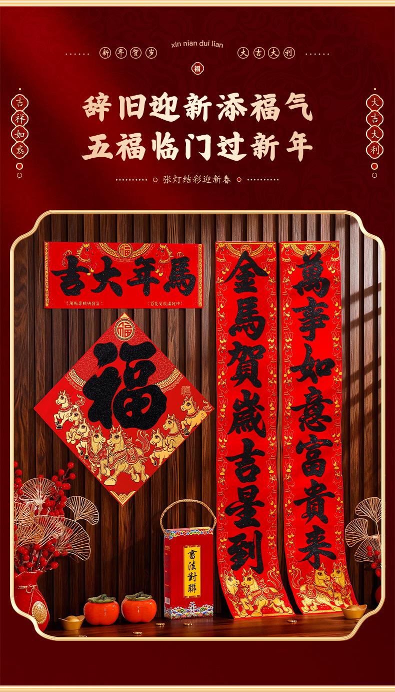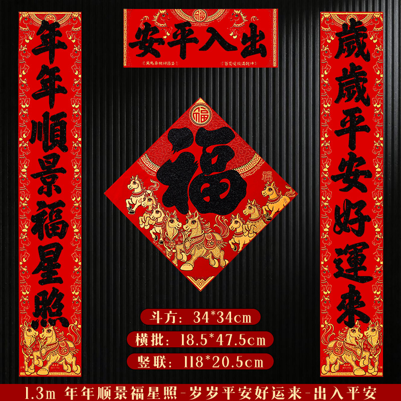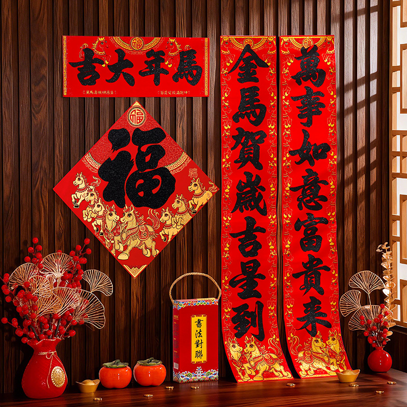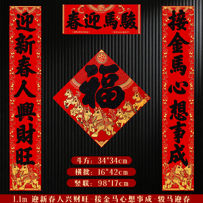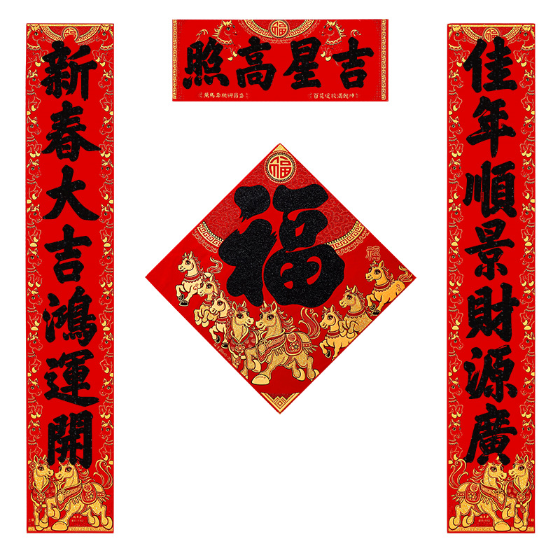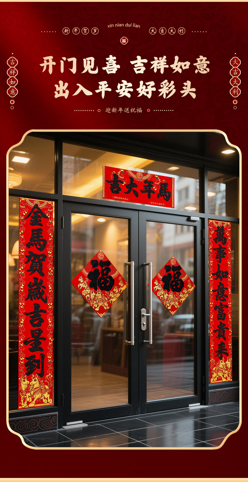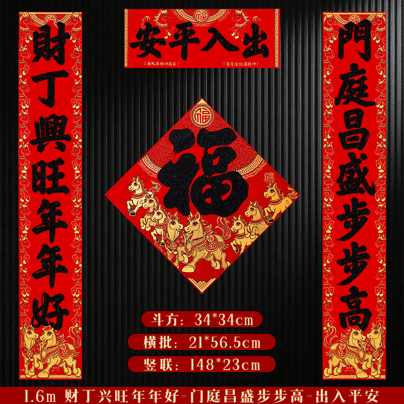 马年对联2026新年新款绒布门联过年春节农村大门贺年春联自带背胶