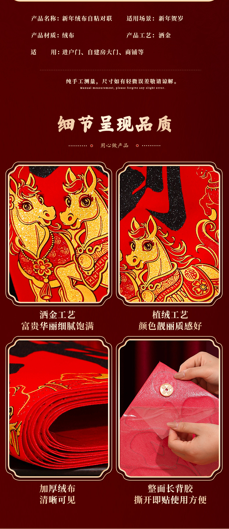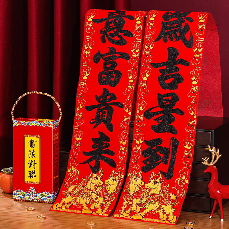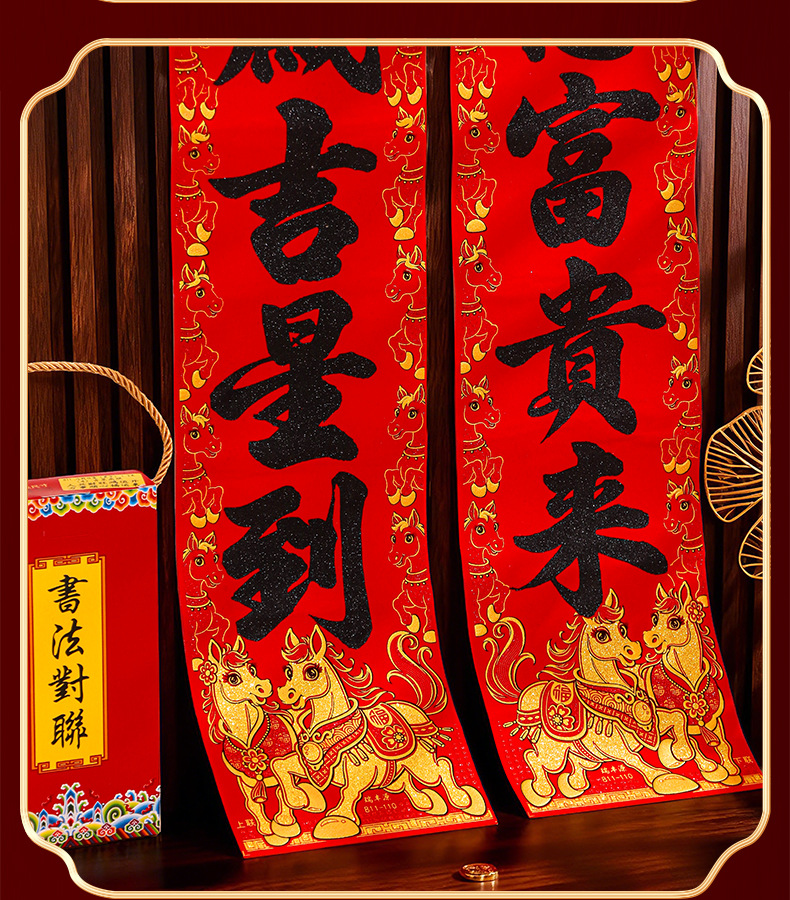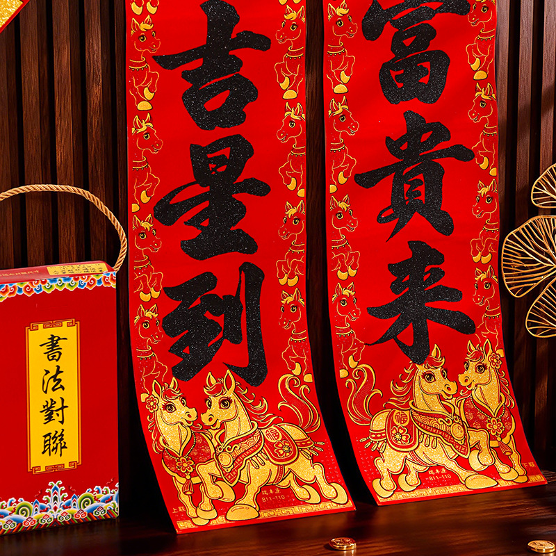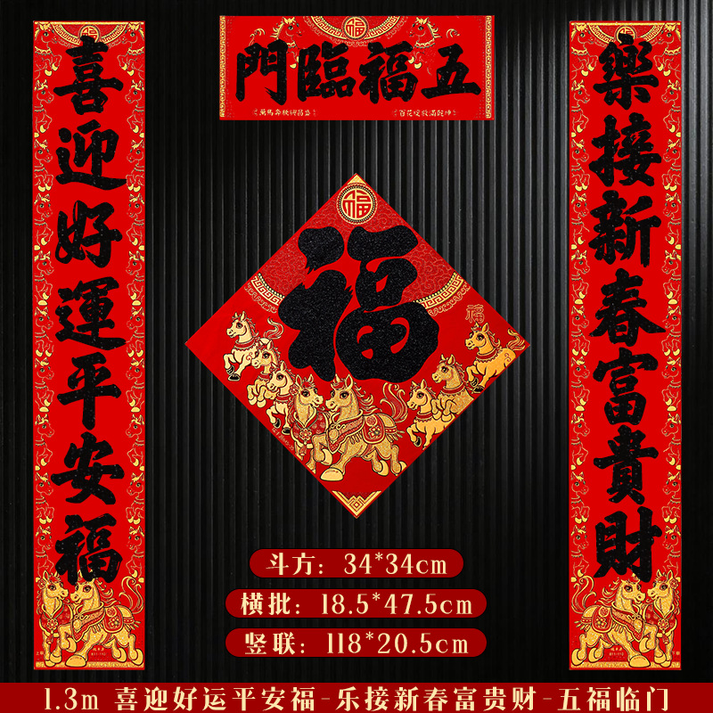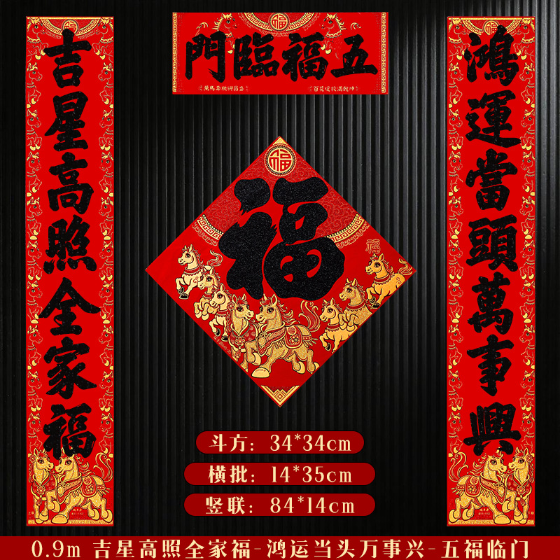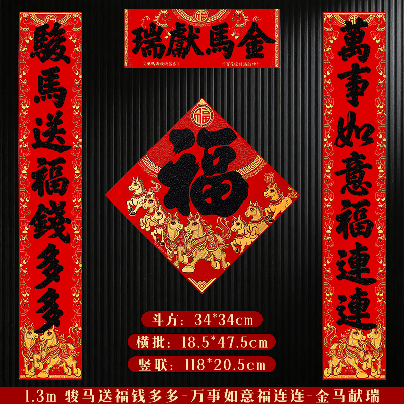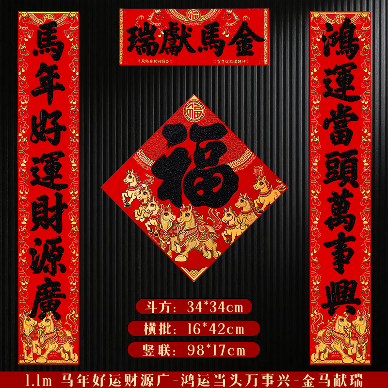 马年对联2026新年新款绒布门联过年春节农村大门贺年春联自带背胶