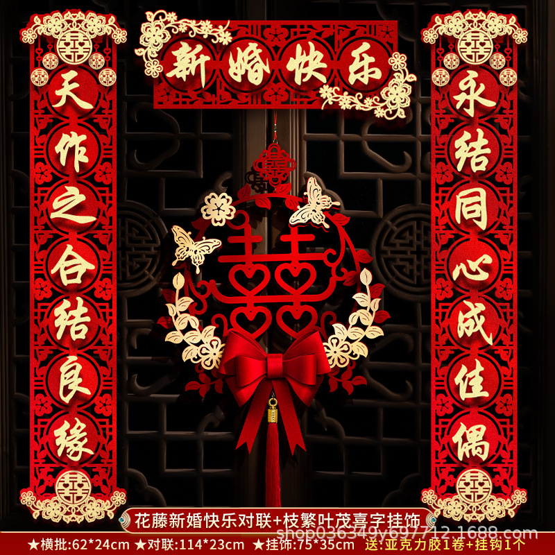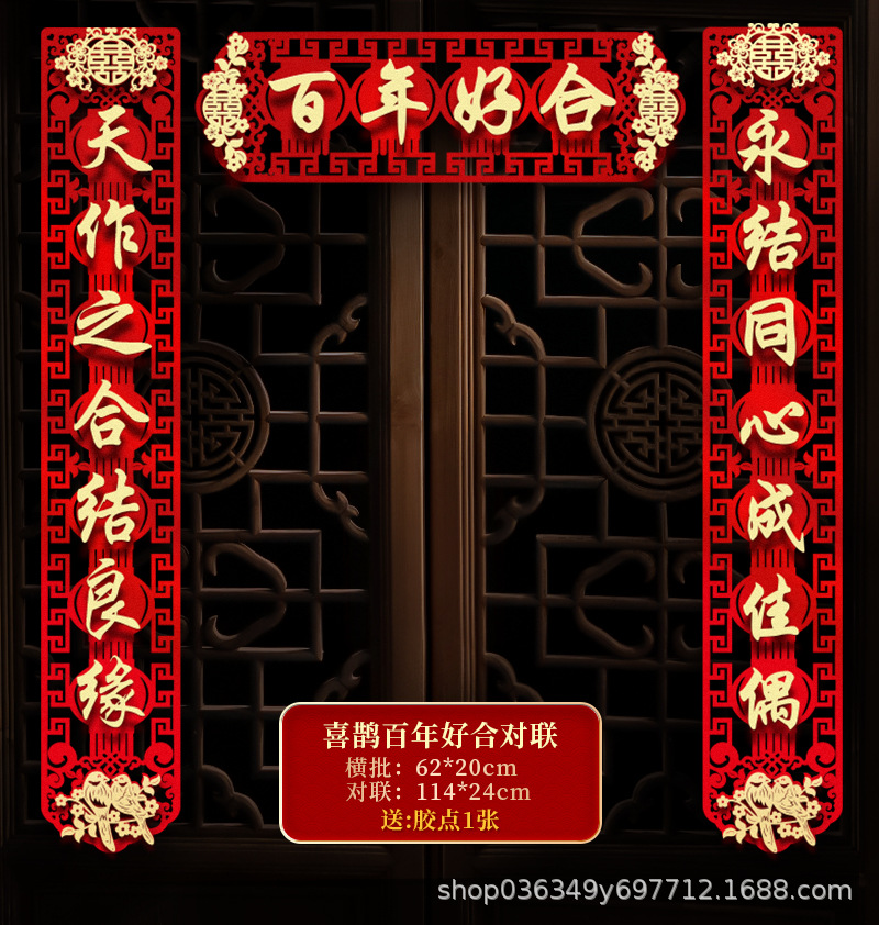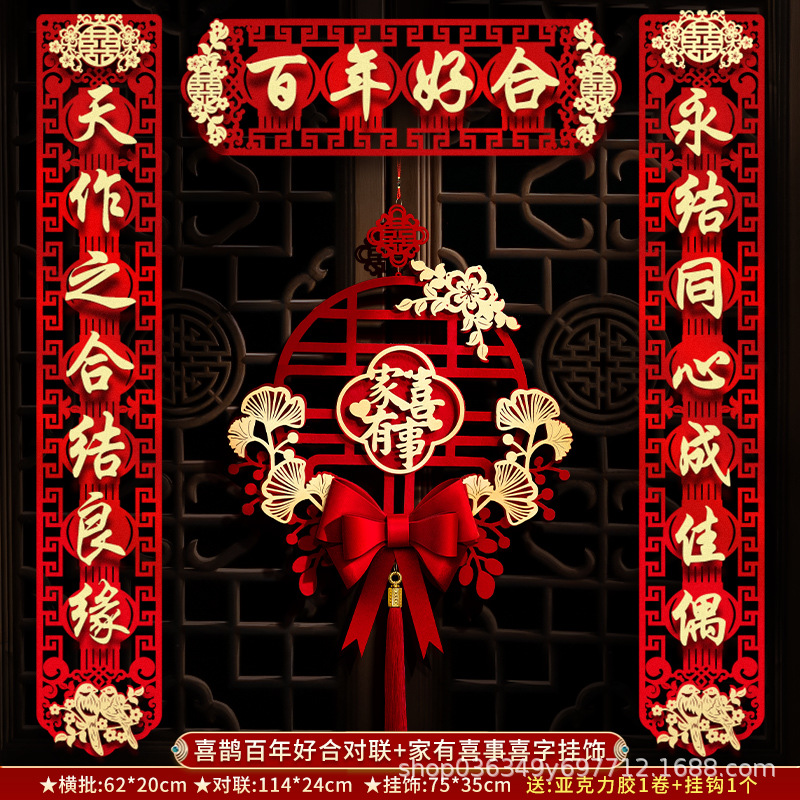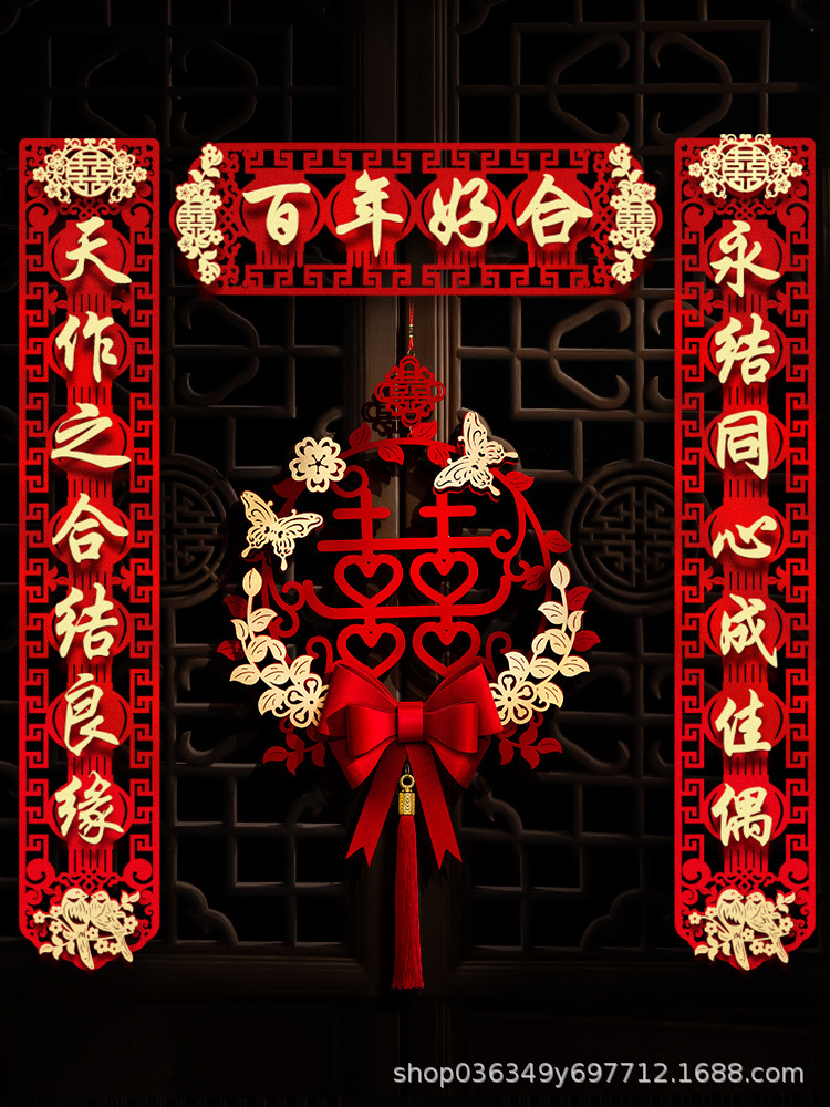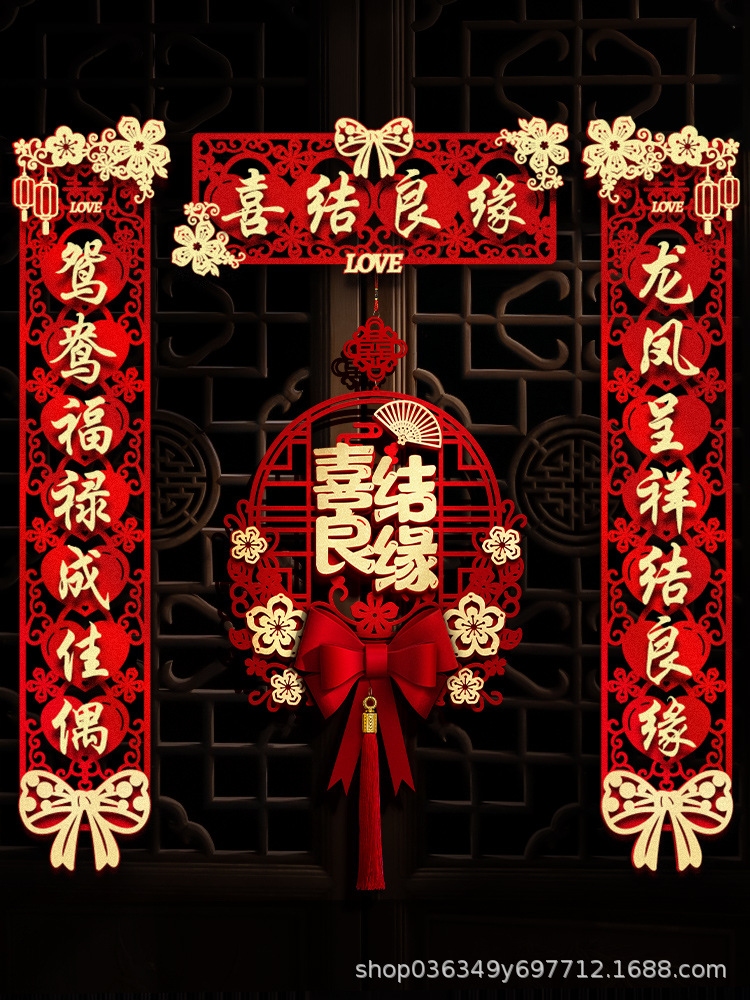 结婚对联男方大门喜联新婚女方出嫁婚房入户门房门全套农村婚礼