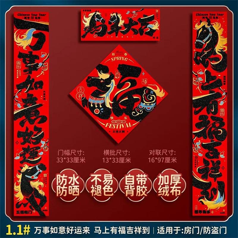 对联2026马年新年春联铜版纸烫金对联植绒对联农村大门摆摊批发