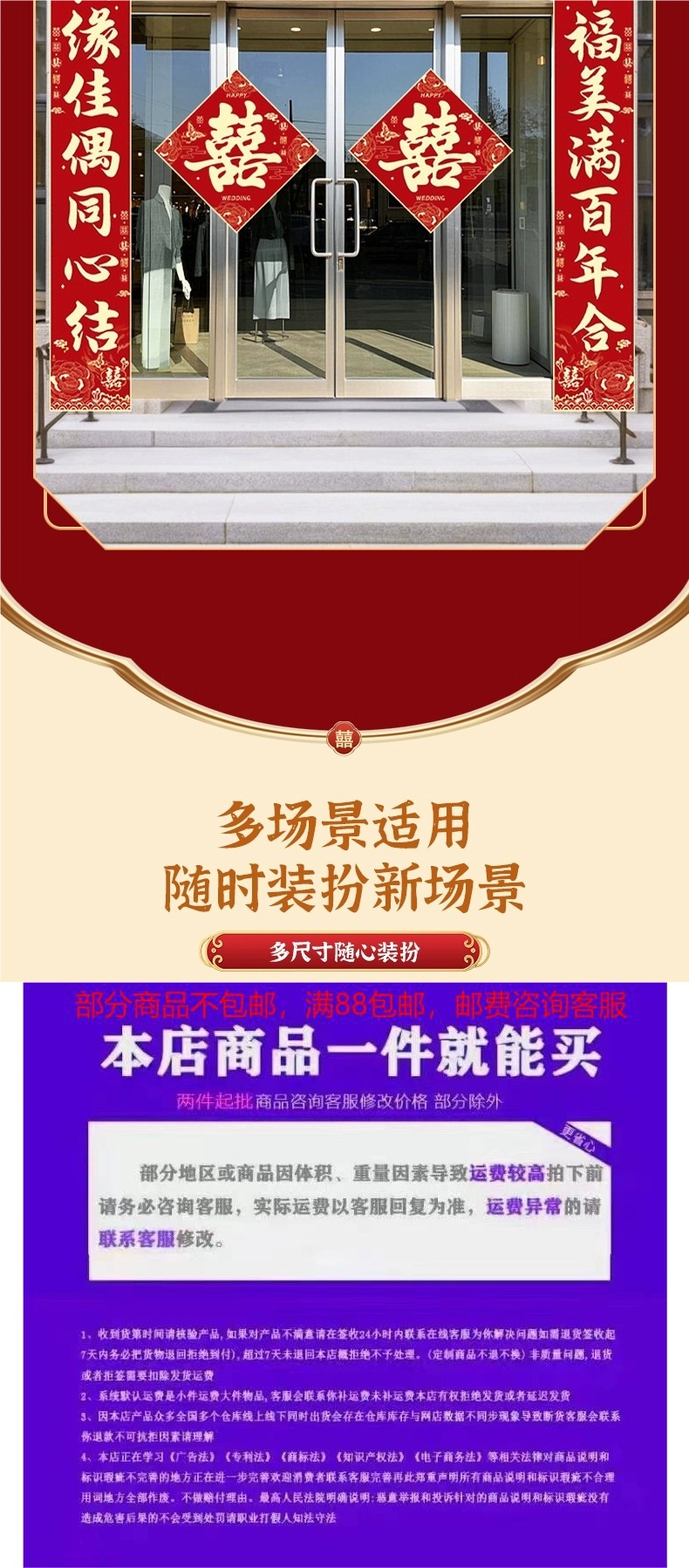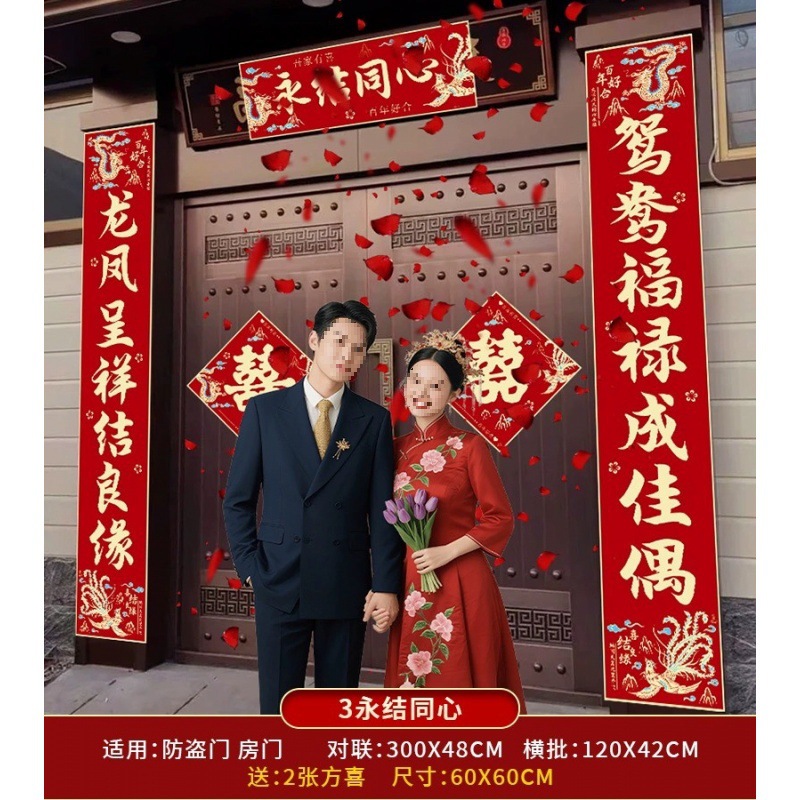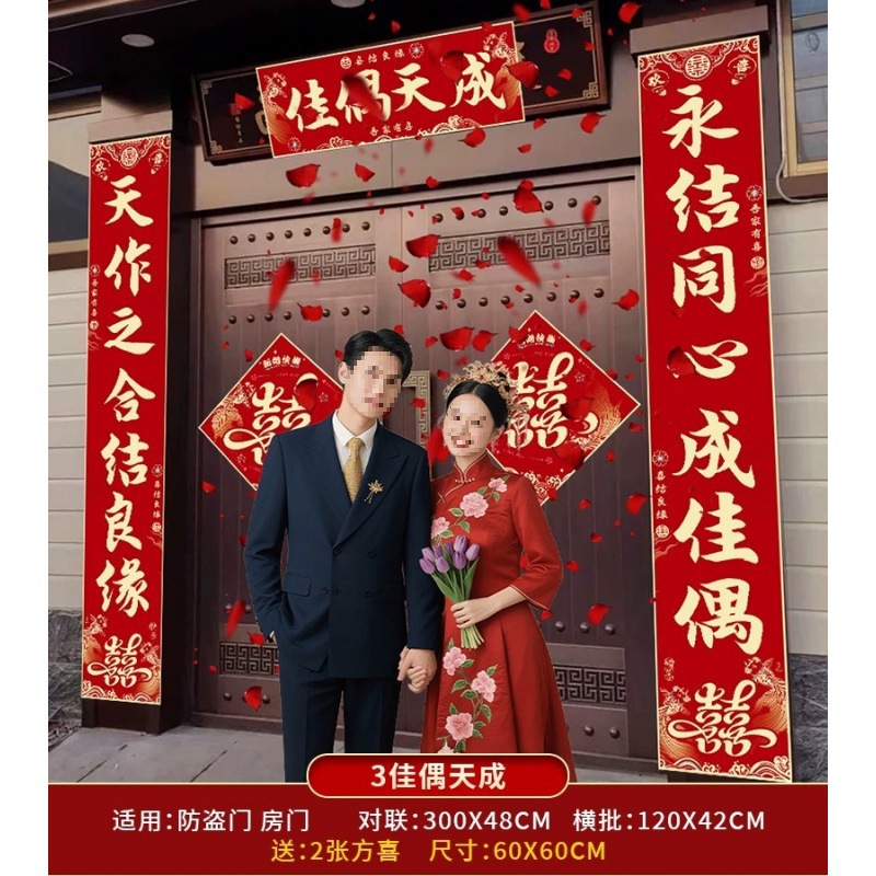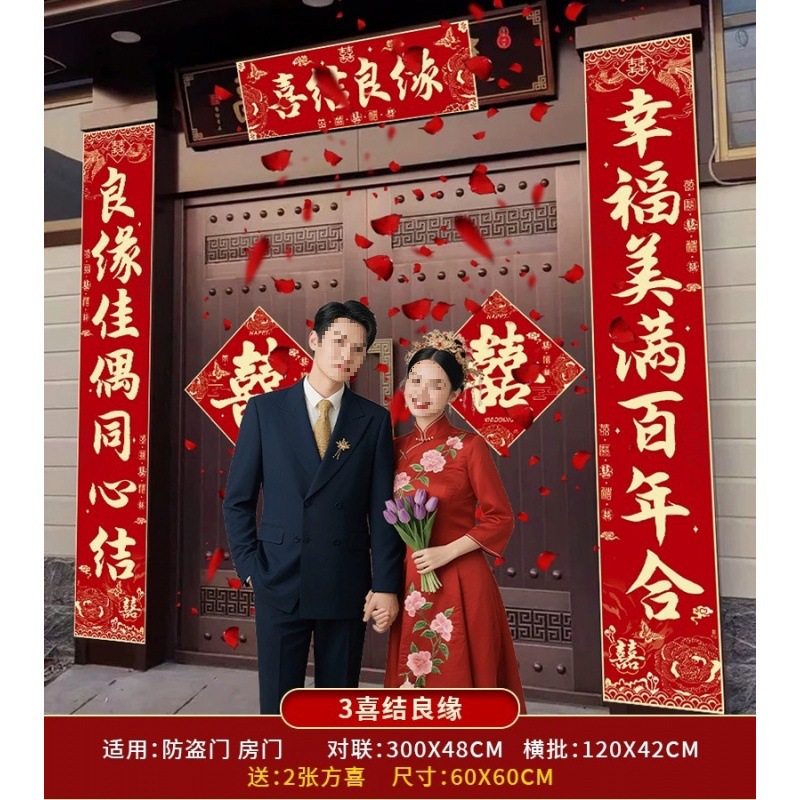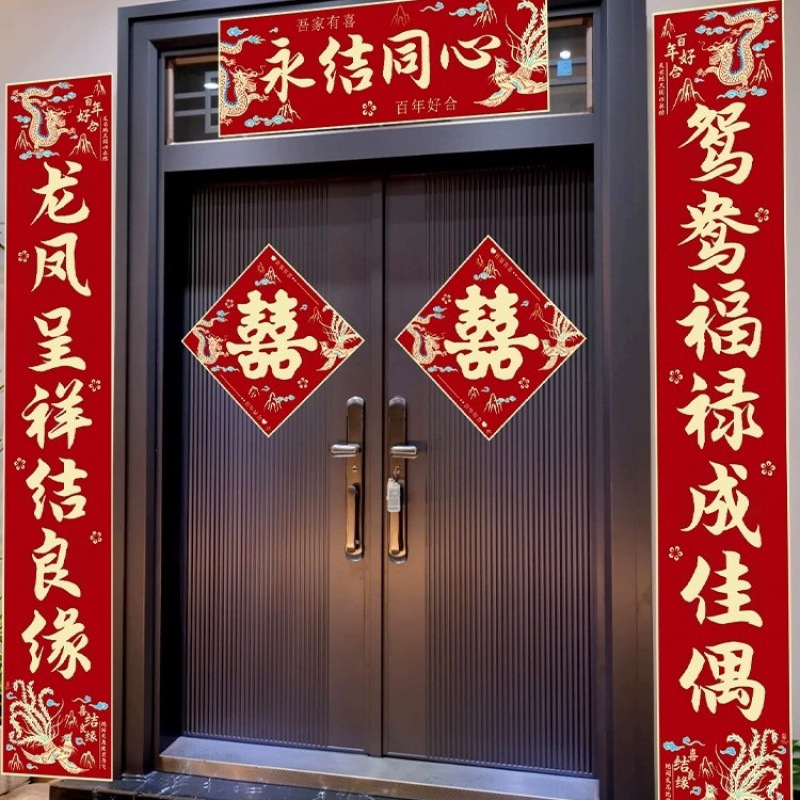 结婚对联男方农村大门喜联全套婚礼女方出嫁入户门喜字贴装饰