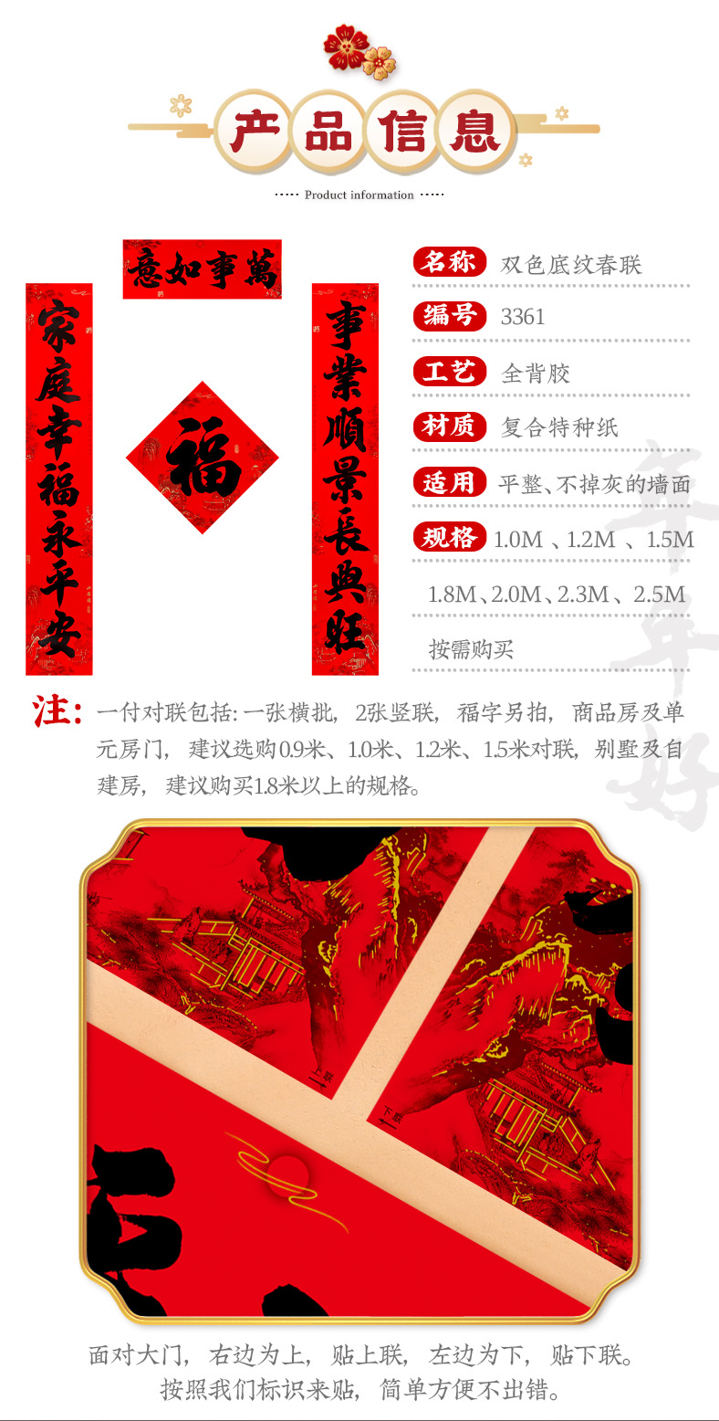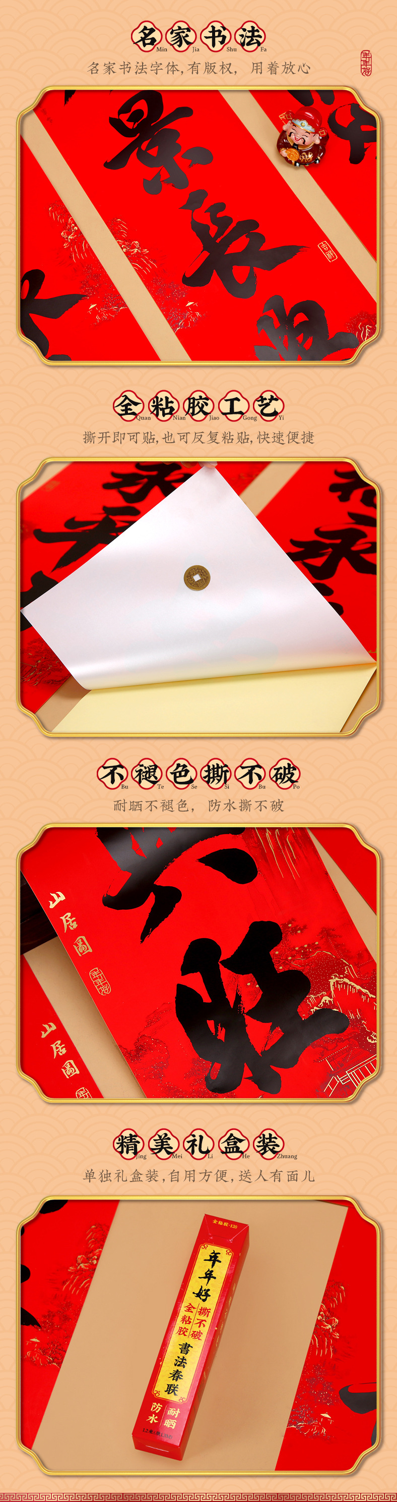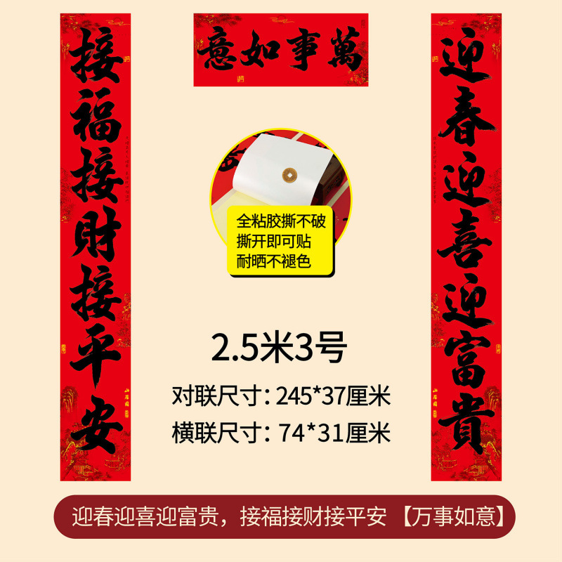 年年好马年家用全背胶春联农村大门11言新年春节书法黑字对联厂家