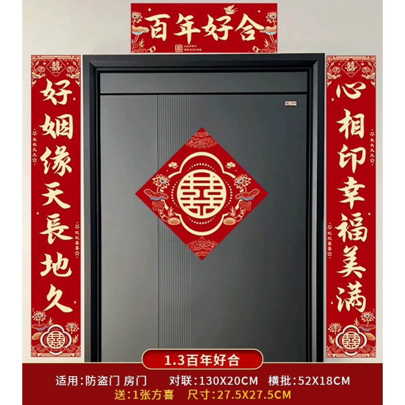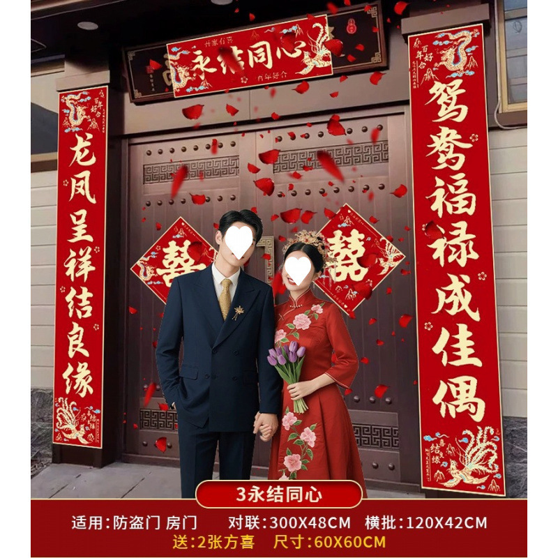 结婚对联男方农村大门喜联全套婚礼女方出嫁入户门喜字贴装饰