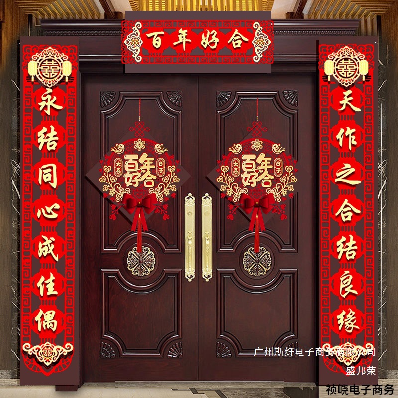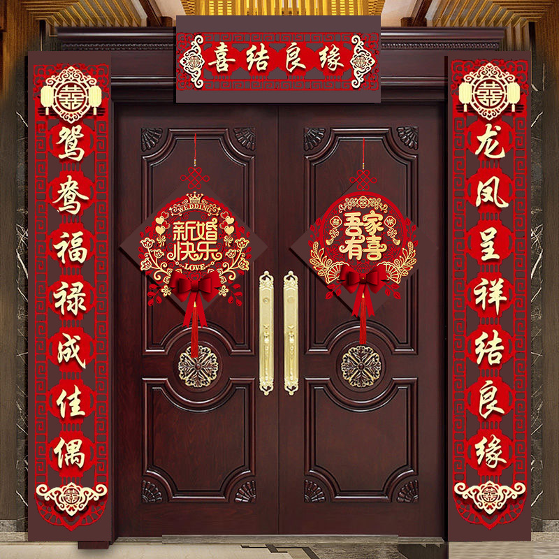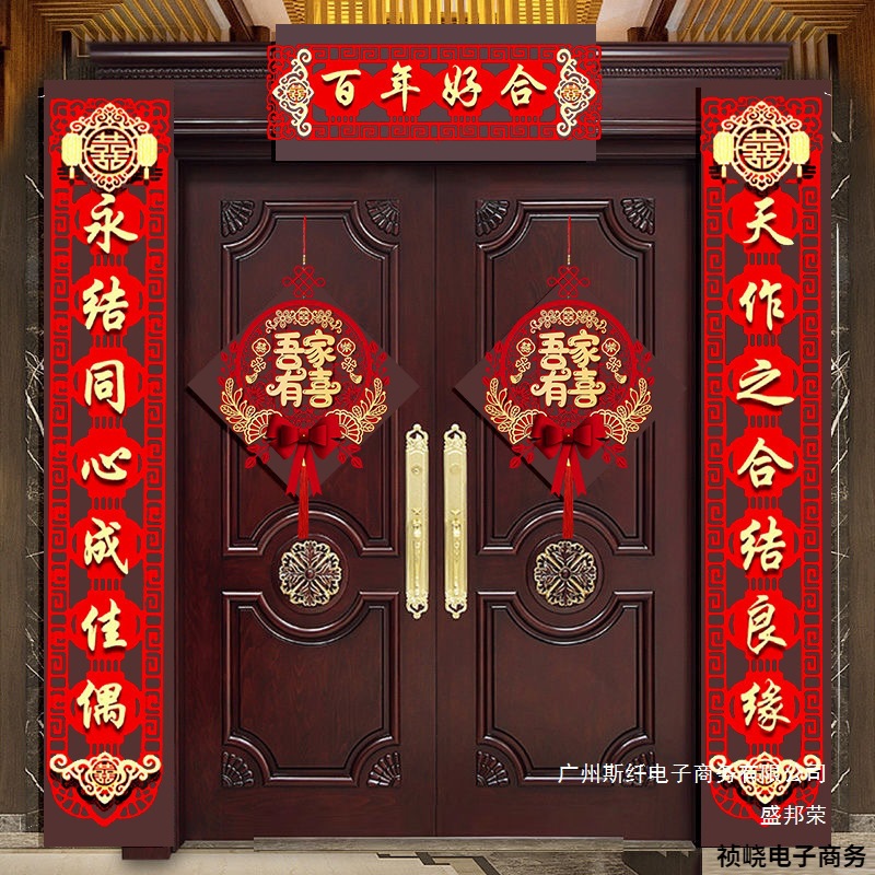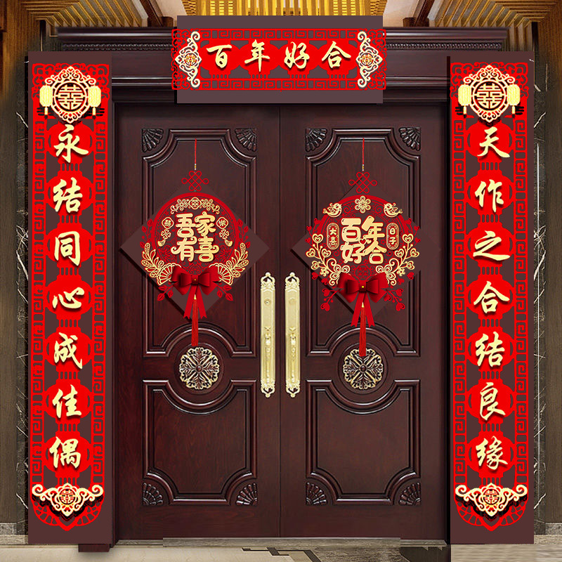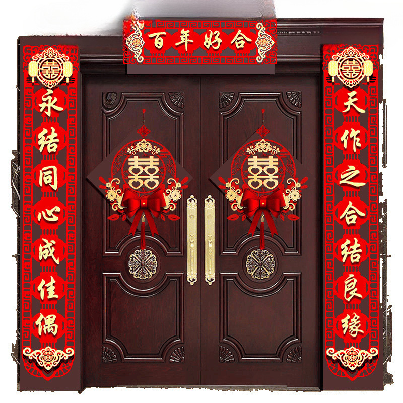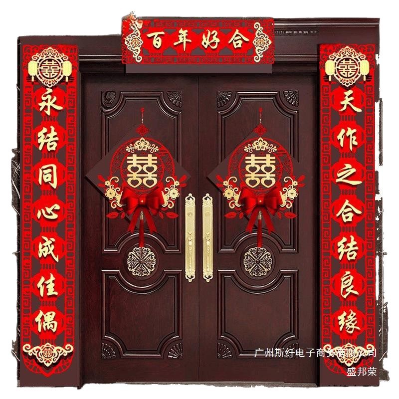厂家直销结婚对联大门婚庆婚房入户门双开门女方男方全套农村喜联