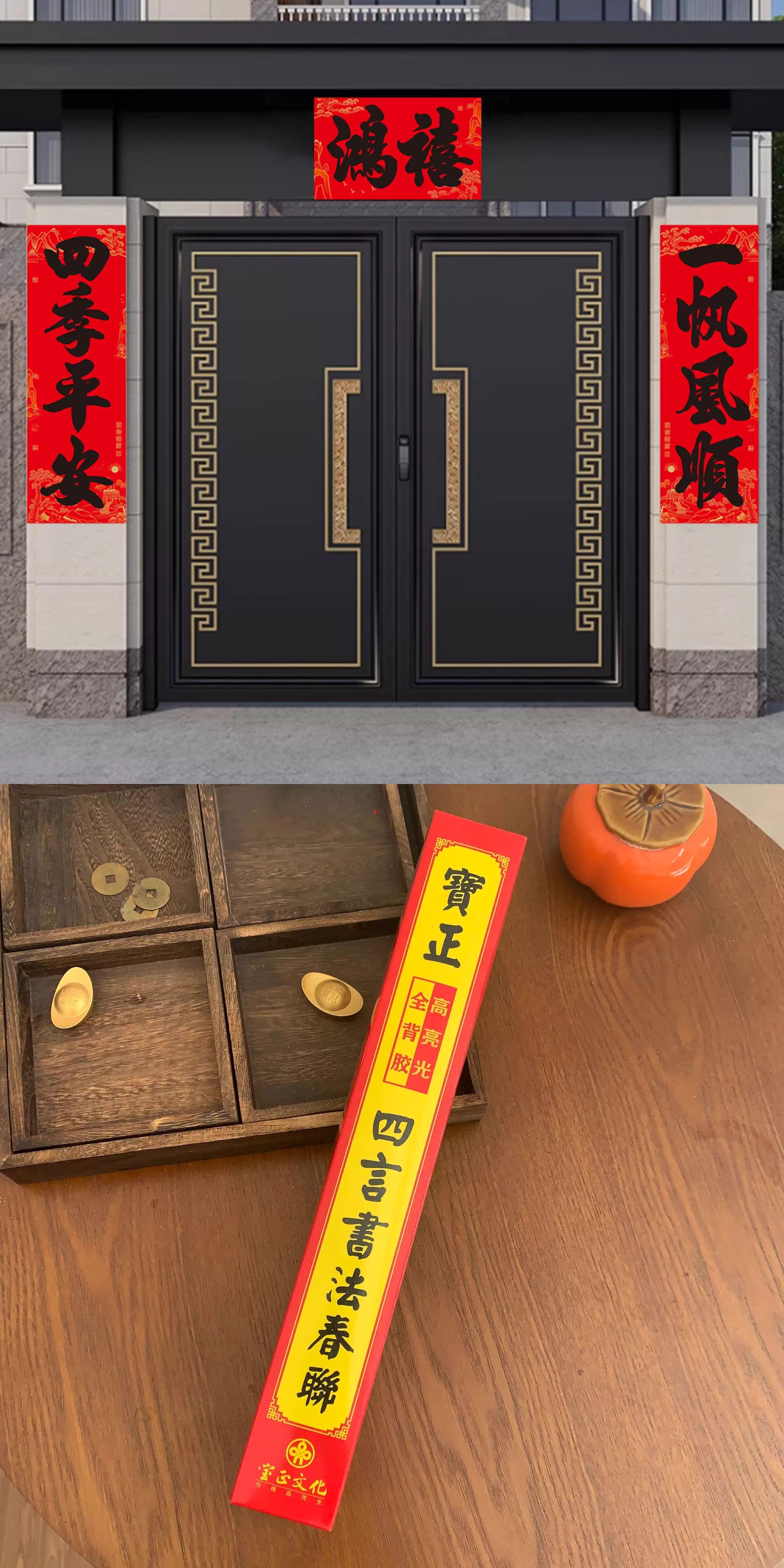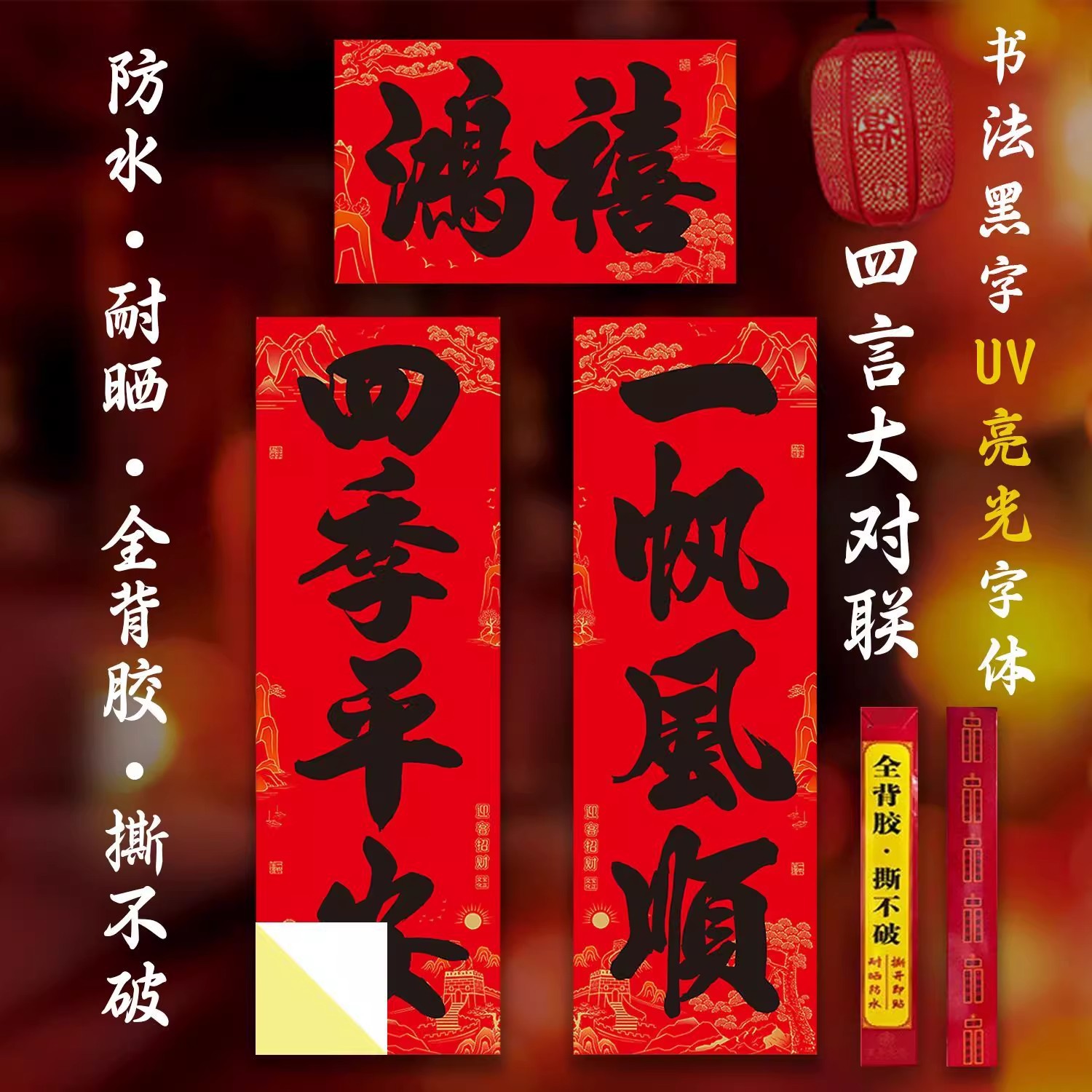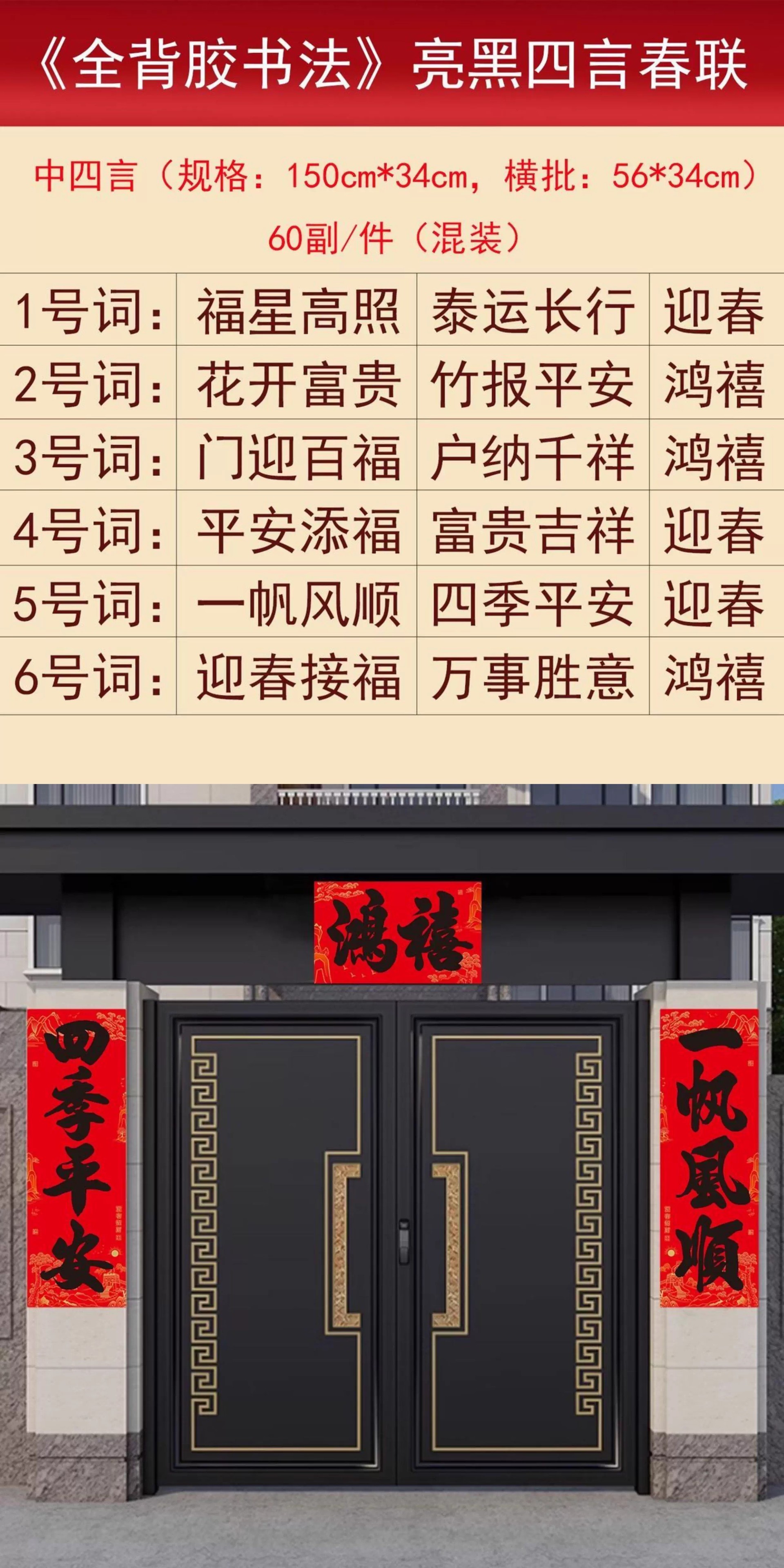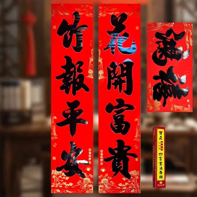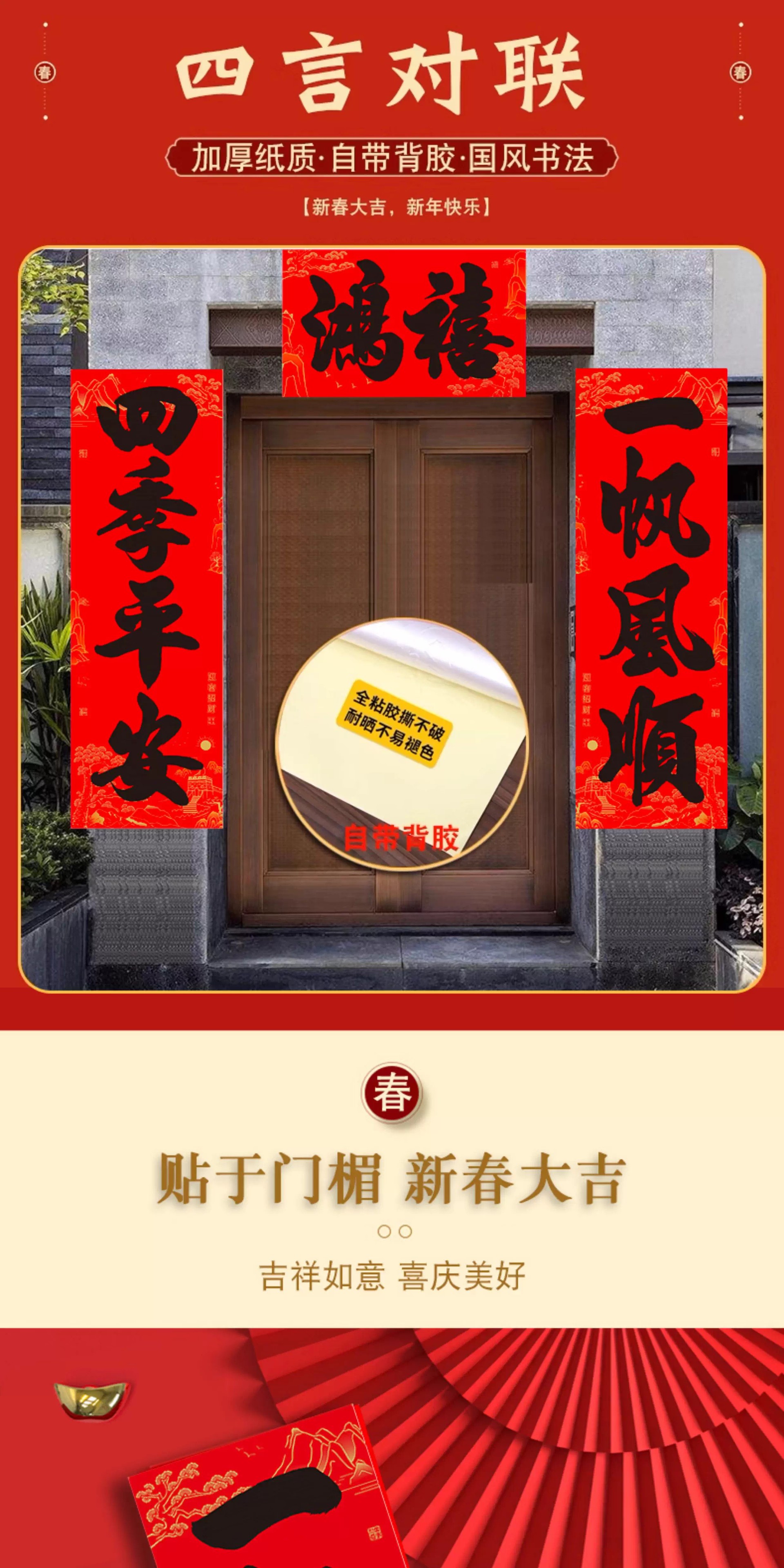 【全背胶】书法大四言对联自粘加大加宽农村大门防水耐晒过年春联