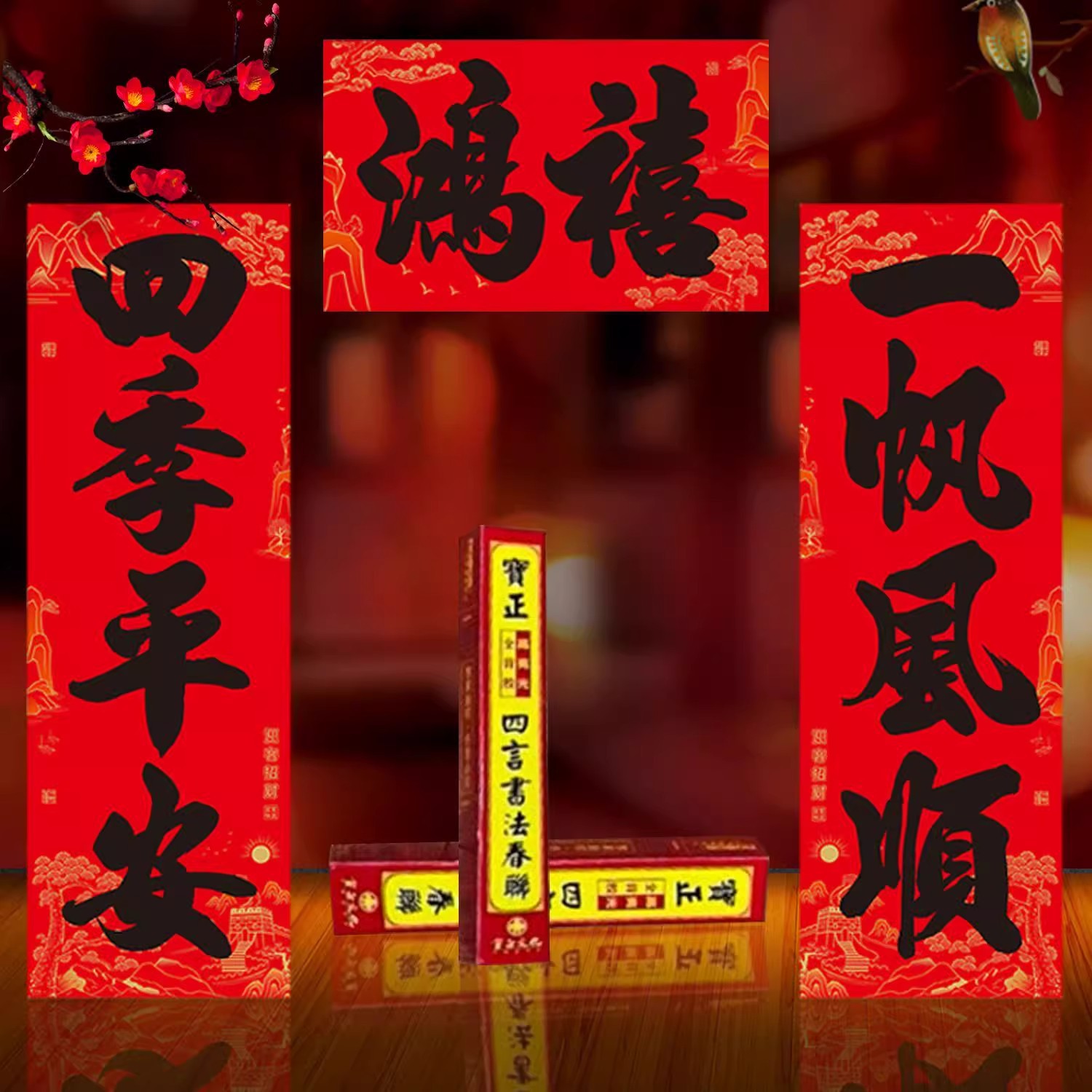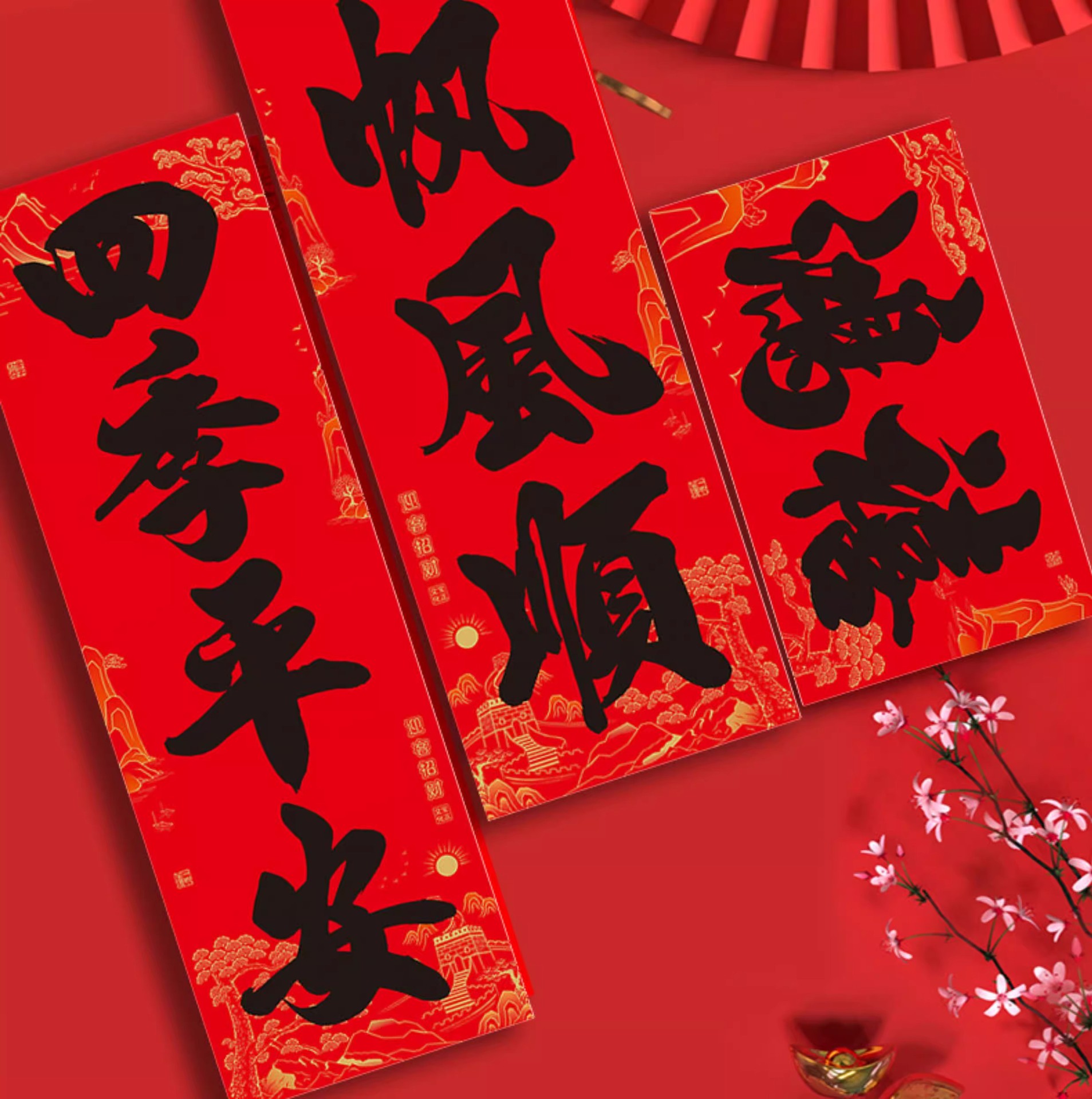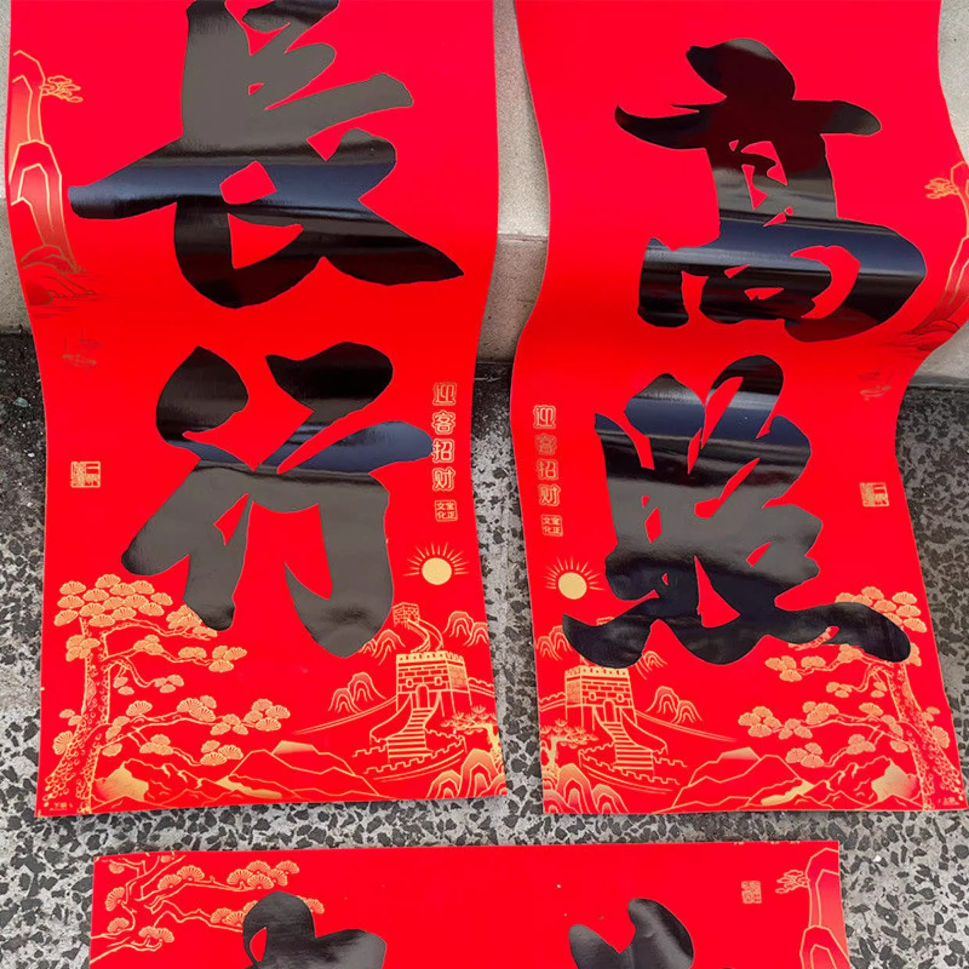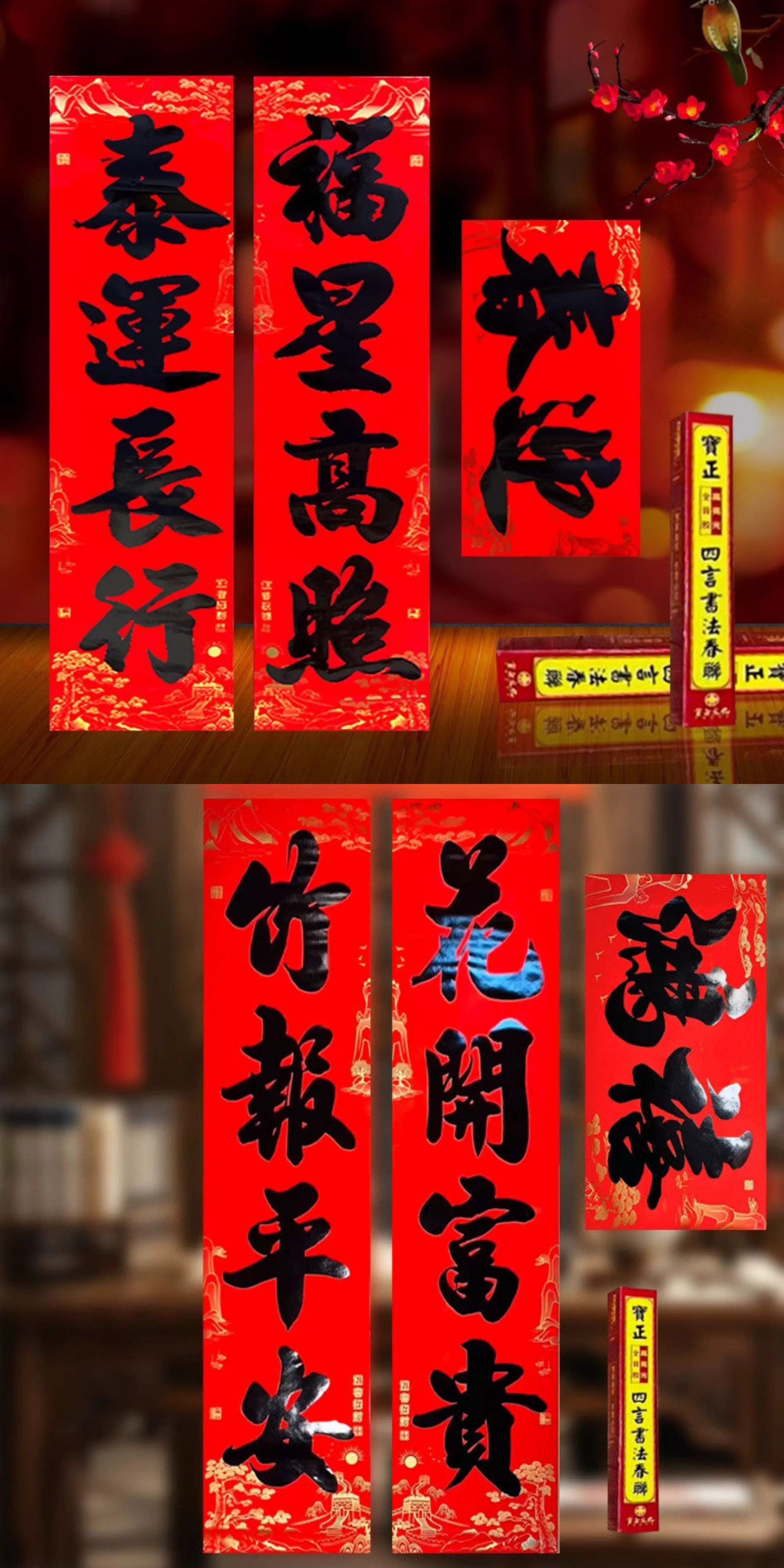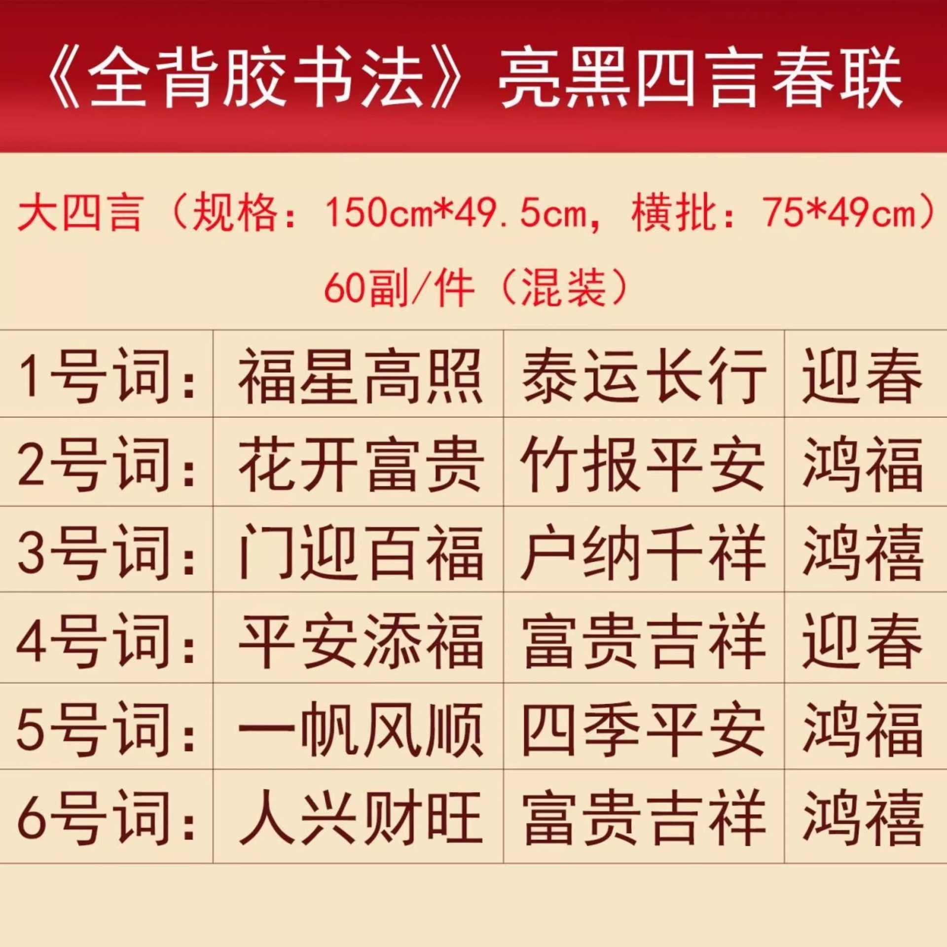 【全背胶】书法大四言对联自粘加大加宽农村大门防水耐晒过年春联