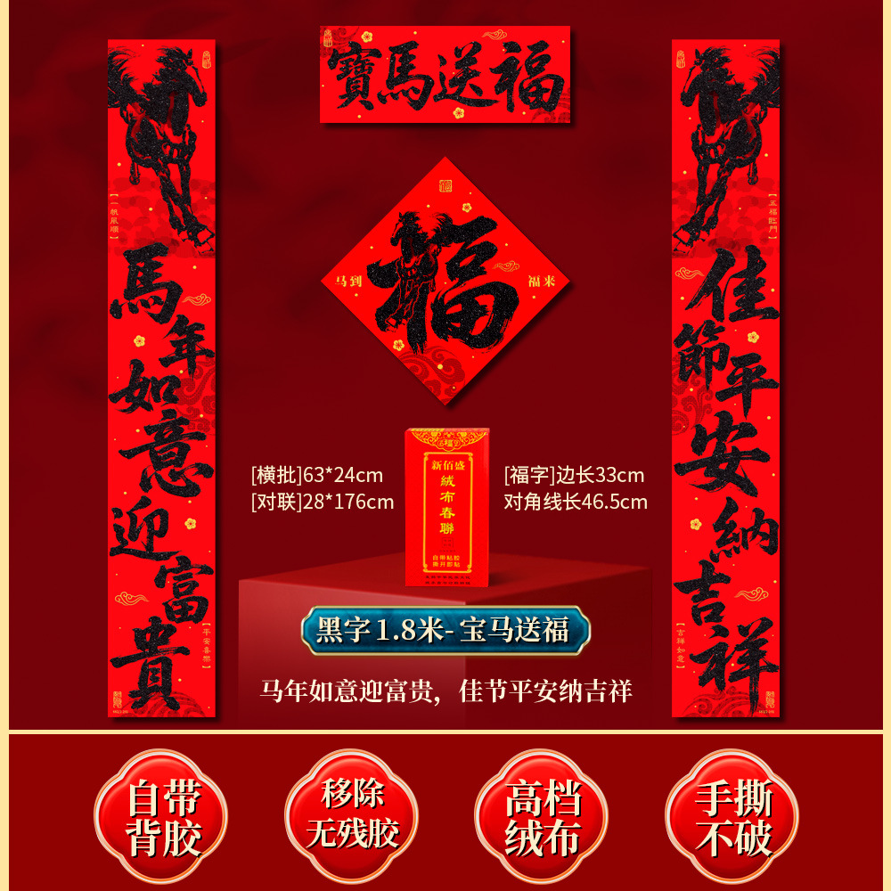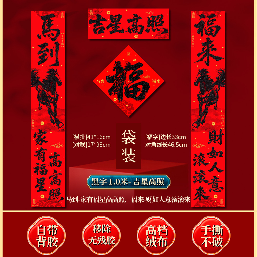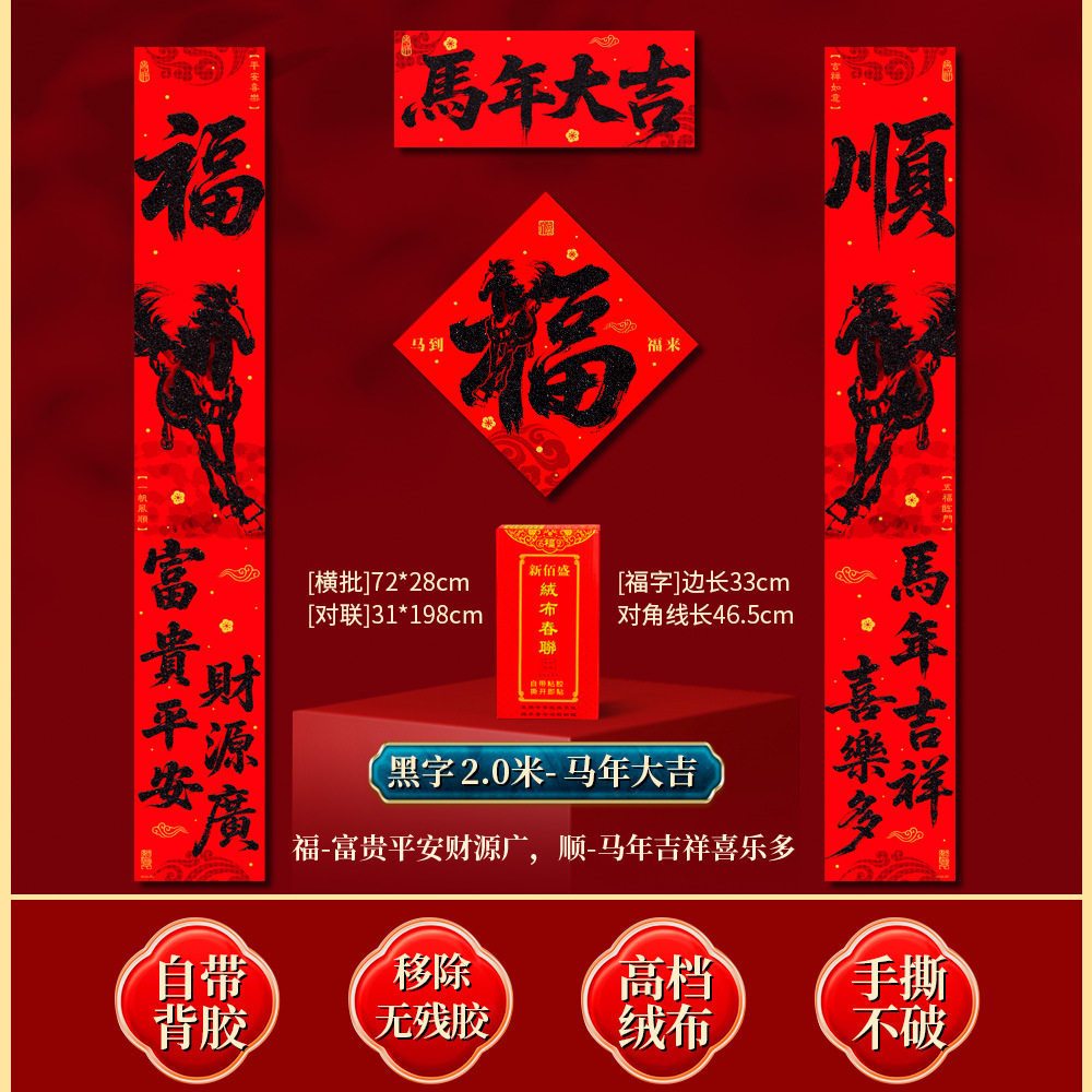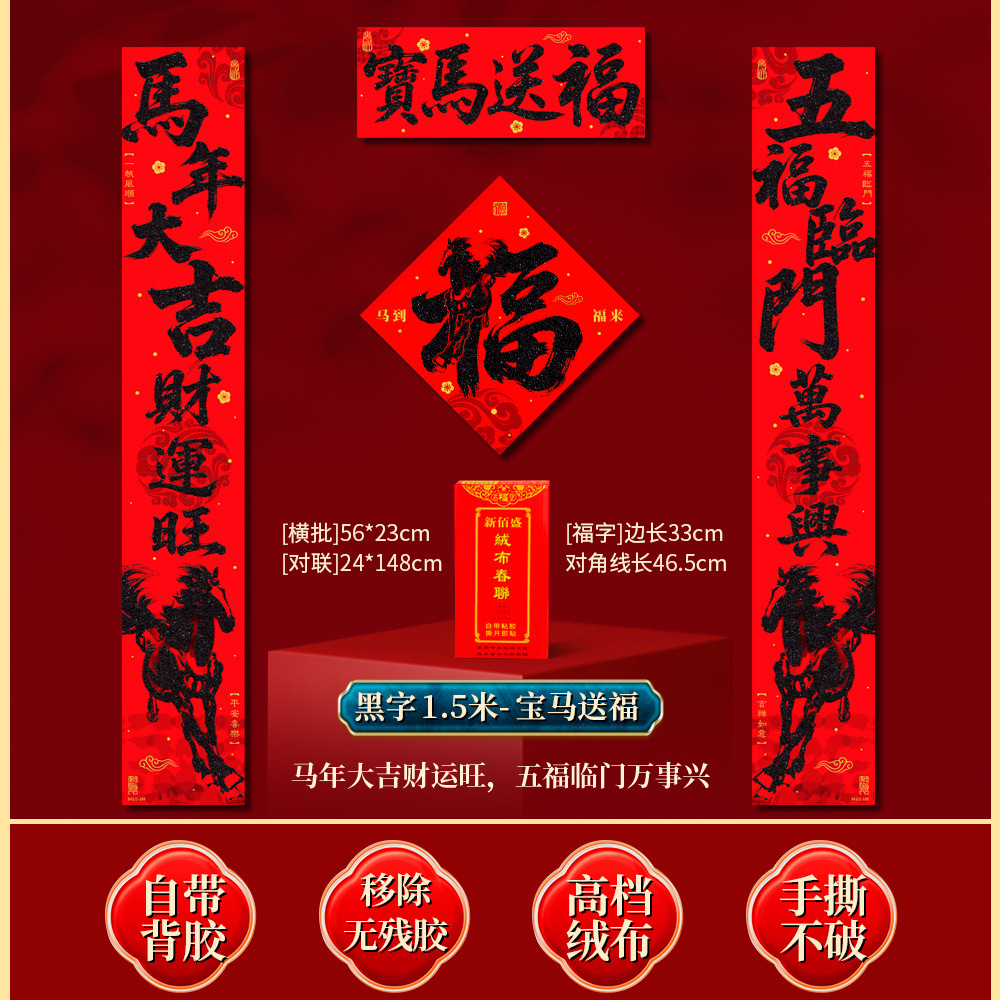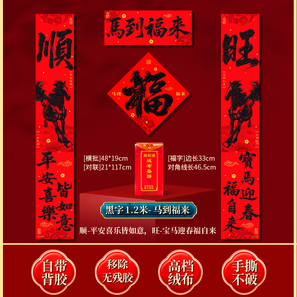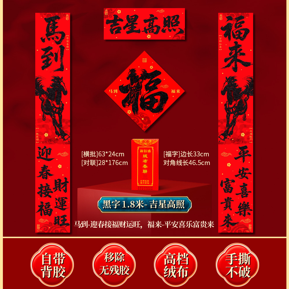 | 马到福来绒布对联(不带福字) | USD $3.7 | 17 piece available |