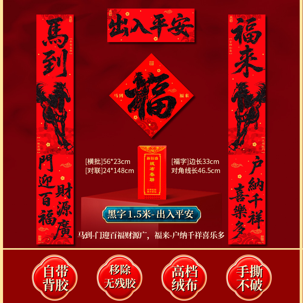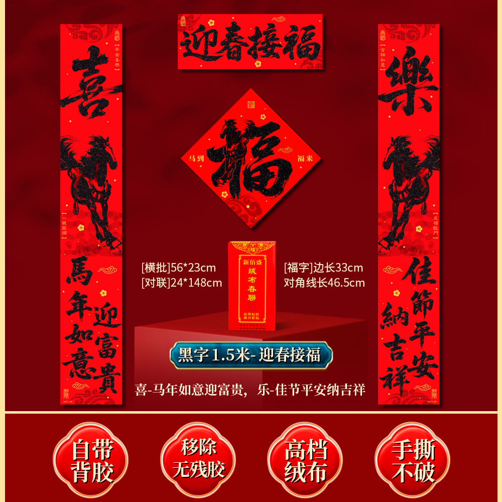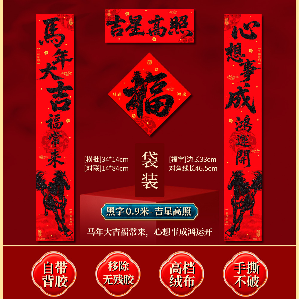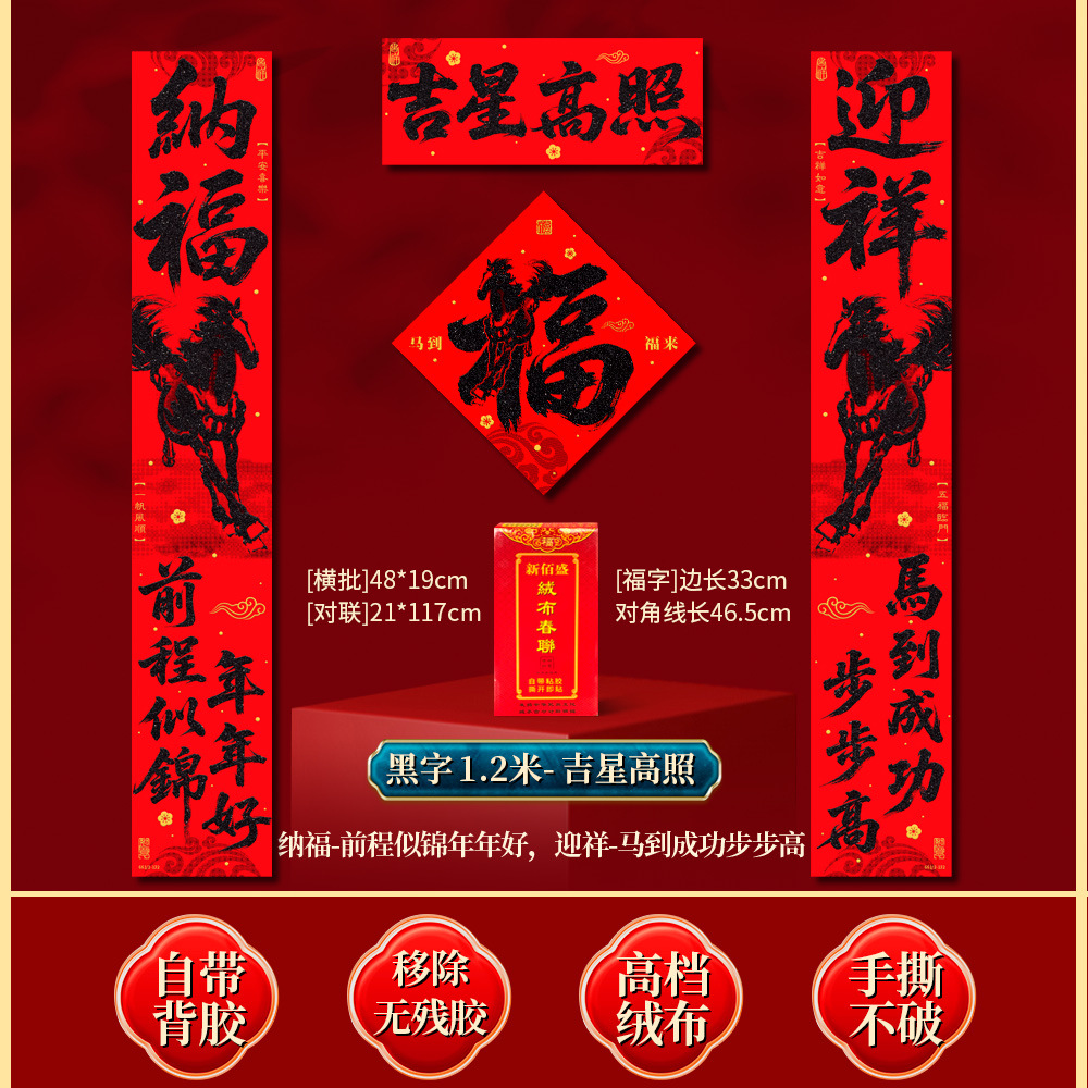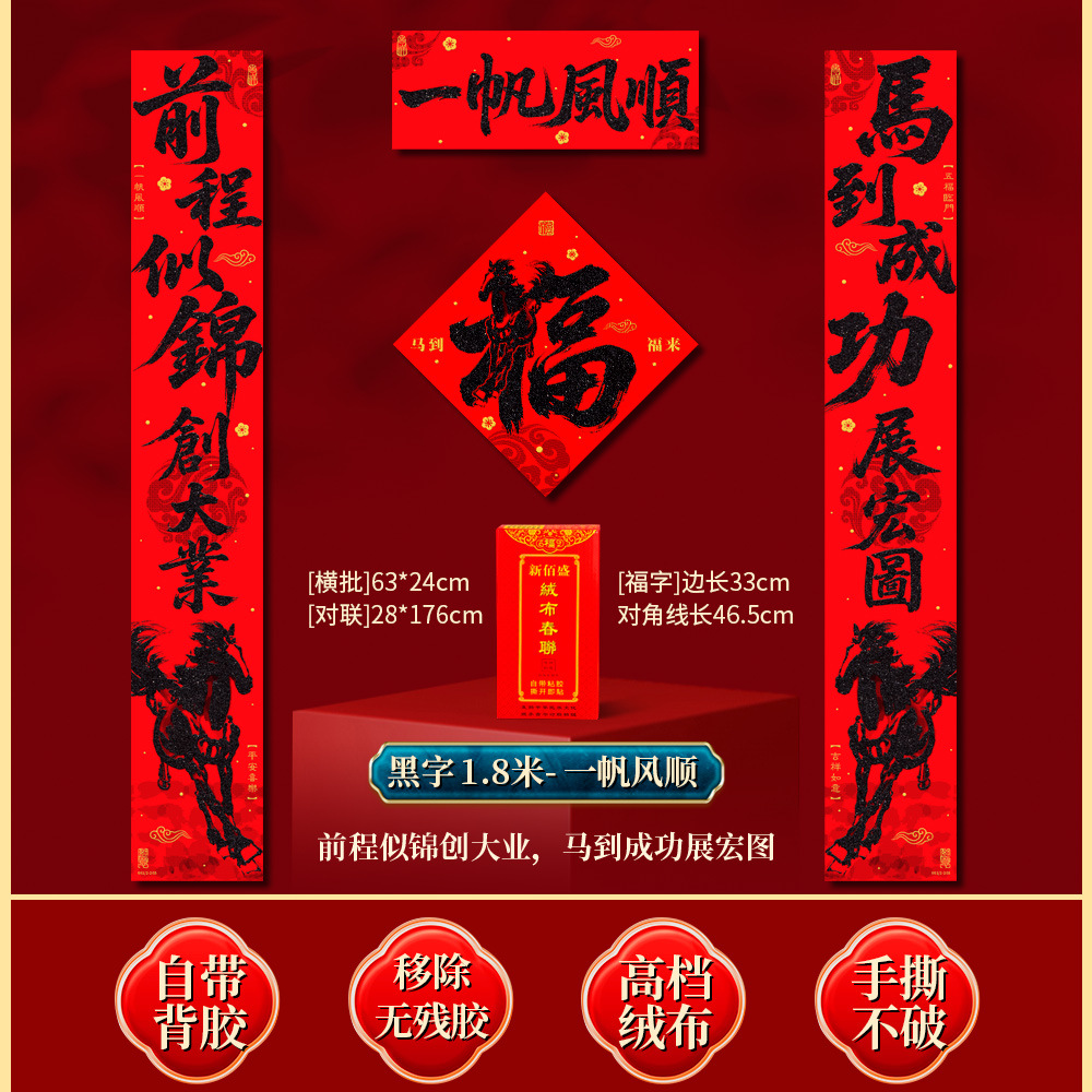 | 马到福来绒布对联(不带福字) | USD $3.7 | 17 piece available |