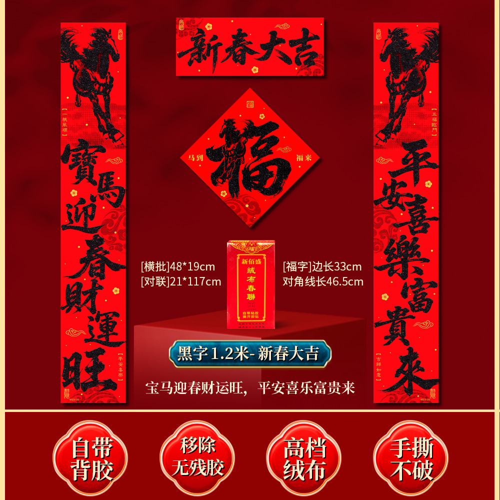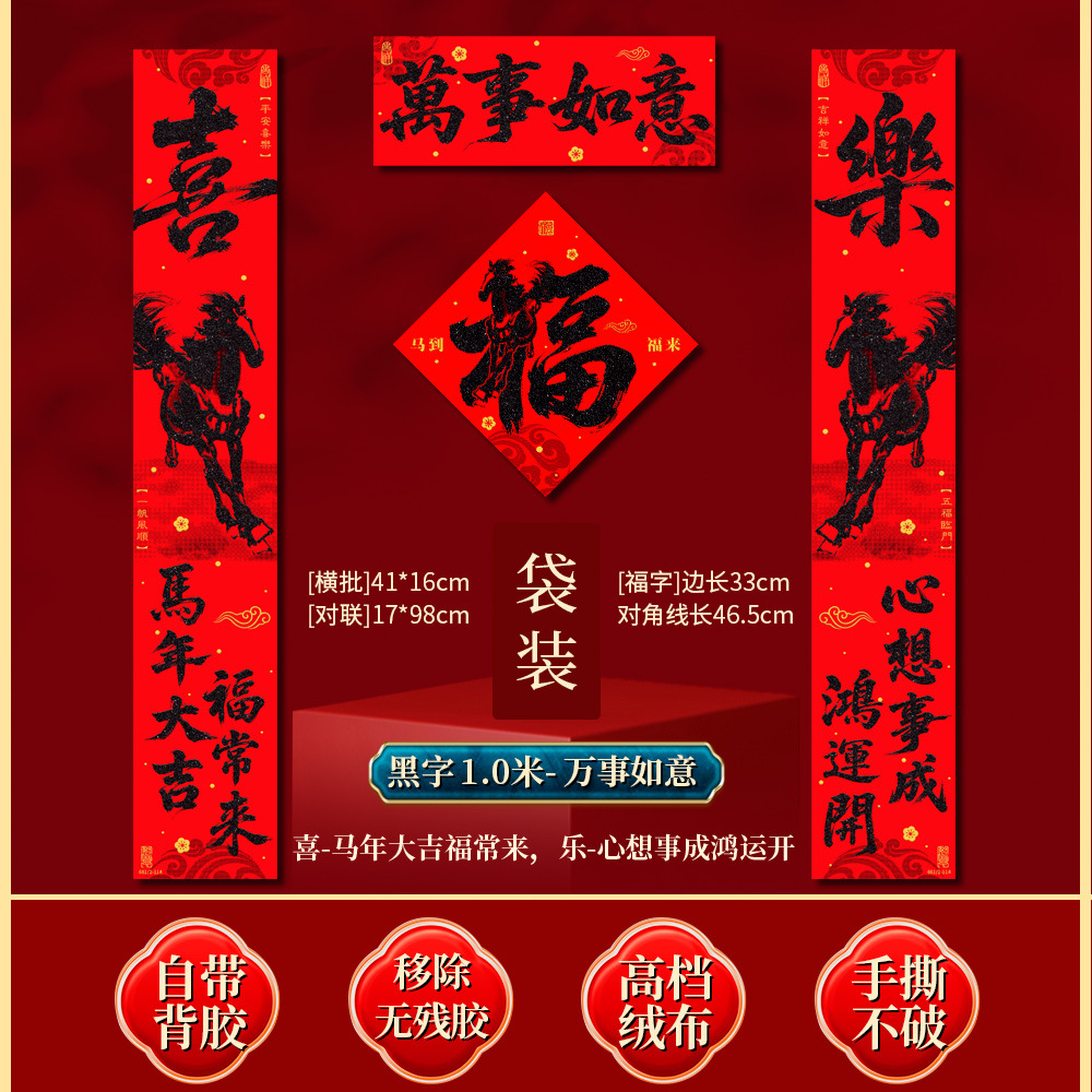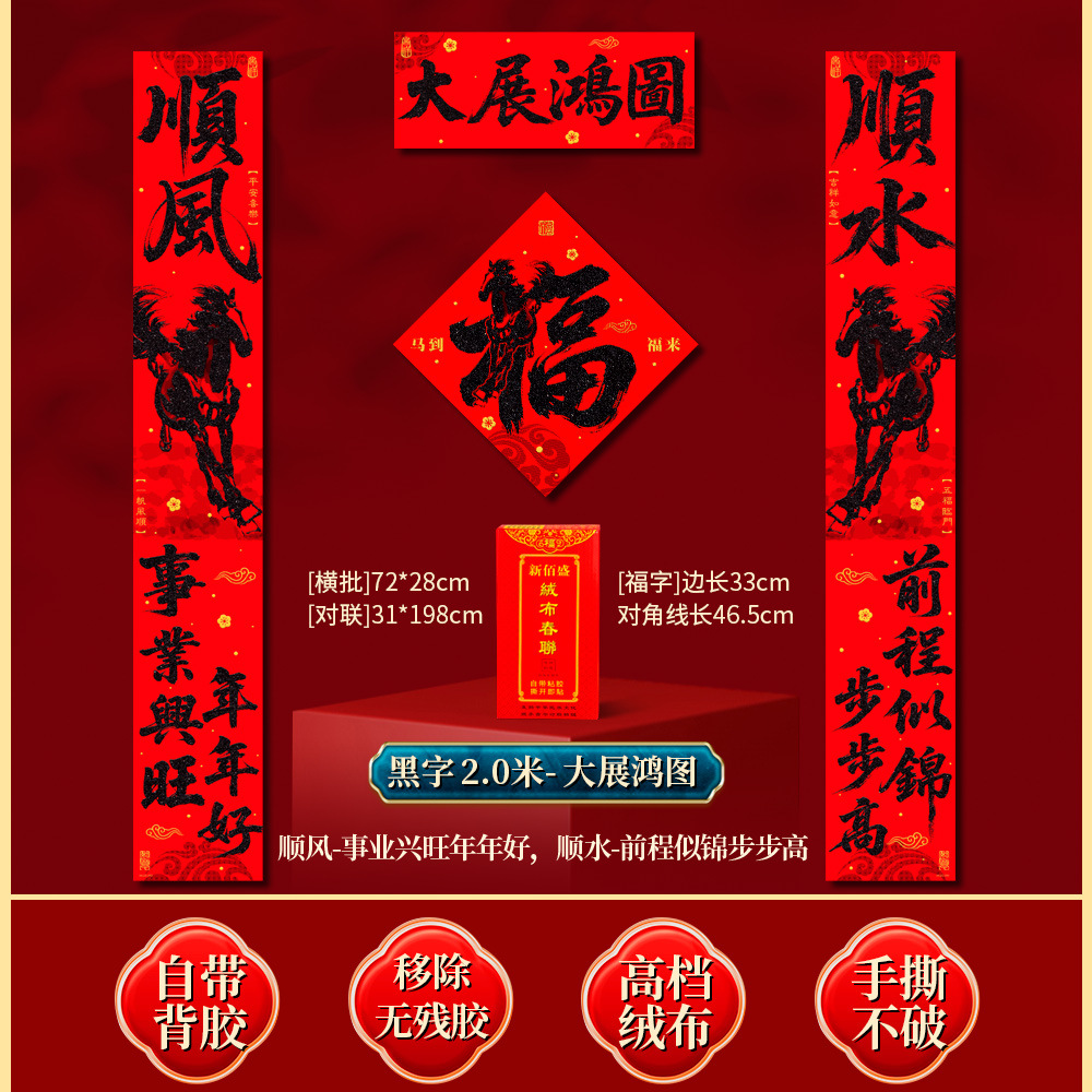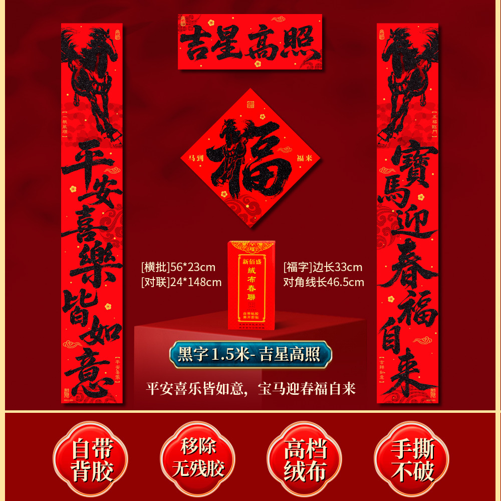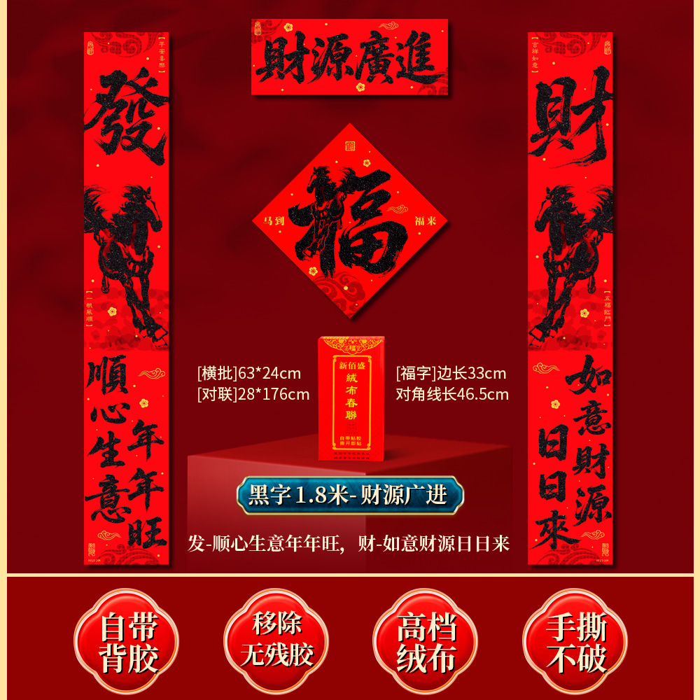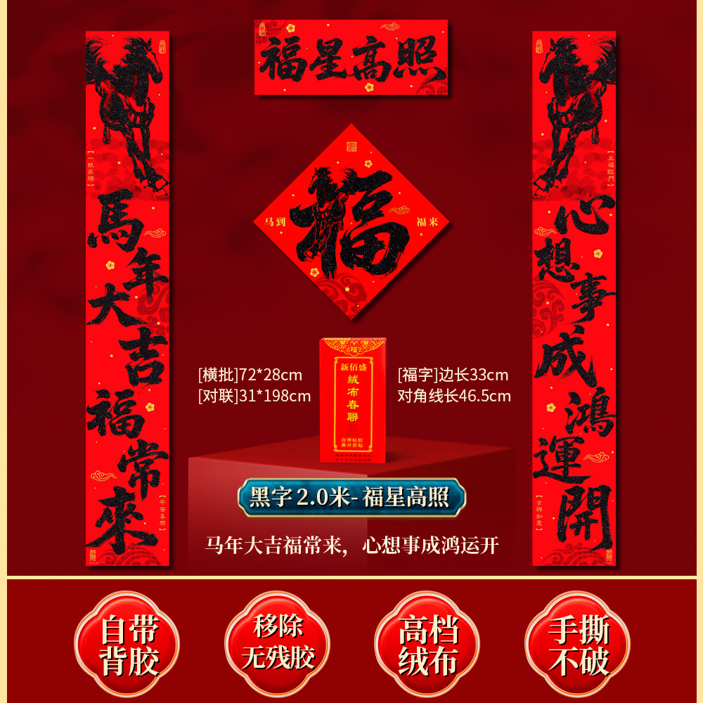 | 马到福来绒布对联(不带福字) | USD $3.7 | 17 piece available |