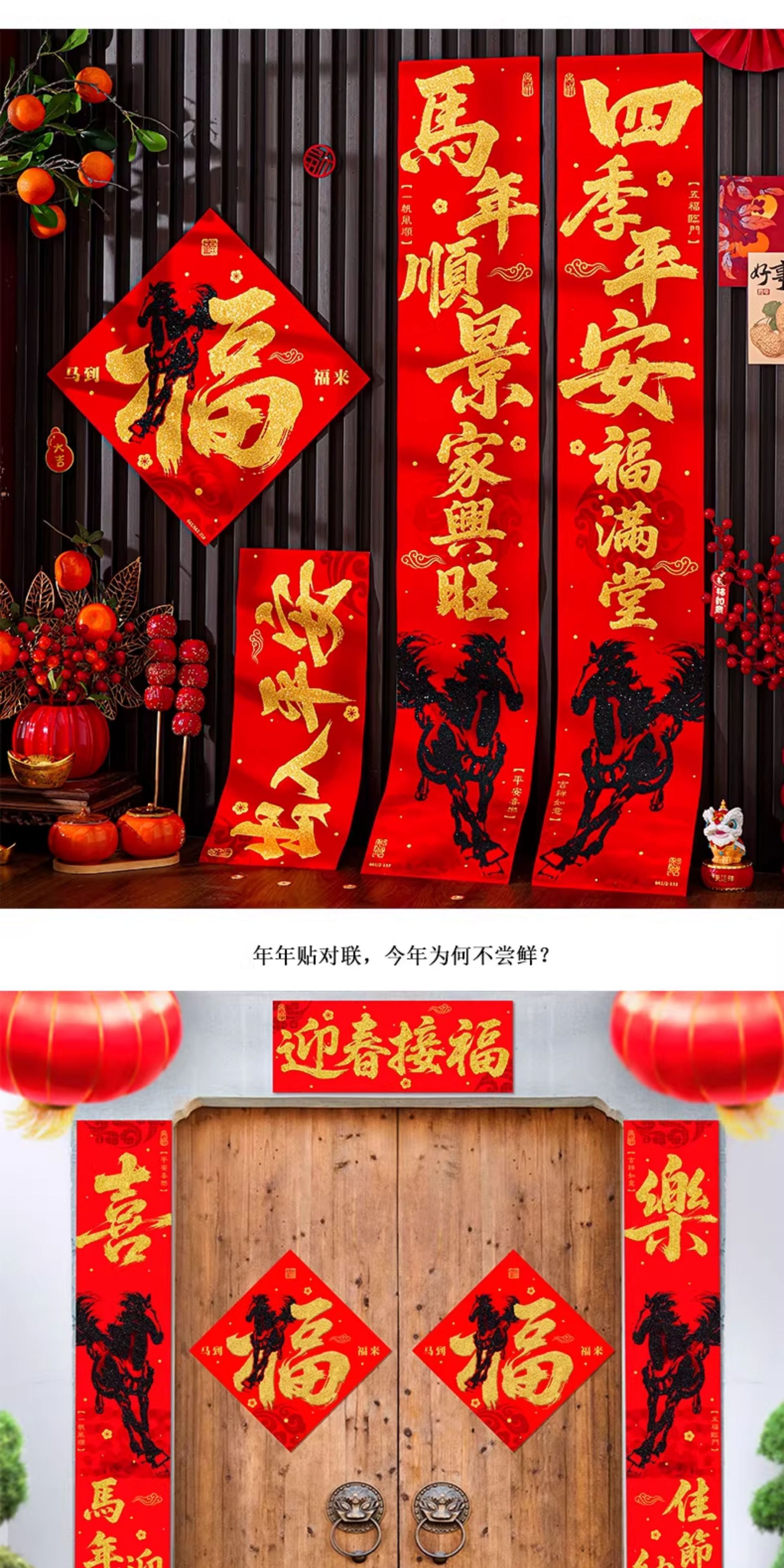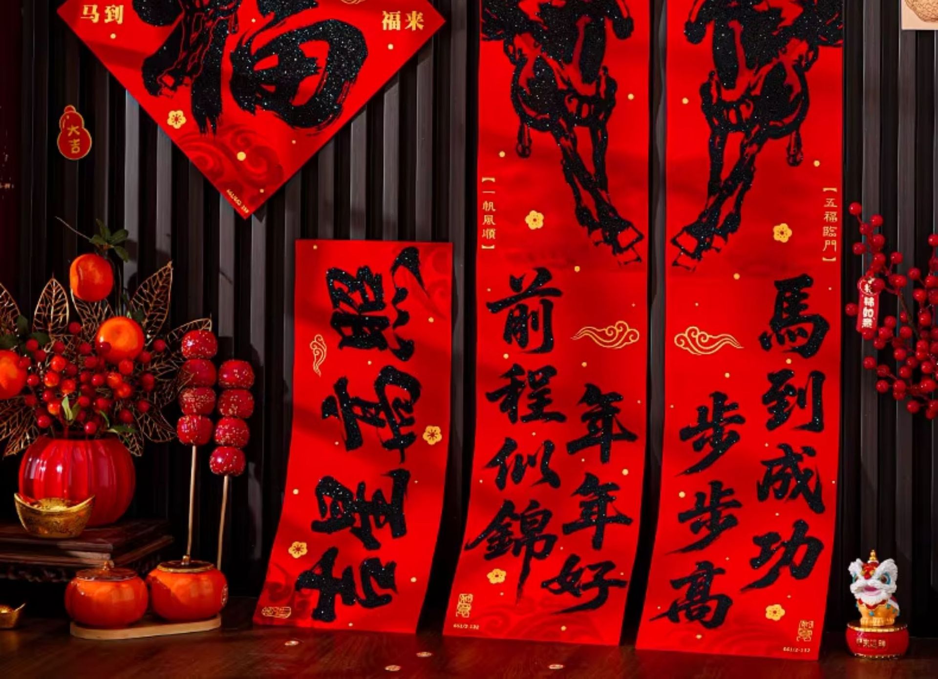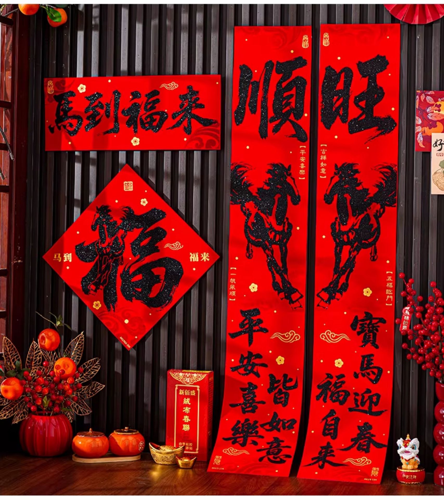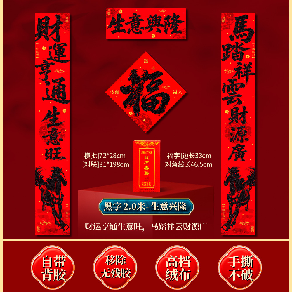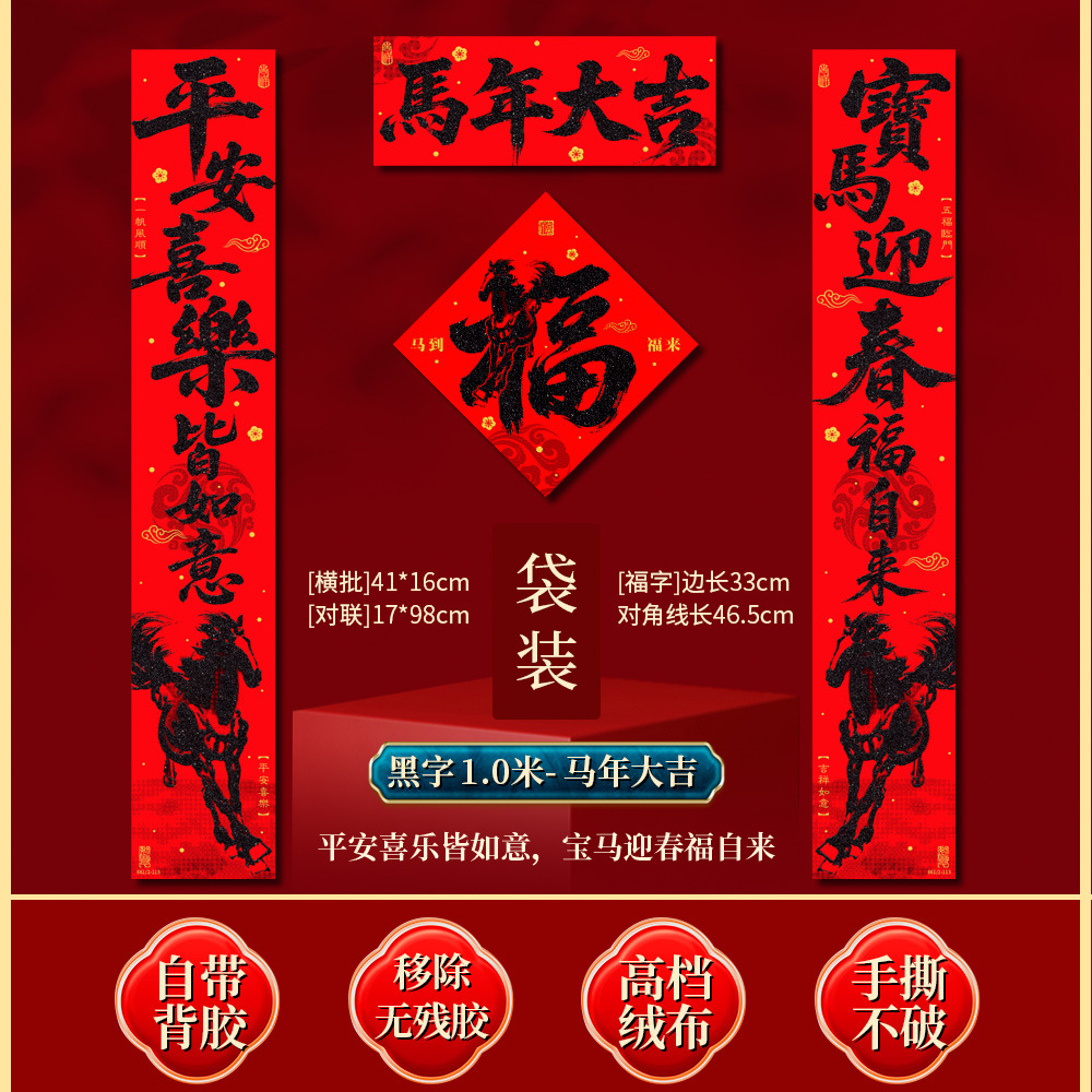 | 马到福来绒布对联(不带福字) | USD $3.7 | 17 piece available |