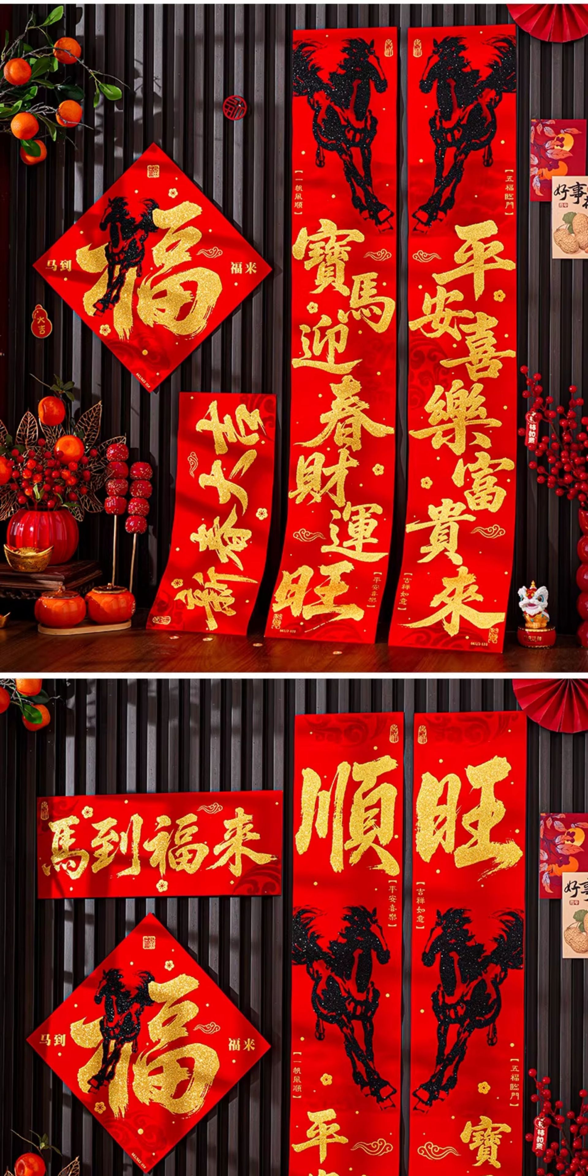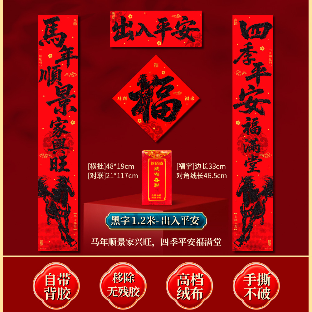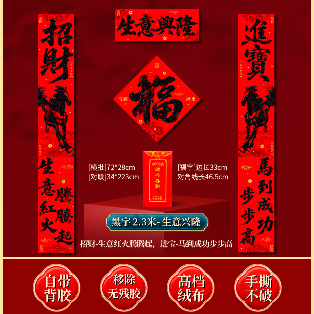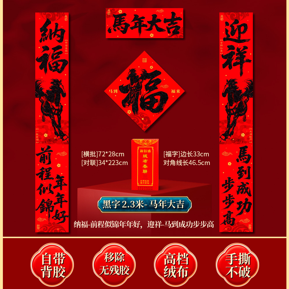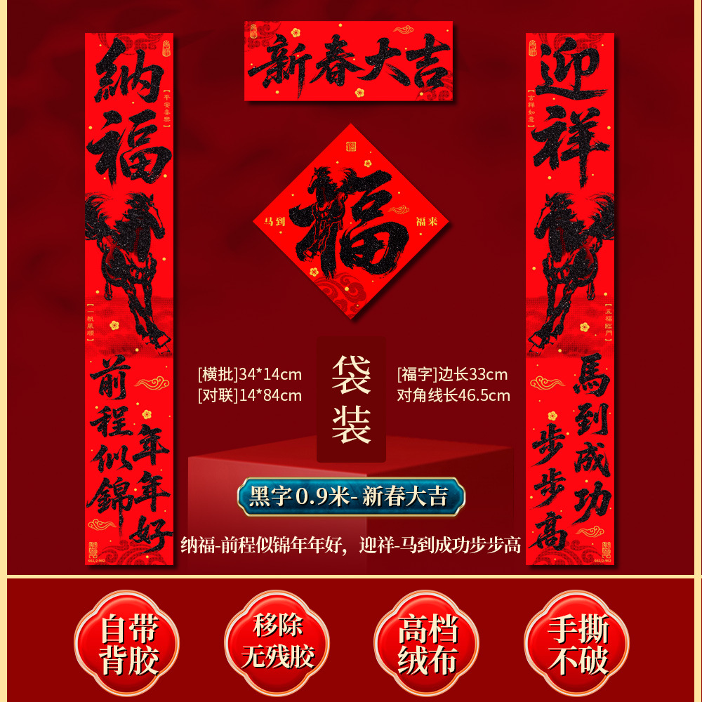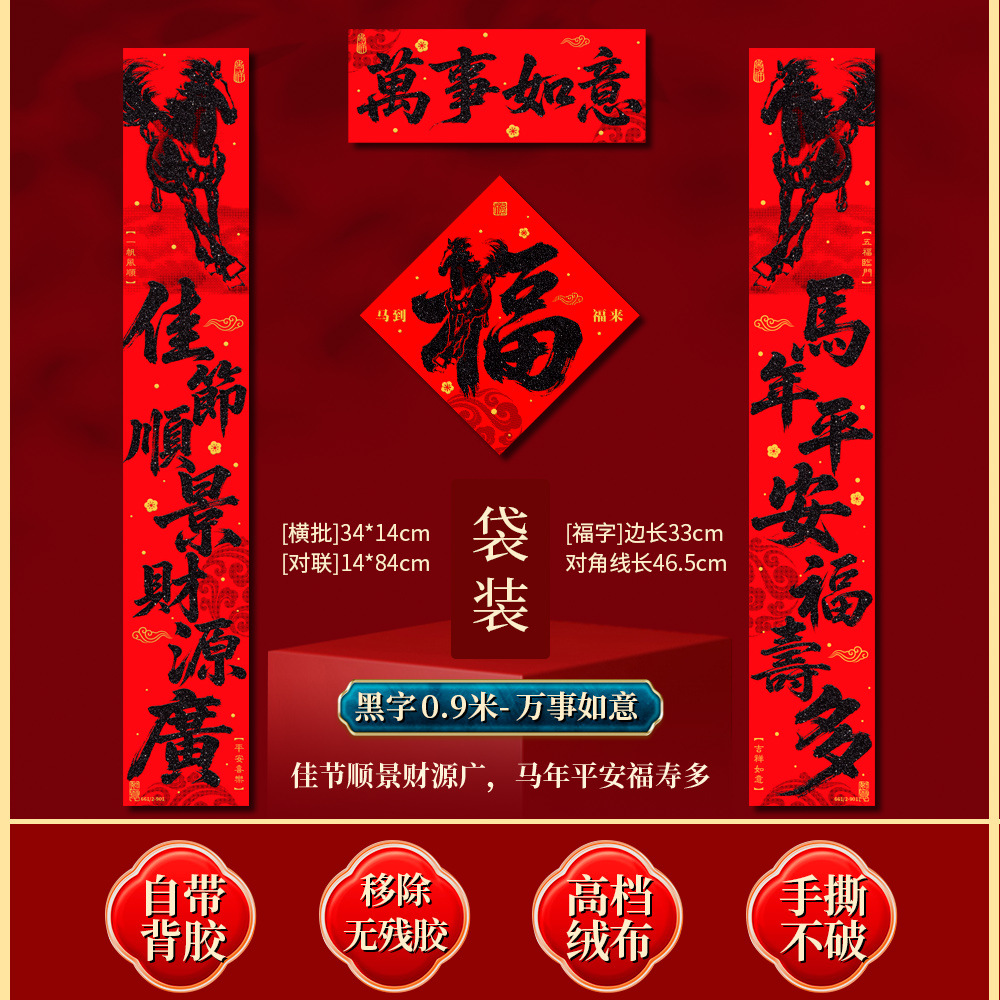 | 马到福来绒布对联(不带福字) | USD $3.7 | 34 piece available |