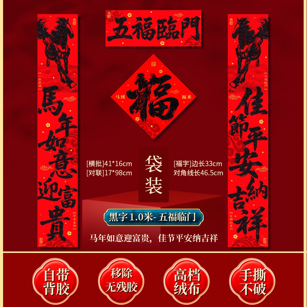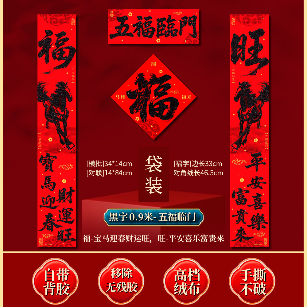 | 马到福来绒布对联(带一张福字) | USD $7.78 | 62 piece available |
