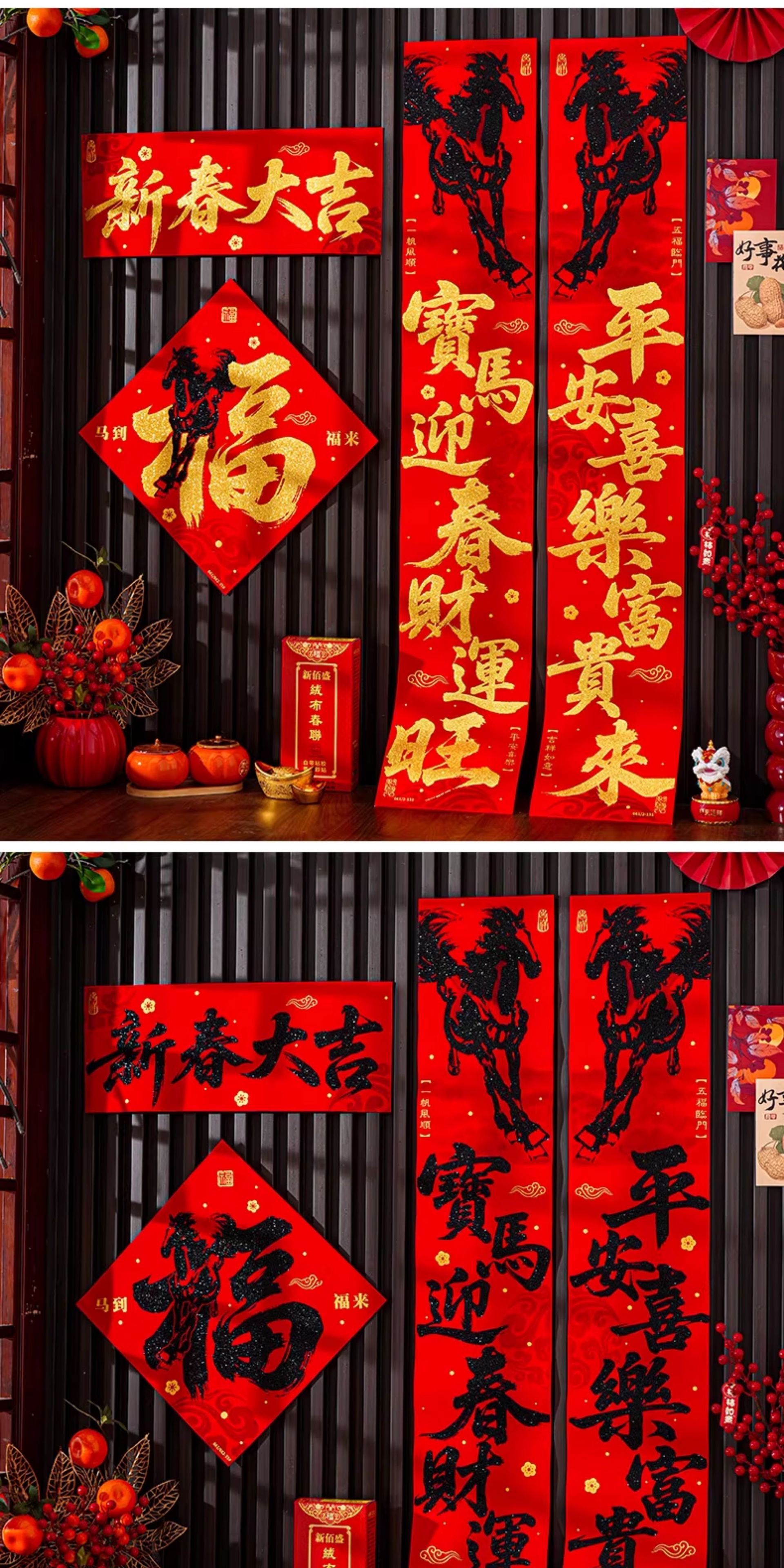 | 马到福来绒布对联(不带福字) | USD $11.22 | 21 piece available |
