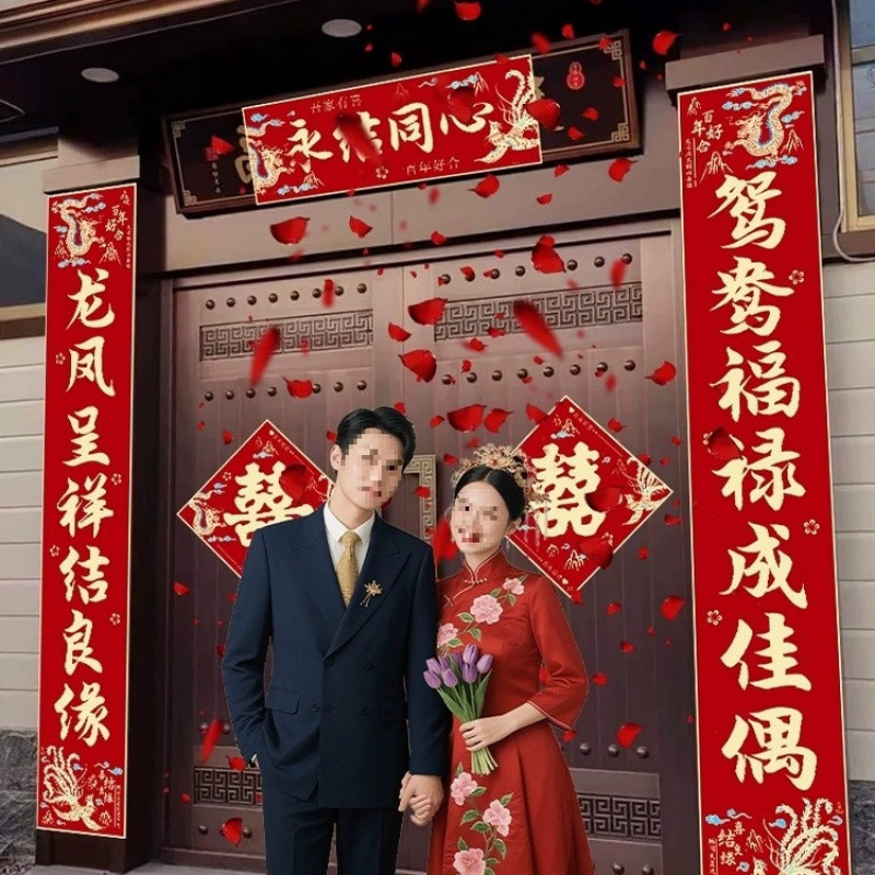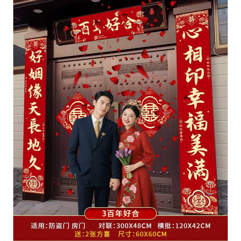 结婚对联男方农村大门喜联全套婚礼女方出嫁入户门喜字贴装饰