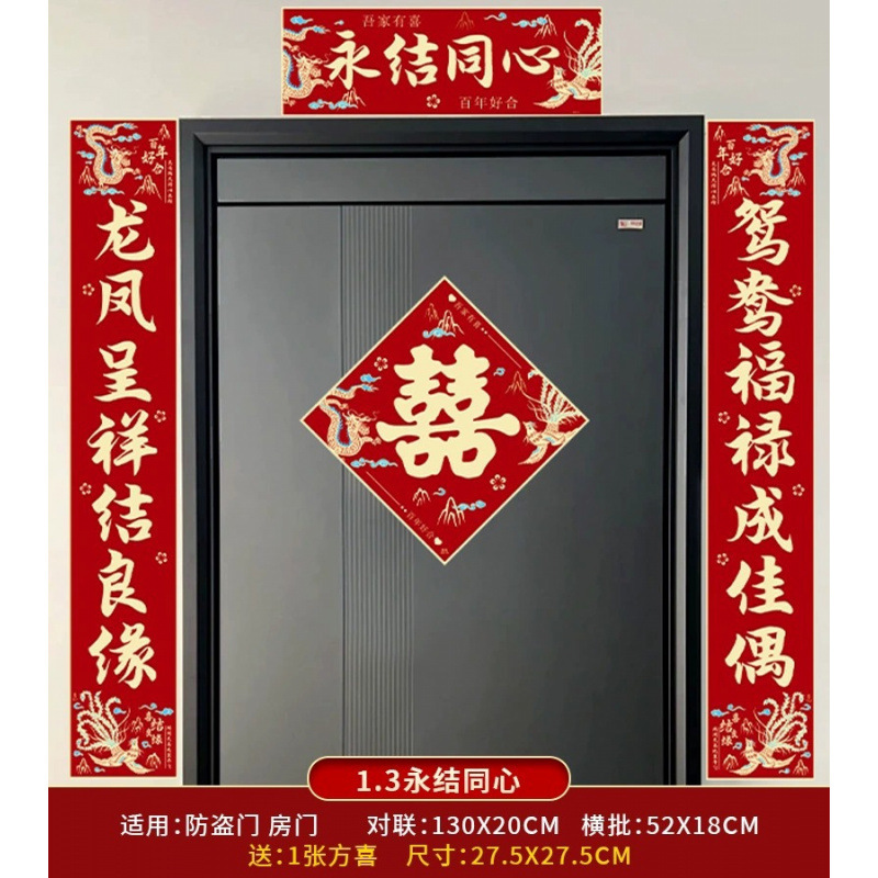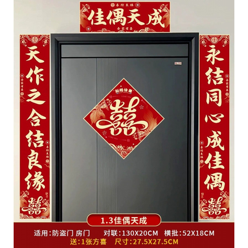 结婚对联男方农村大门喜联全套婚礼女方出嫁入户门喜字贴装饰