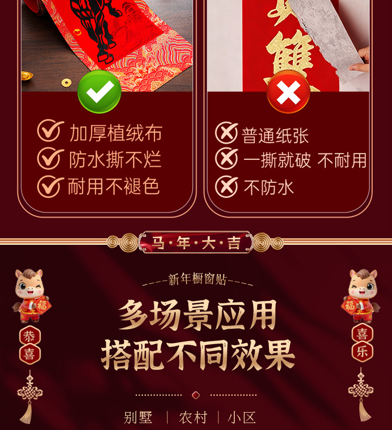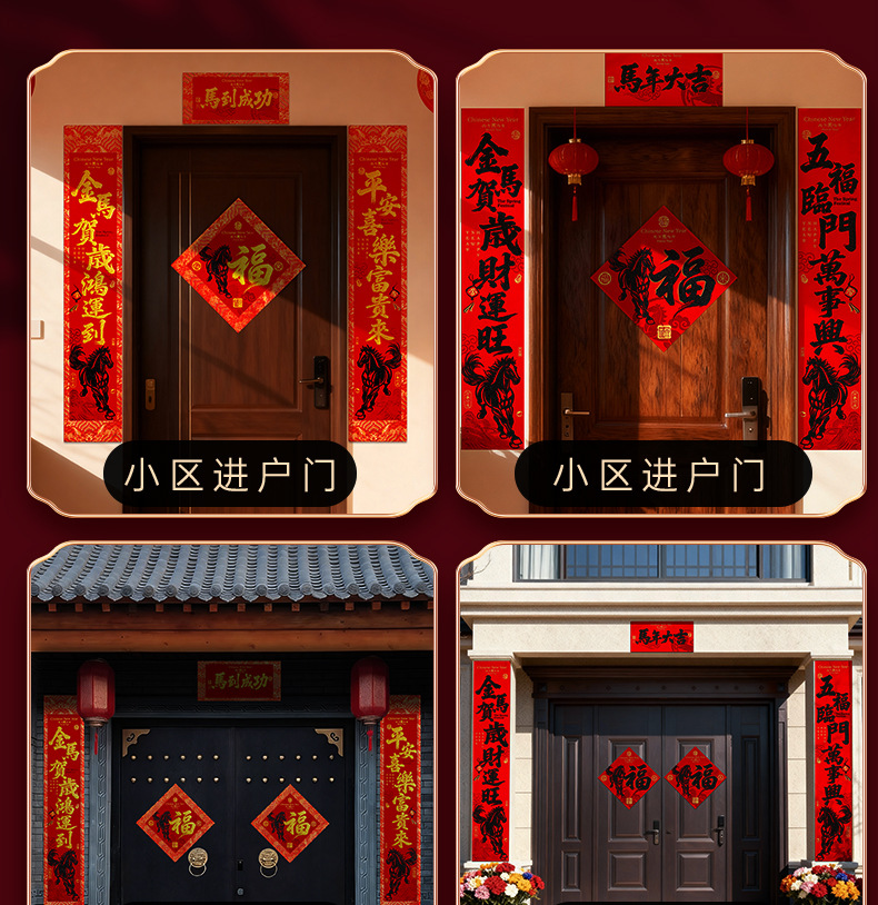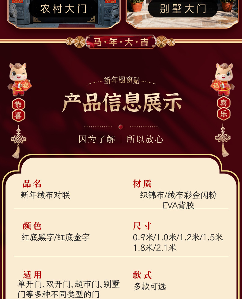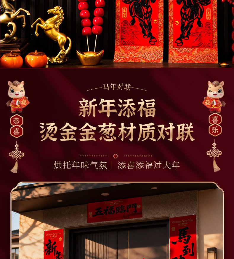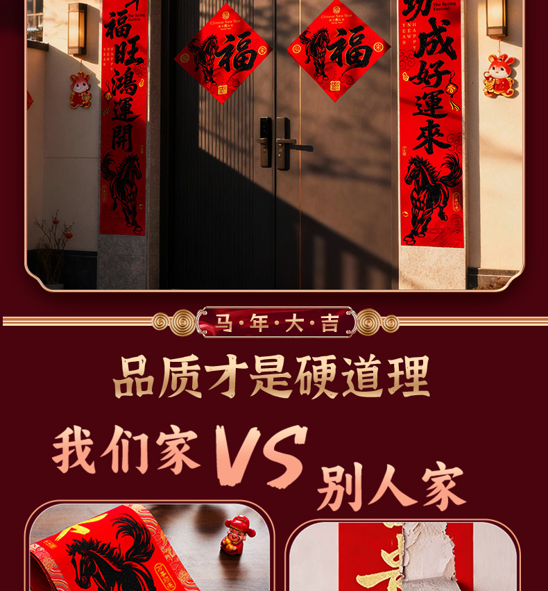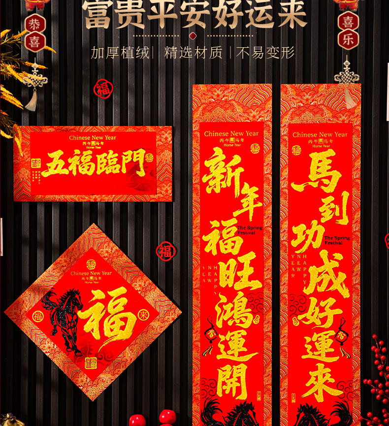 马年对联2026新款绒布春联高档农村大门新年春节过年自带背胶门联
