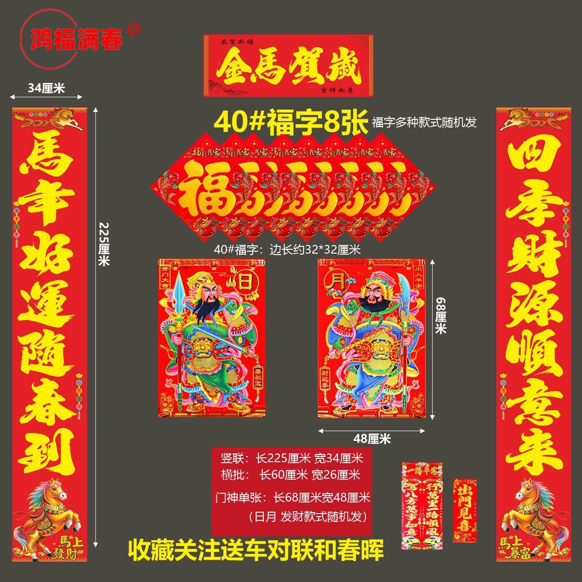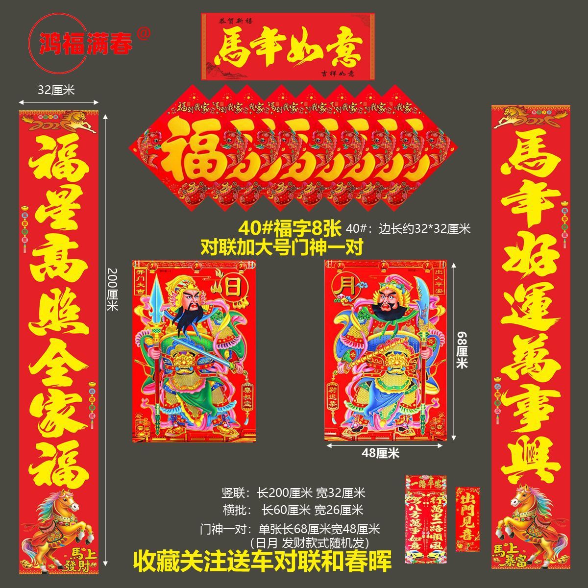 | 马年生肖对联+门神+8张福字 | USD $6.7 | 999 piece available |