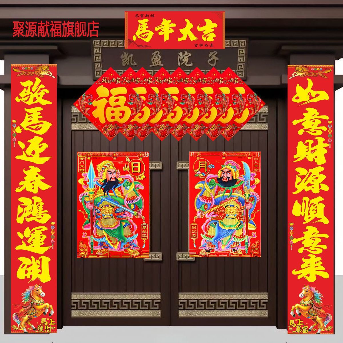 | 马年生肖对联+门神+2张福字 | USD $4.75 | 999 piece available |