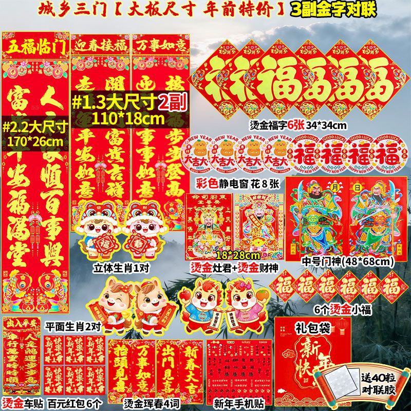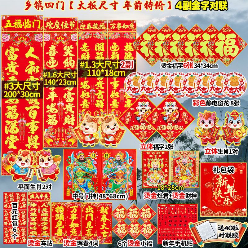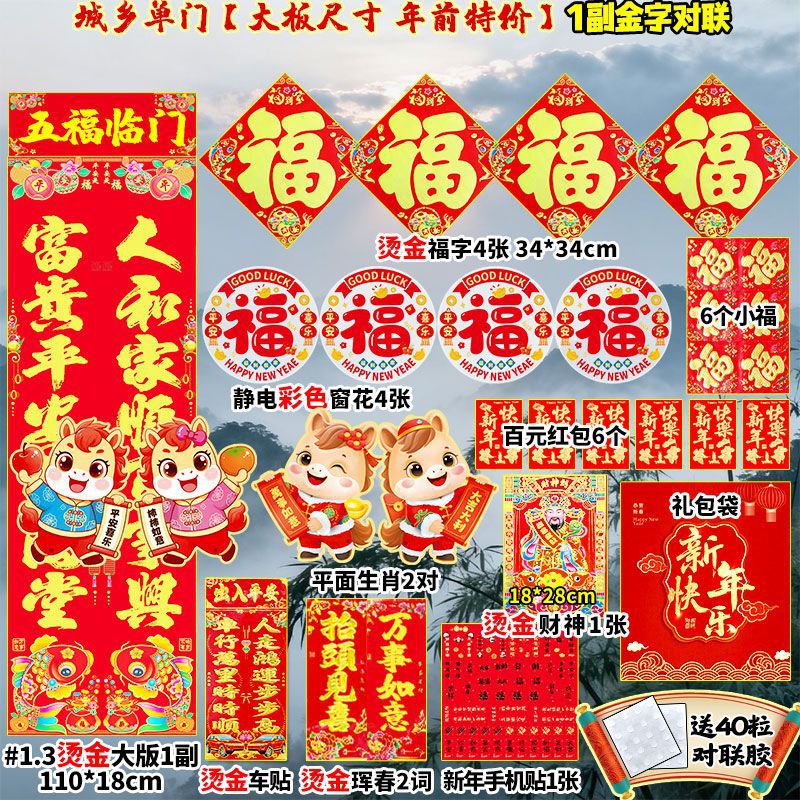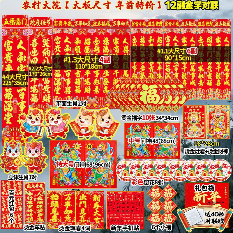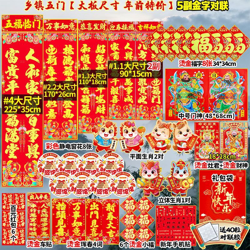 2026年马年新款对联大礼包套装新年春节新春过年农村大门春联福字