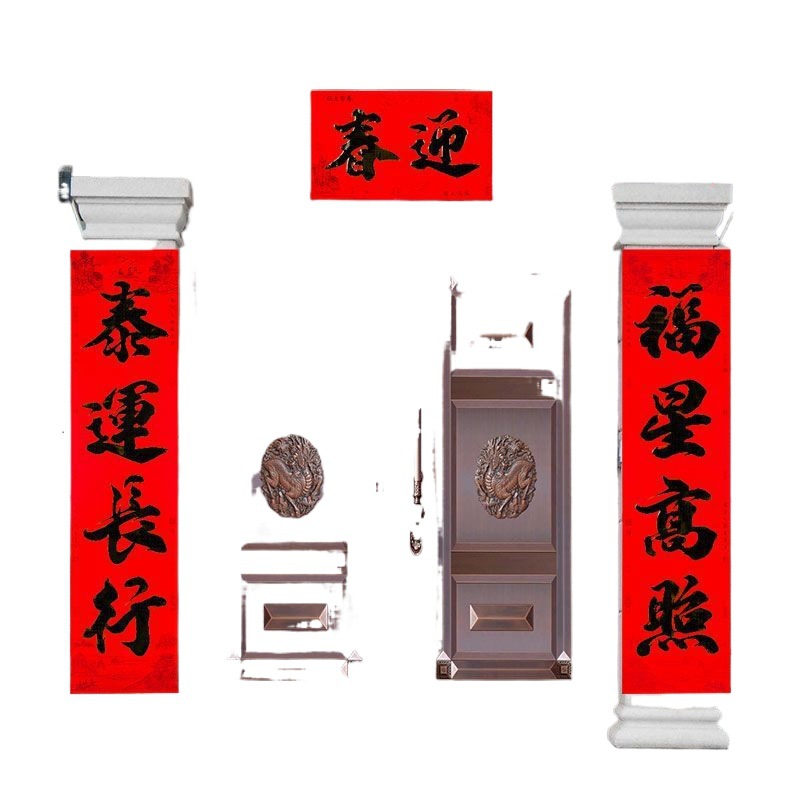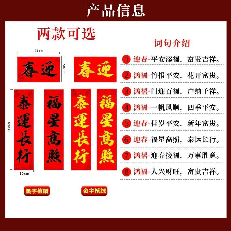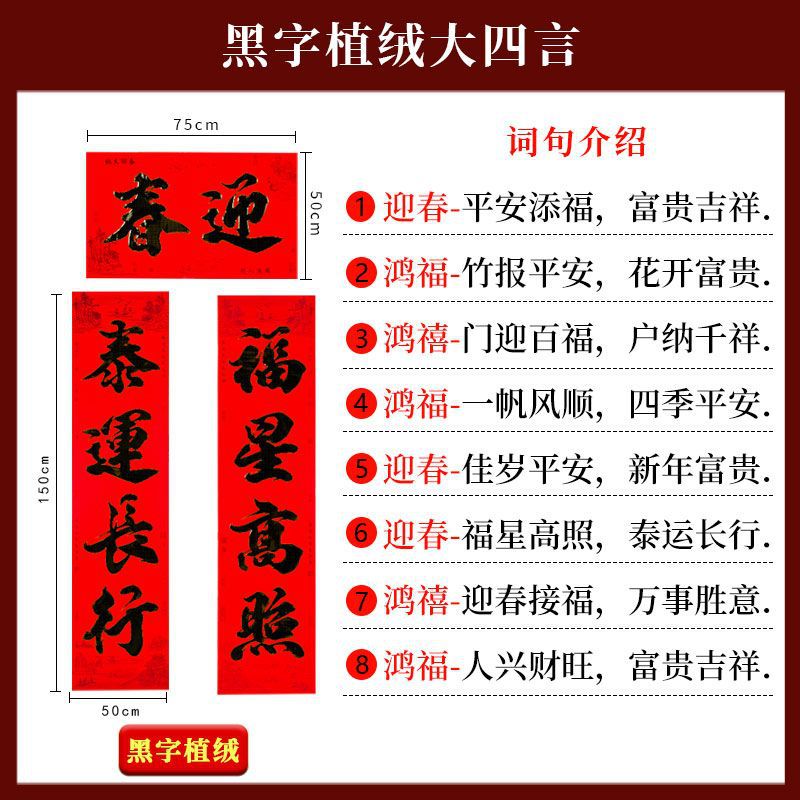 新款2026年植绒四字新年对联全套农村大双开门黑字大四言过年对联