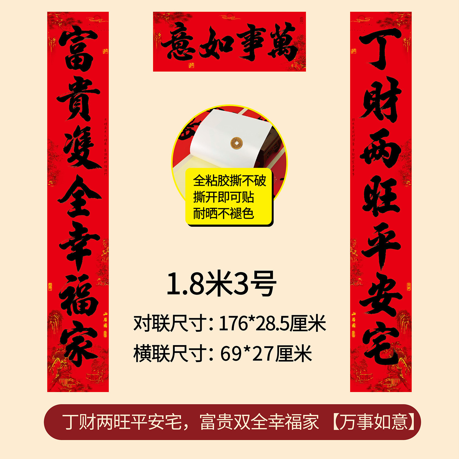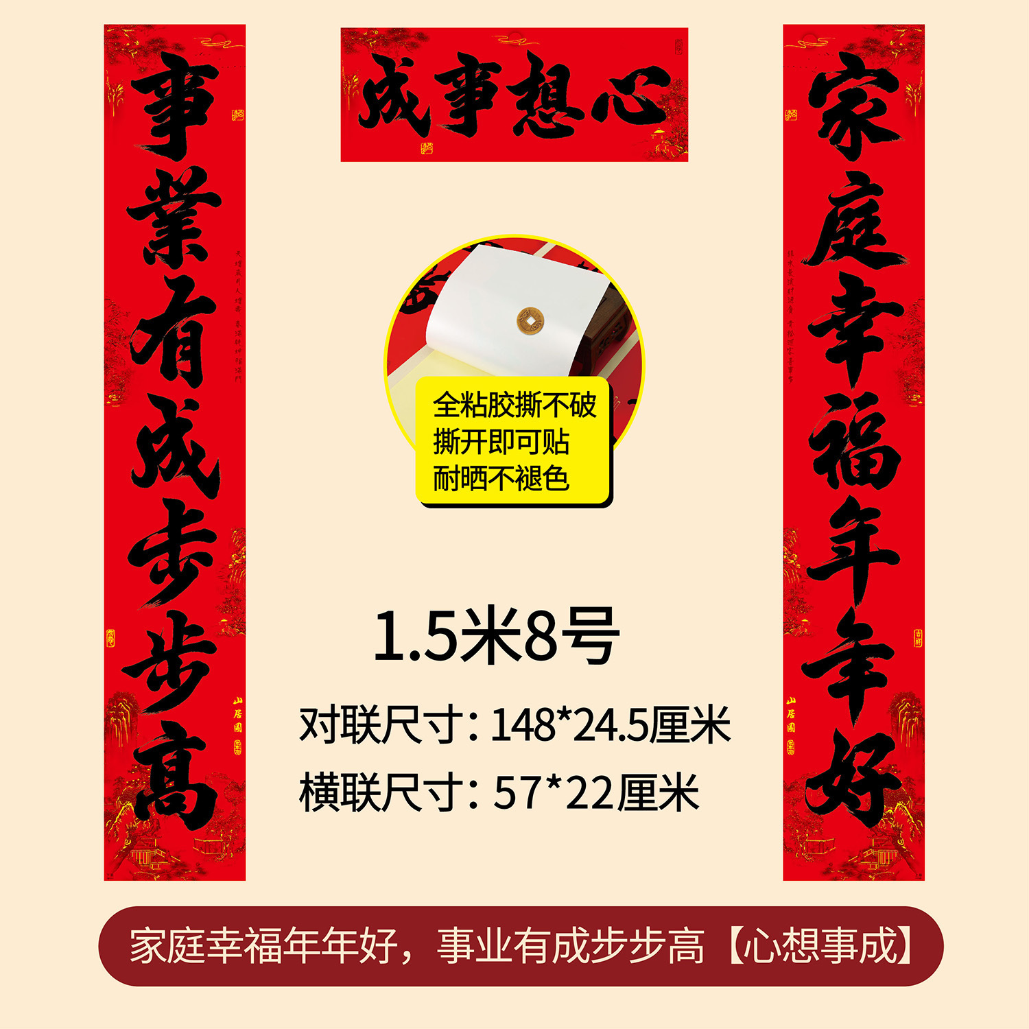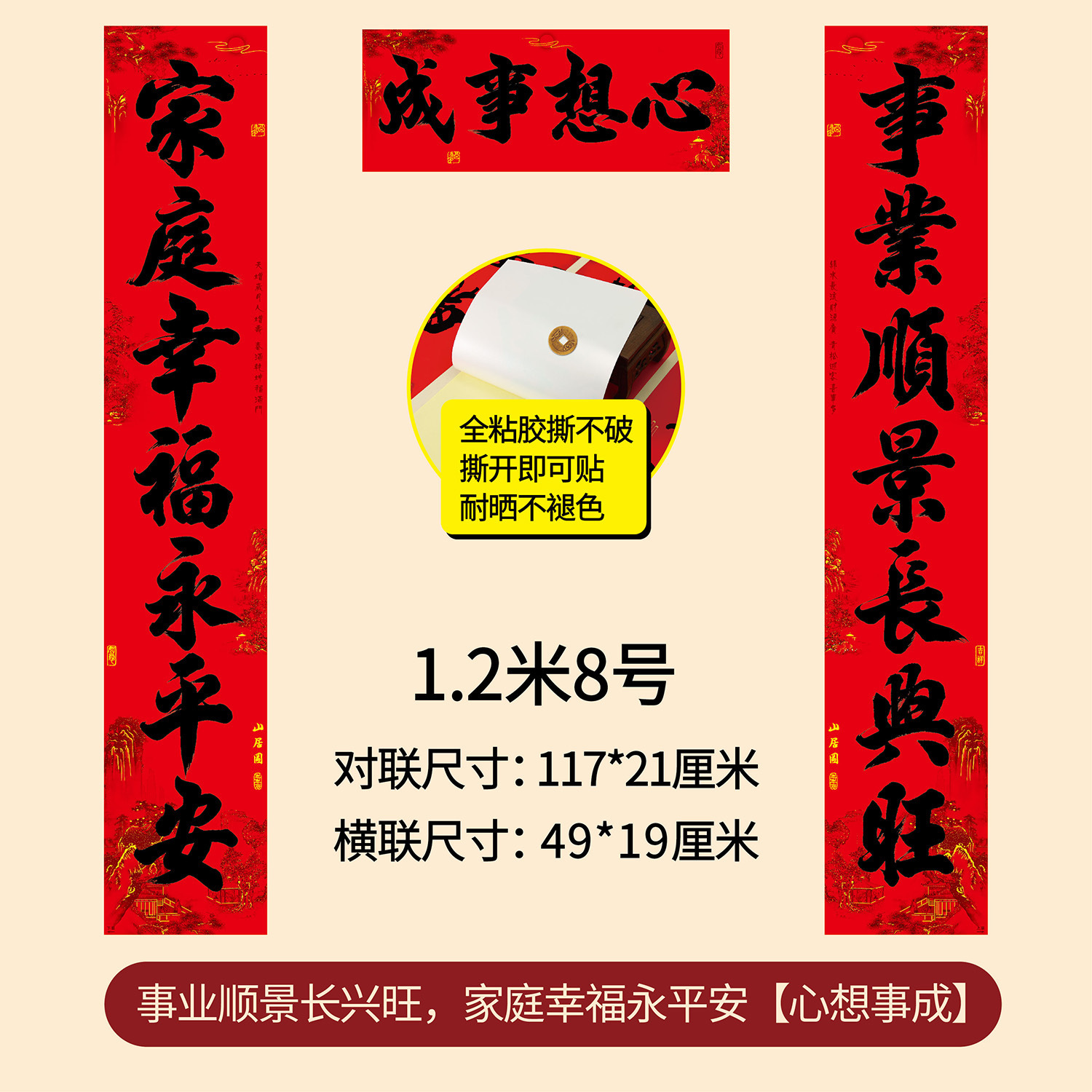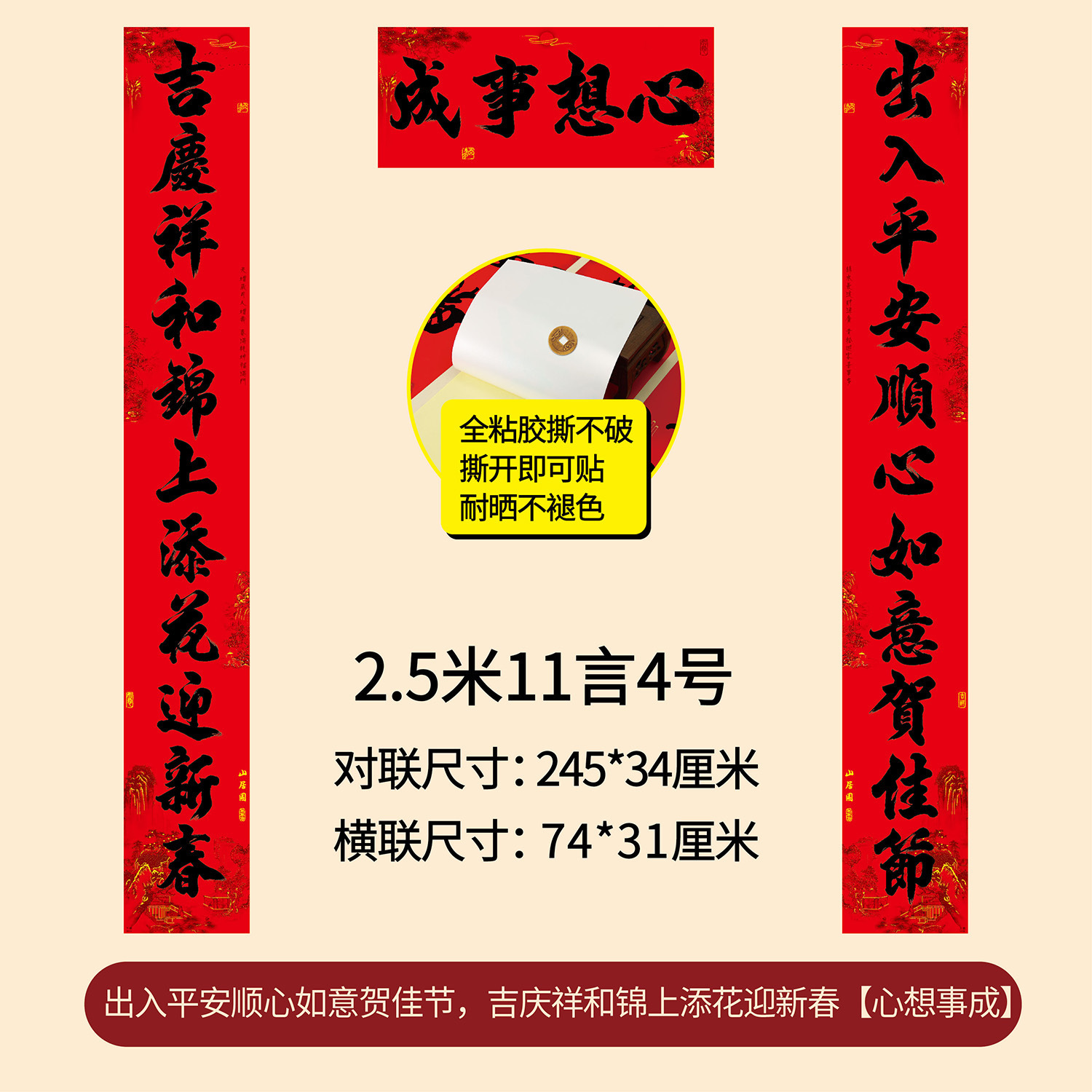 年年好家用全背胶春联农村大门11言新年春节书法黑字对联厂家直销