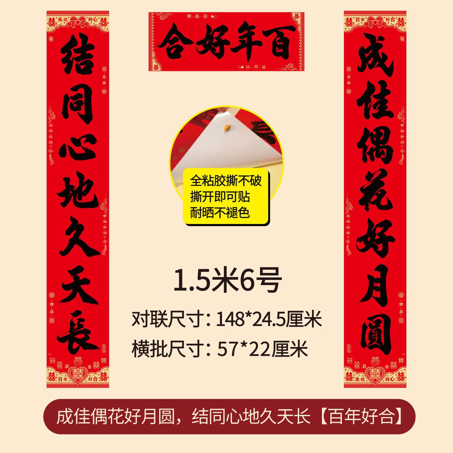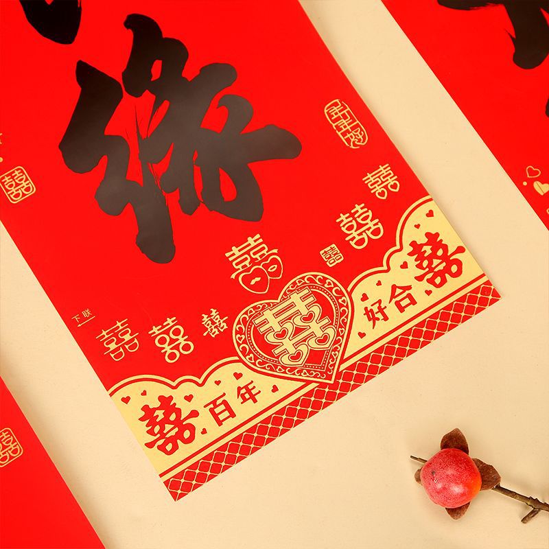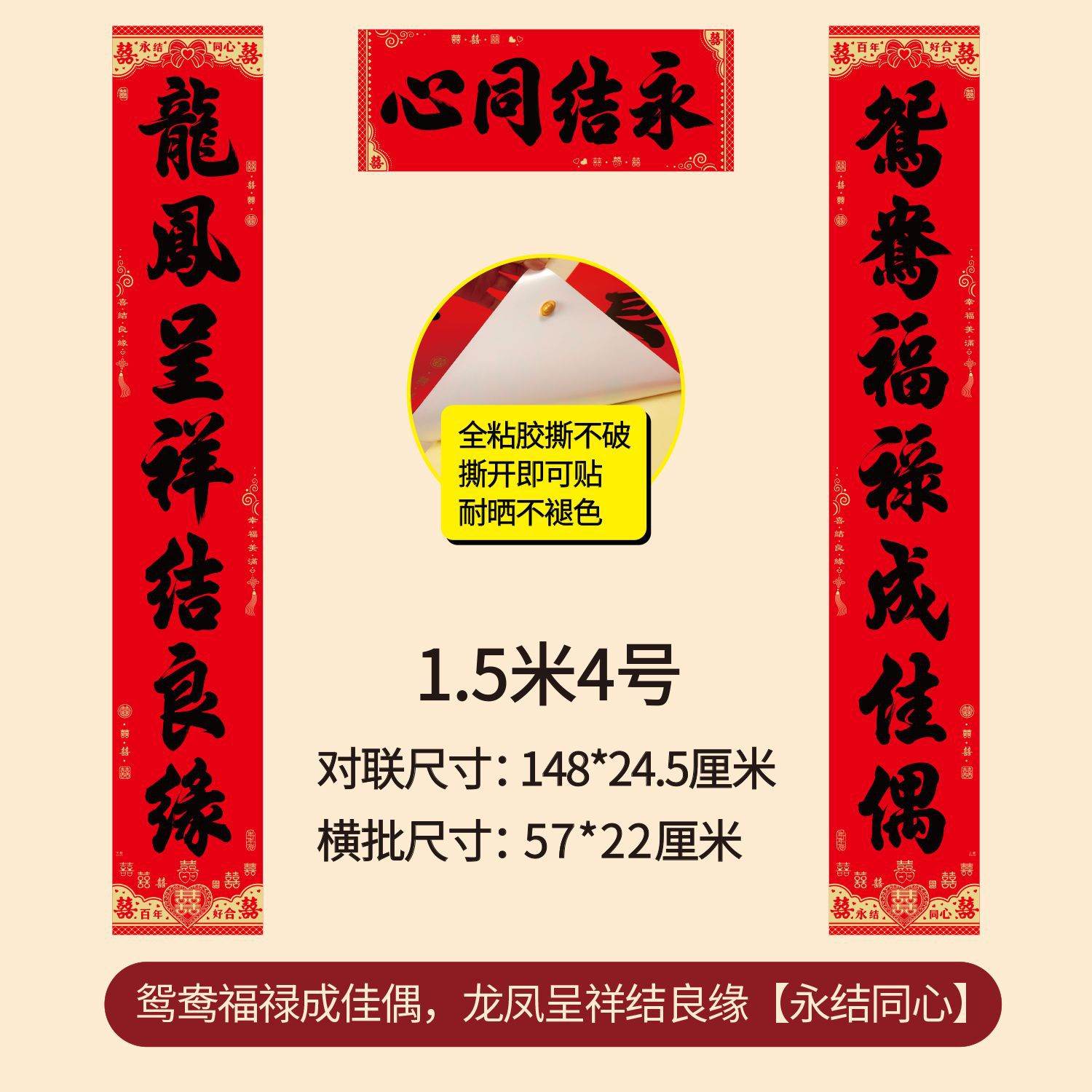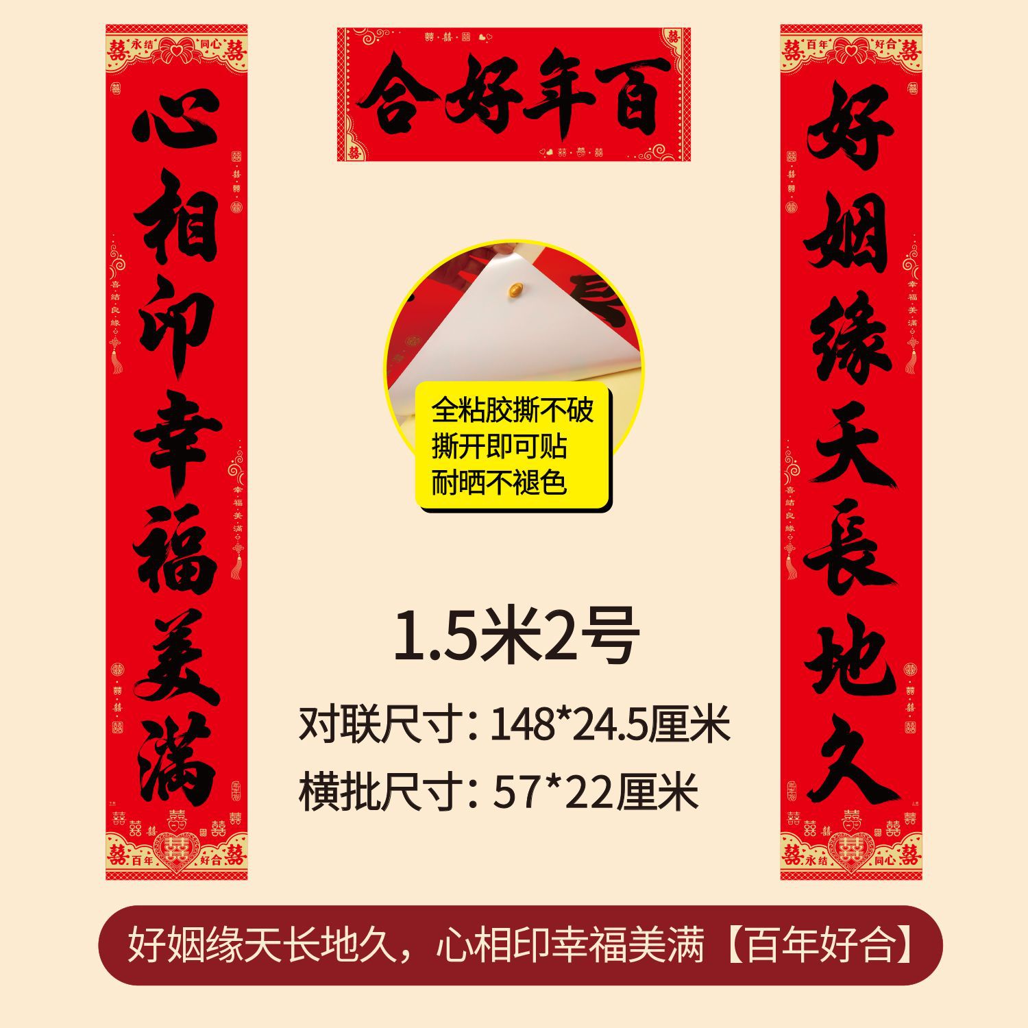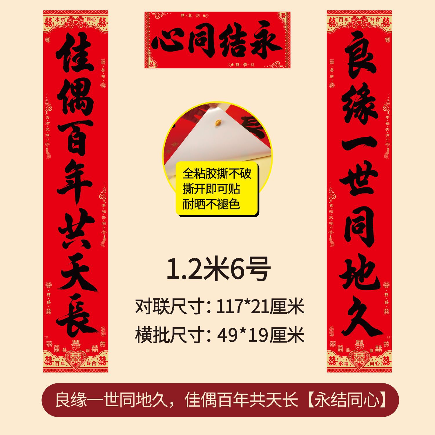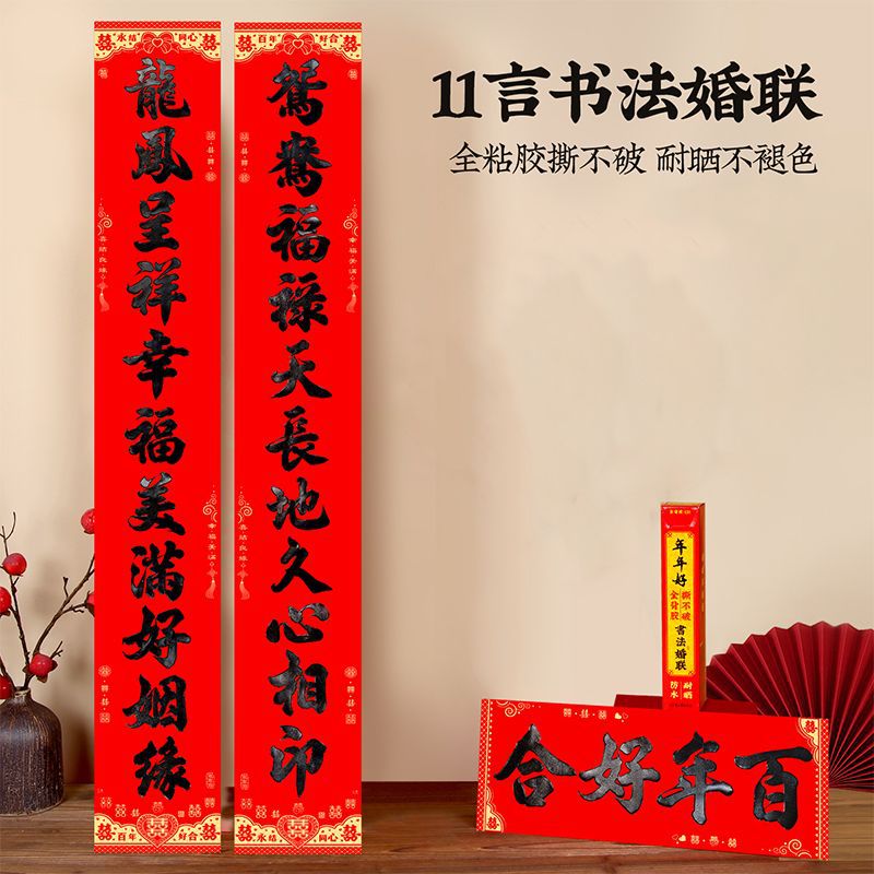 11言结婚对联男方书法全背胶农村大门婚礼布置防水撕不破女方婚联