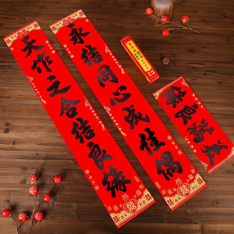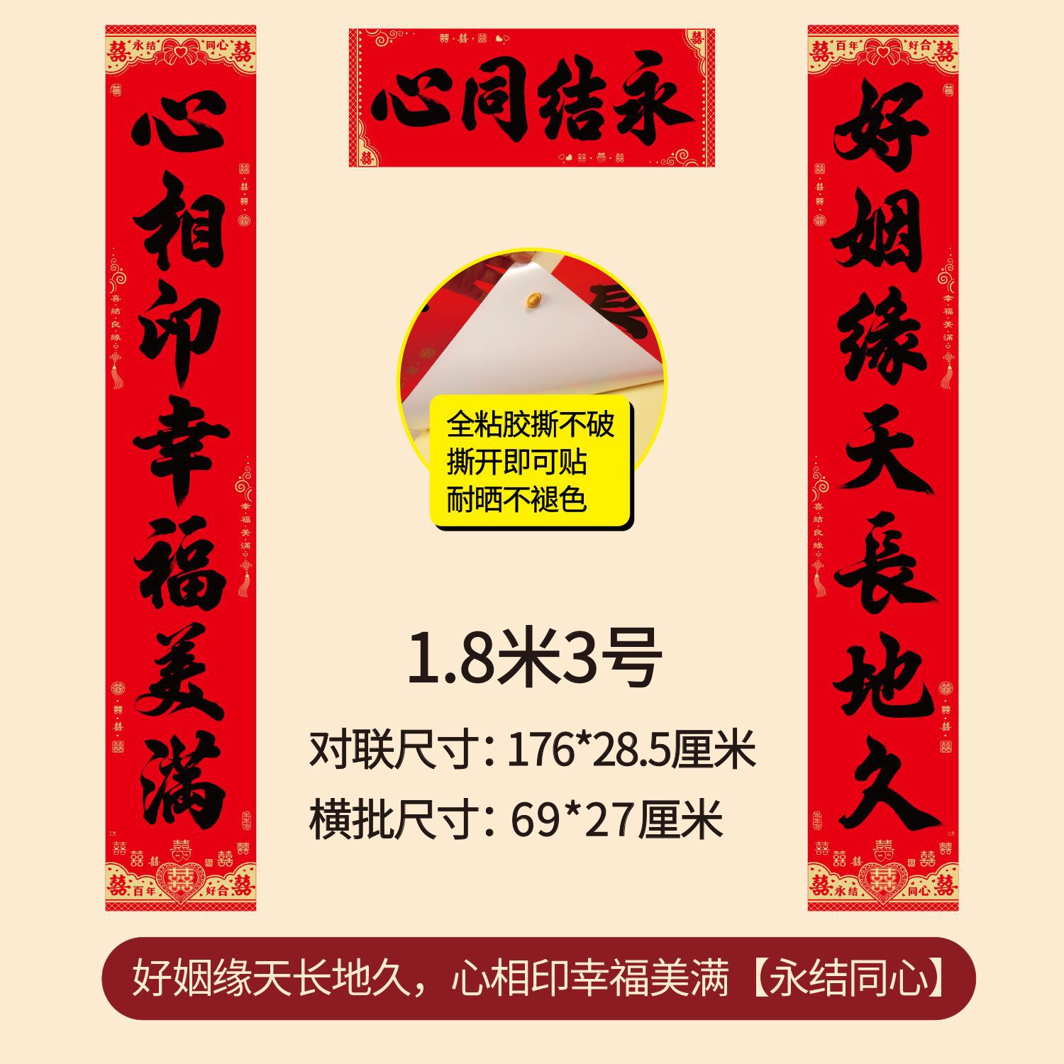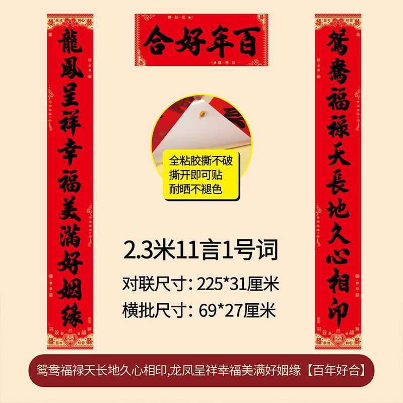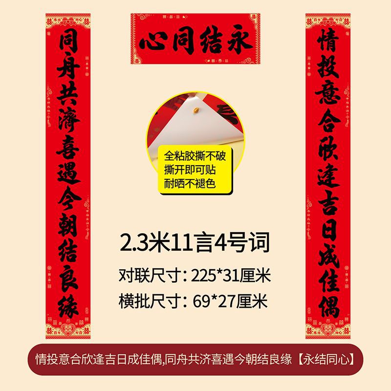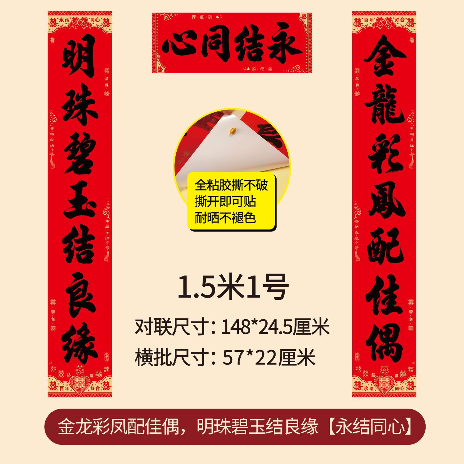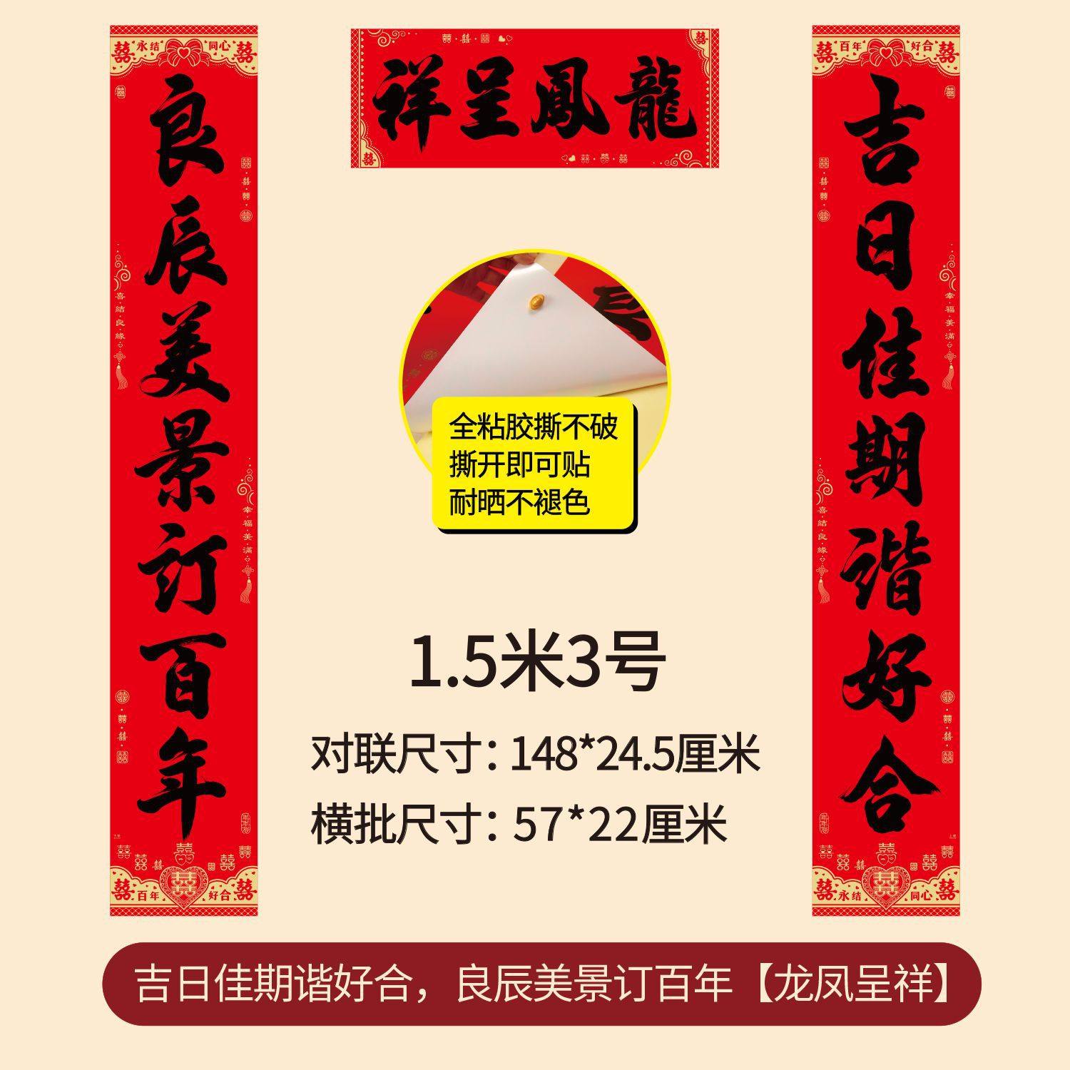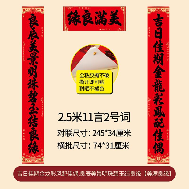 11言结婚对联男方书法全背胶农村大门婚礼布置防水撕不破女方婚联