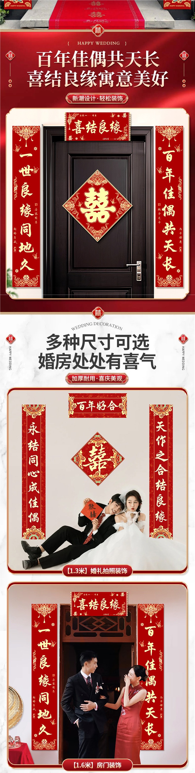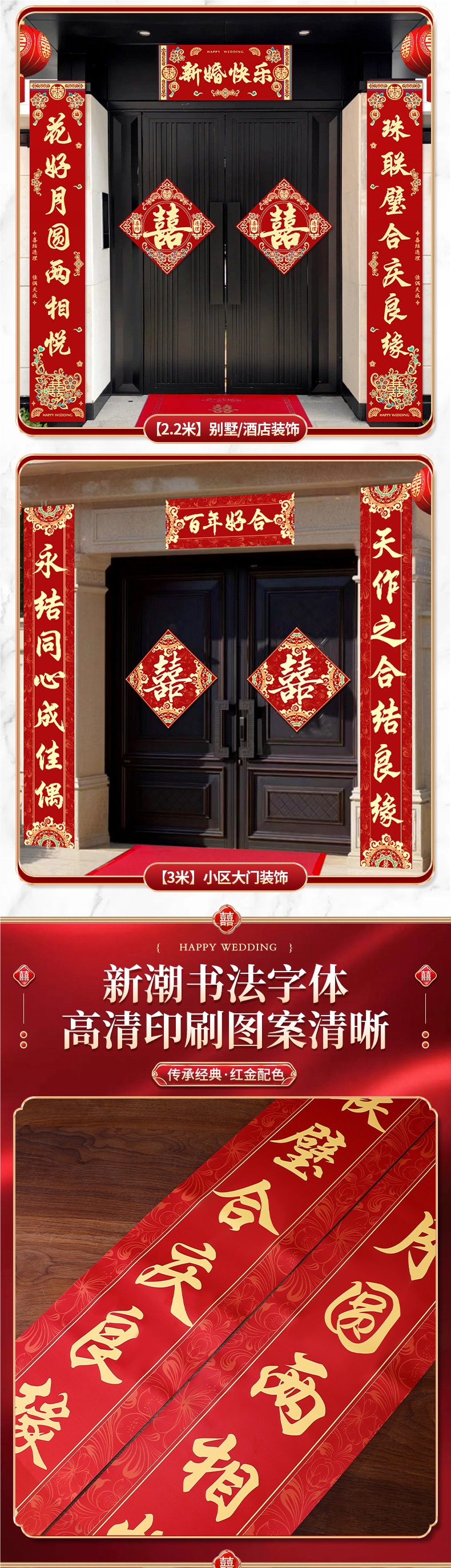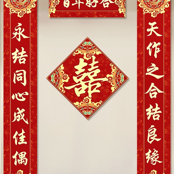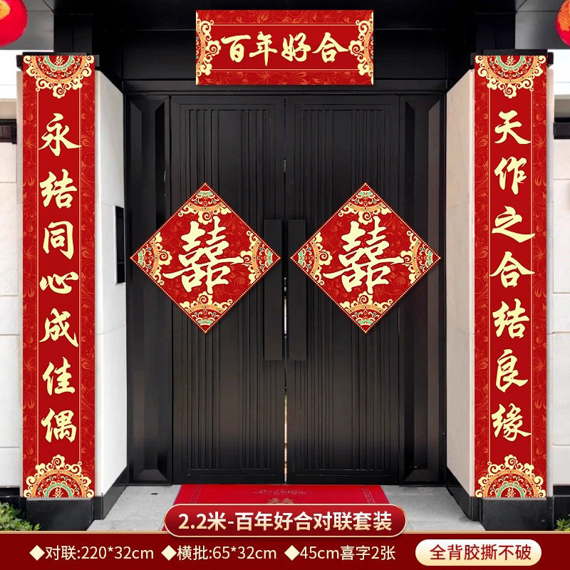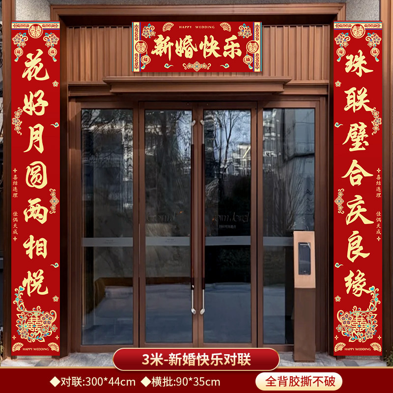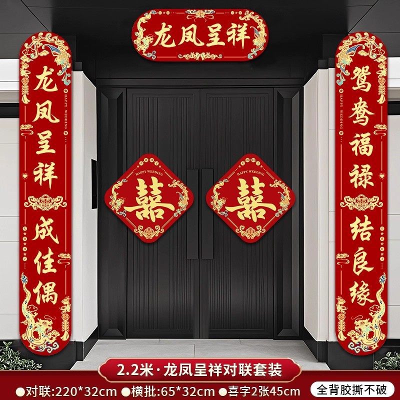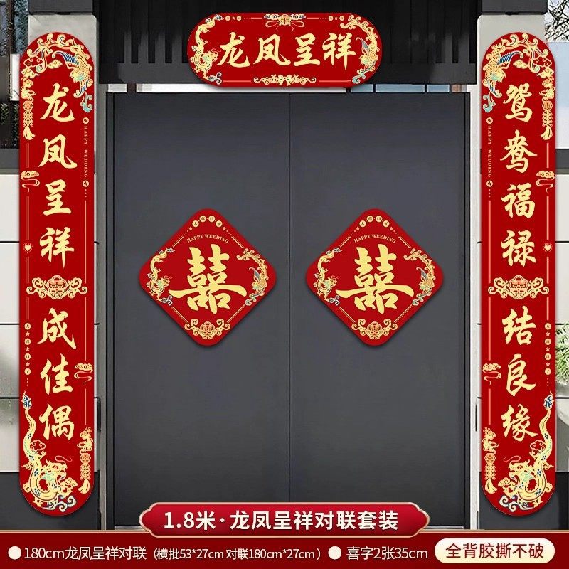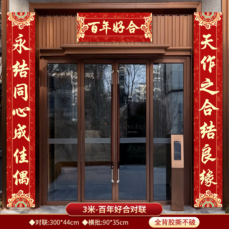 3米结婚对联男方农村大门喜联全套婚礼女方出嫁入户门喜字贴装饰