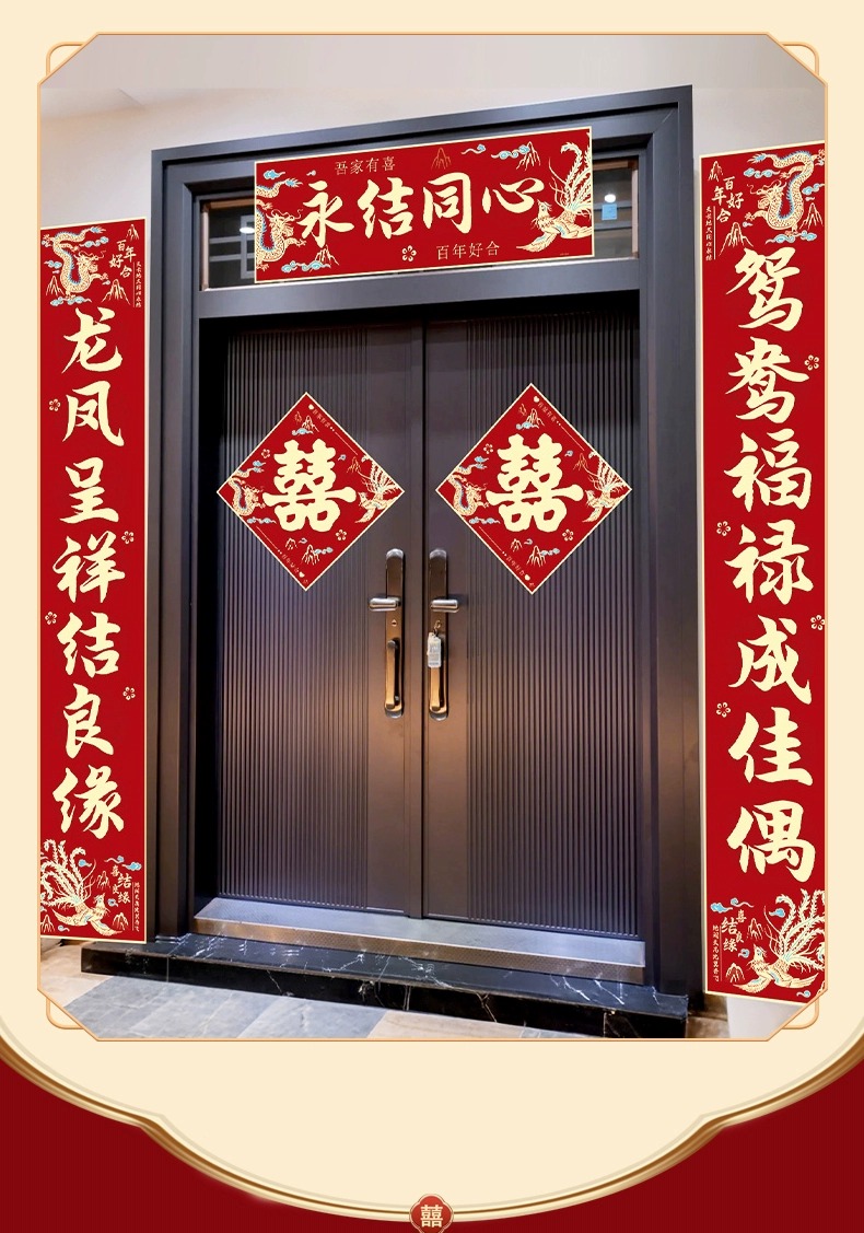 结婚对联男方农村大门喜联全套婚礼女方出嫁入户门喜字贴装饰