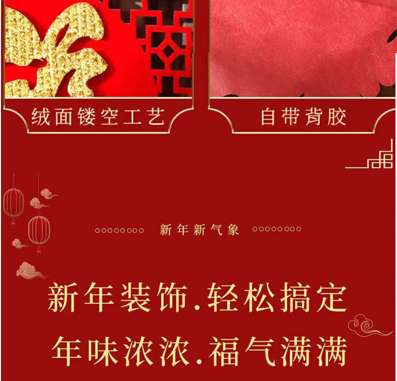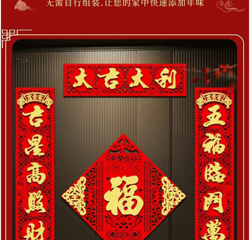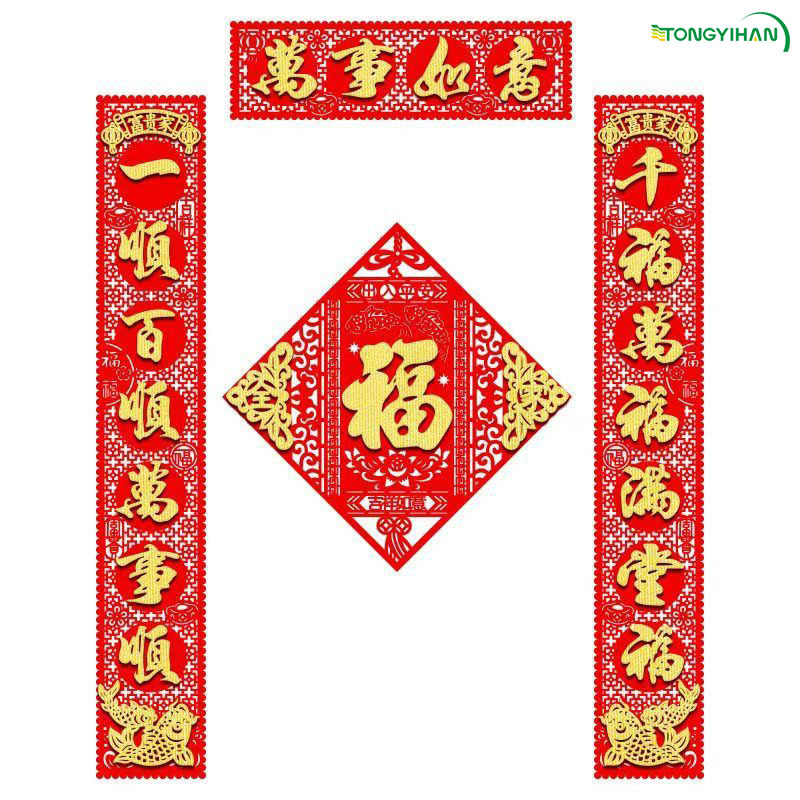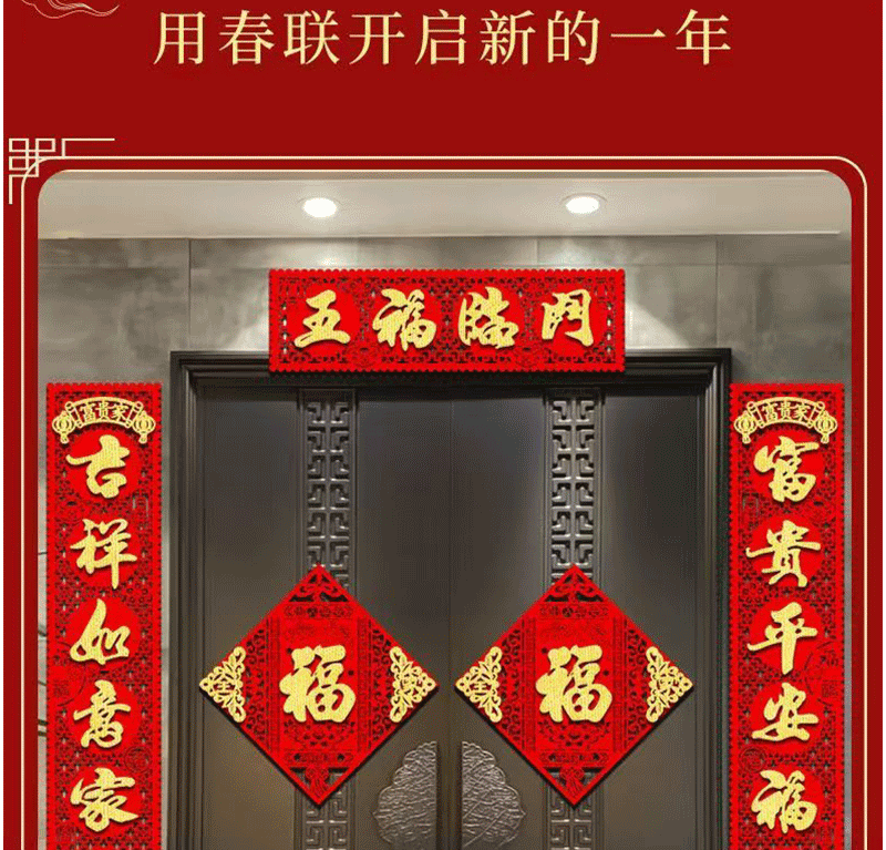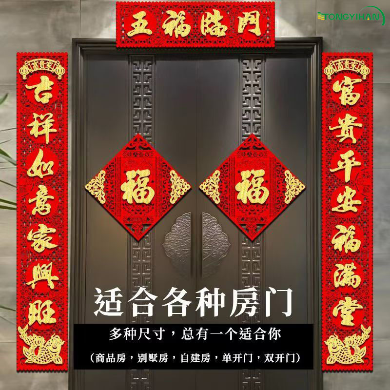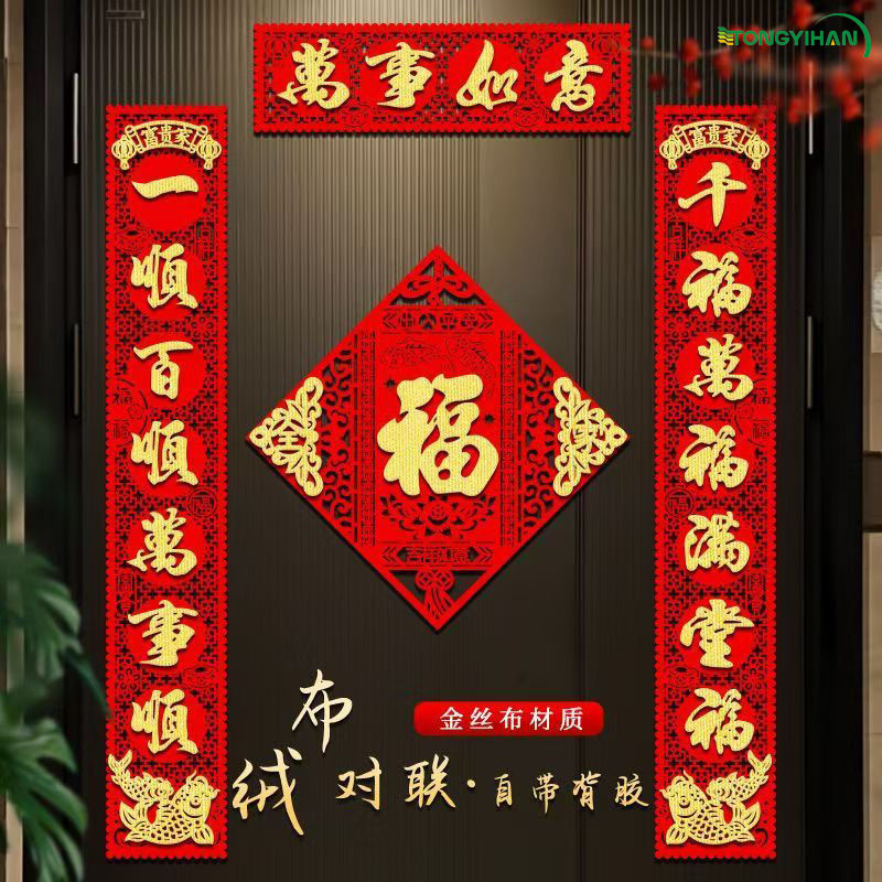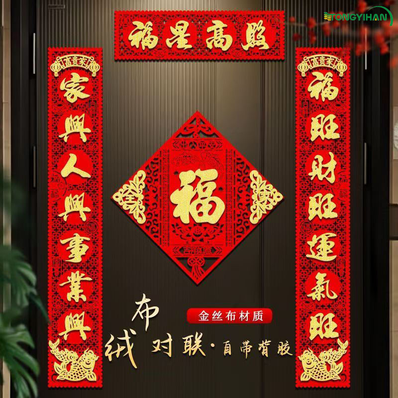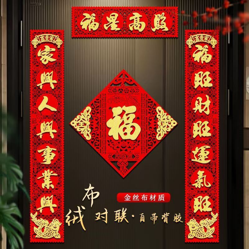 2026马年新年创意植绒对联批发过年乔迁农村大门新款春联背胶自粘