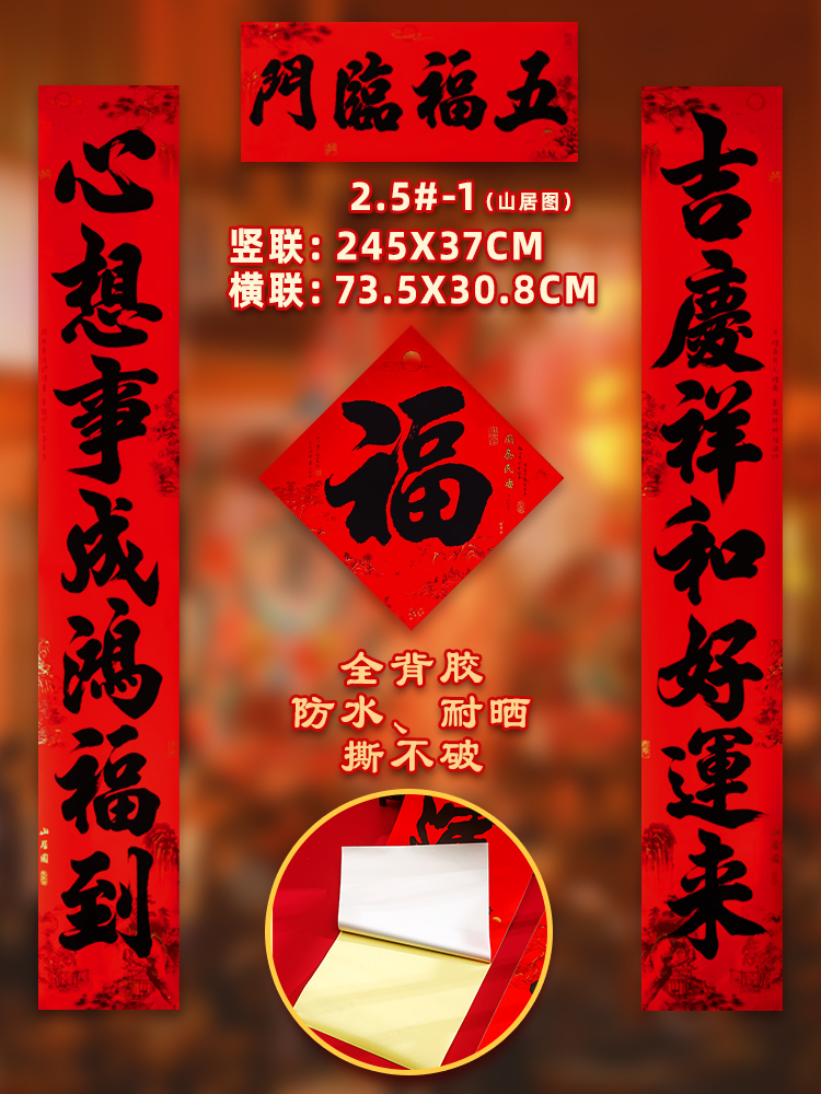 2026马年对联春联农村大门新款自粘家用春节防水全背胶过年门对联