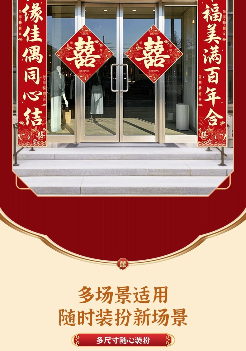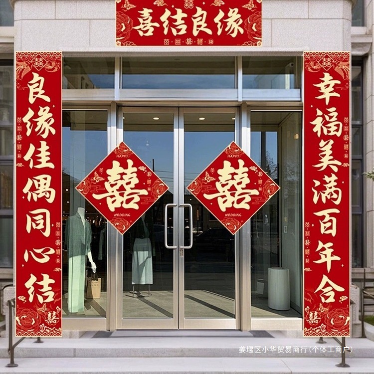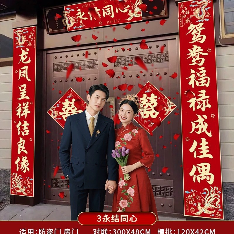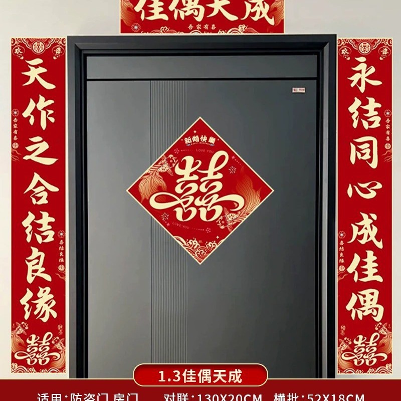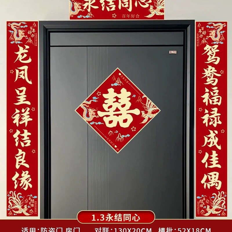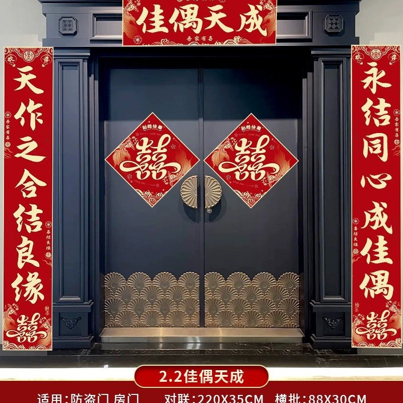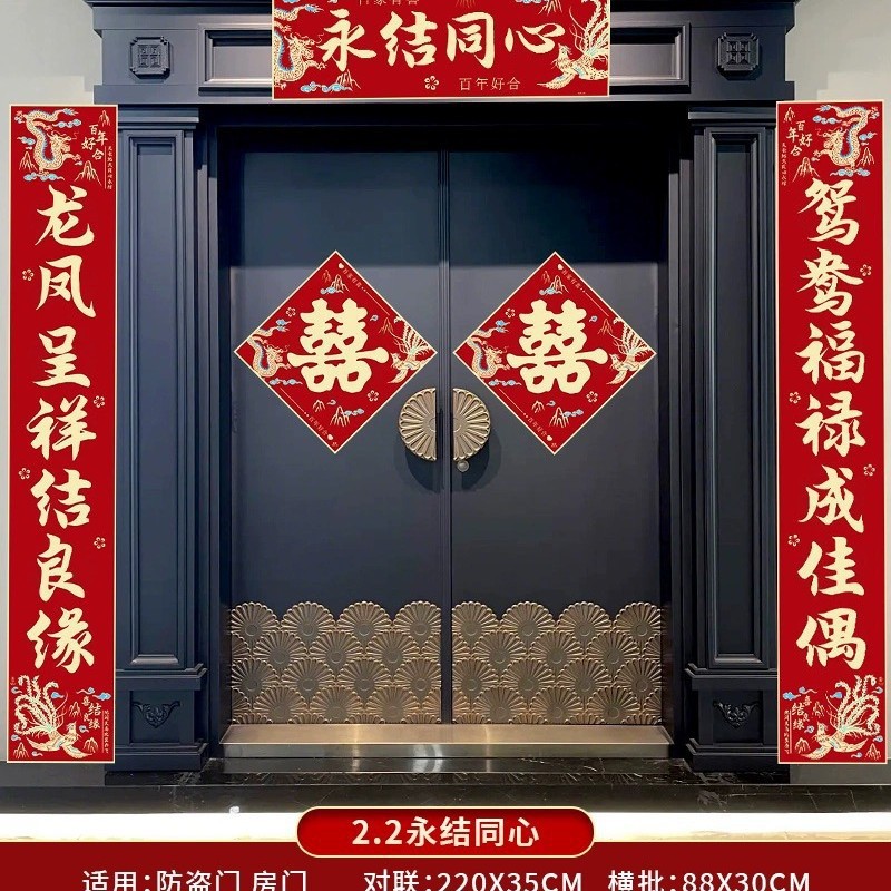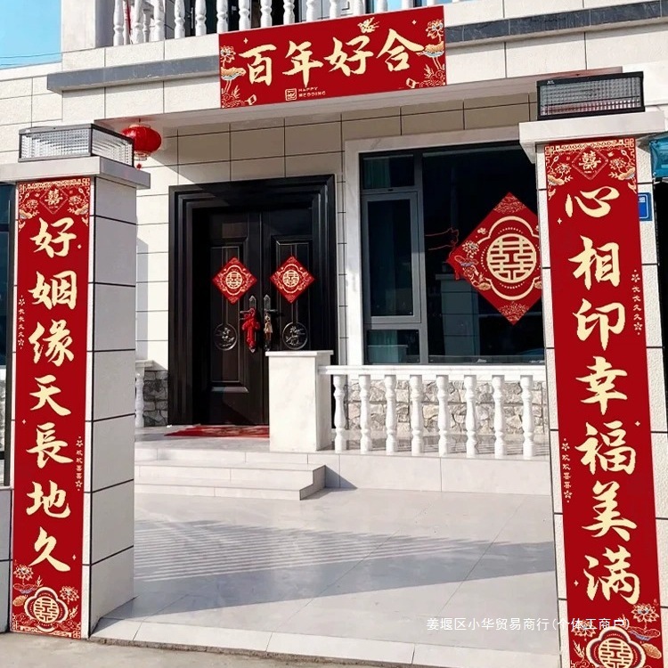 结婚对联男方农村大门喜联全套婚礼女方出嫁入户门喜字贴装饰其他