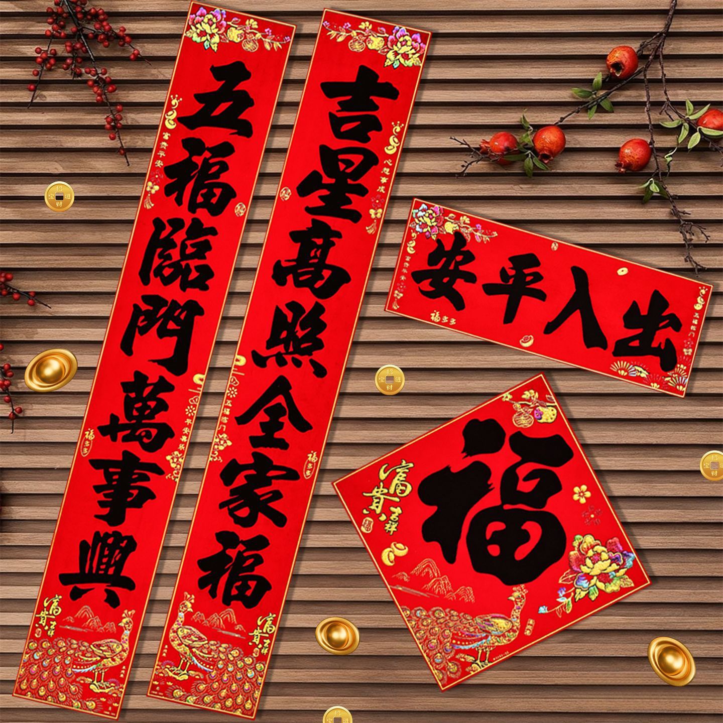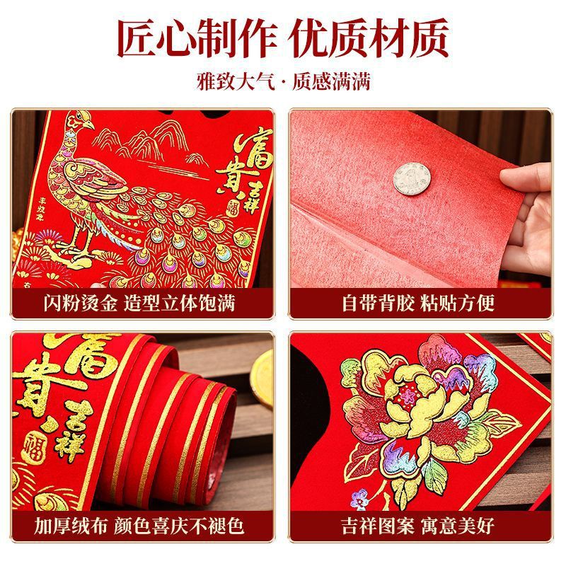 高档2026新款绒布春节对联富贵迎春自贴家用新年春联农村过年大门