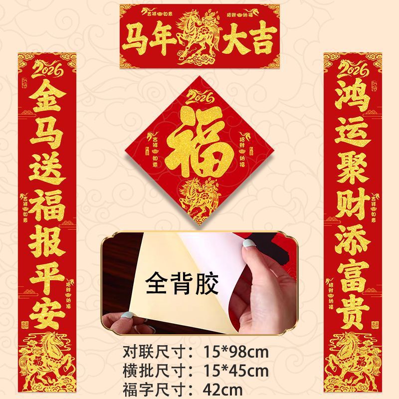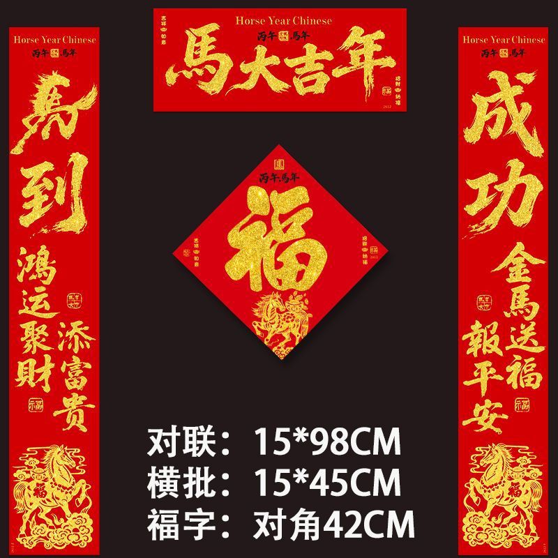 | 【长98厘米-送福字1张】全背胶金字金马对联 | USD $3.42 | 1000 piece available |