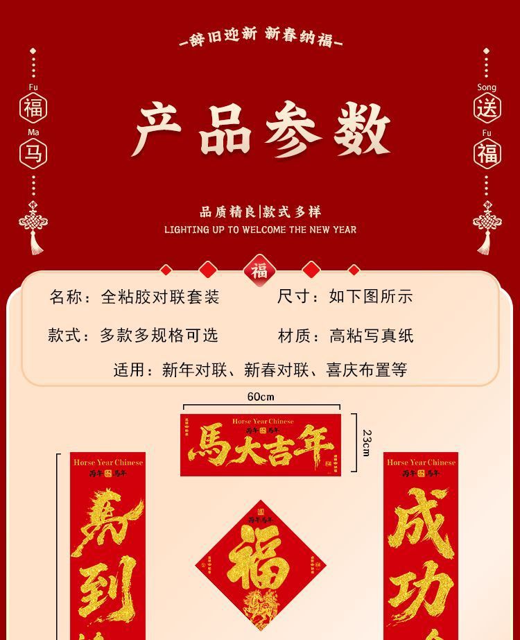 | 【长98厘米-送福字1张】全背胶金字金马对联 | USD $3.42 | 21000 piece available |