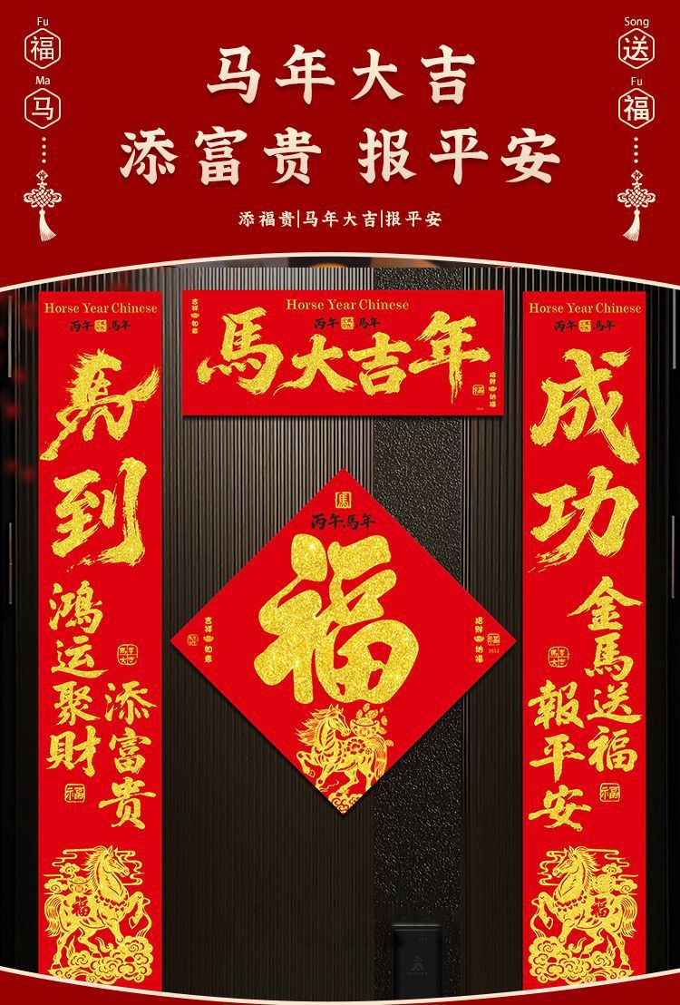 | 【长200厘米-送福字2张】全背胶金字金马对联 | USD $7.64 | 1000 piece available |