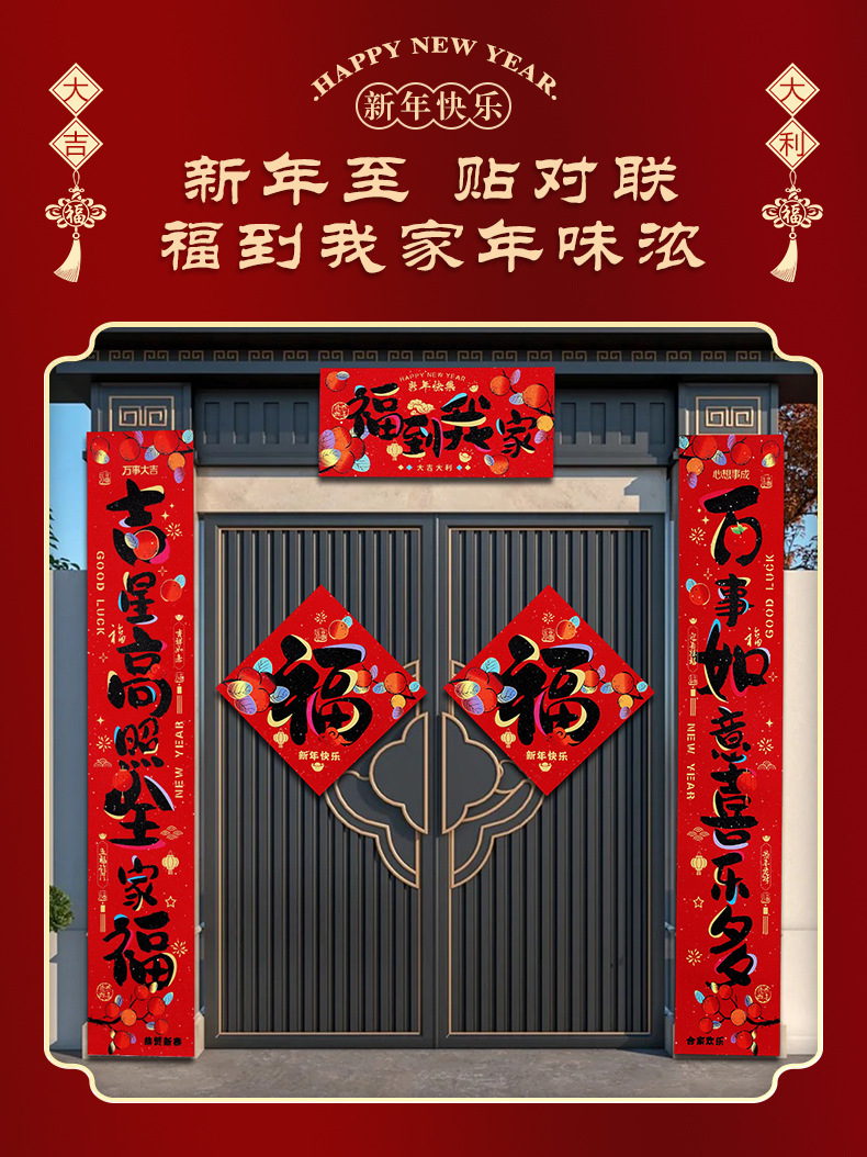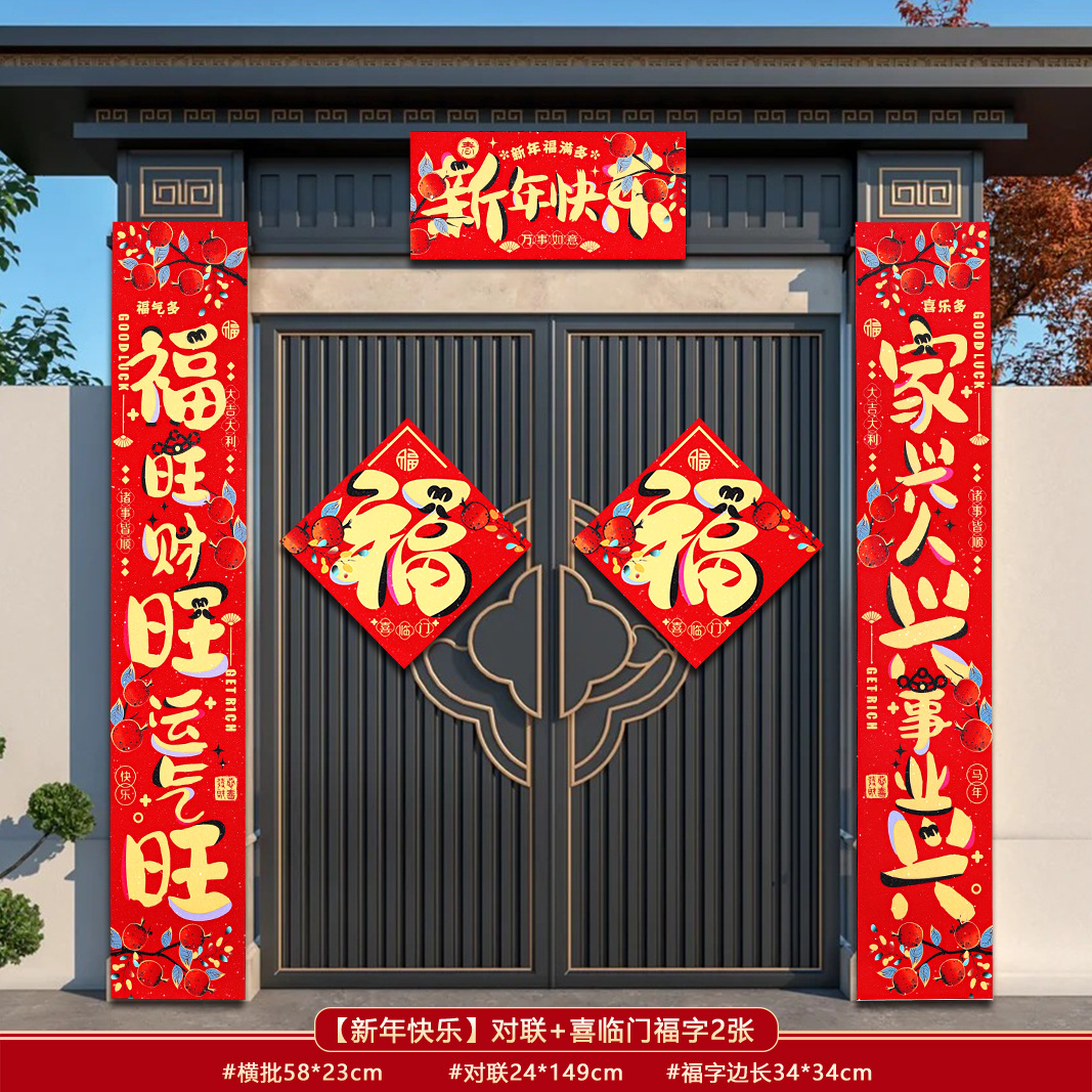 对联2026新款马年春联过年农村大门自建房带背胶福字门贴年货批发