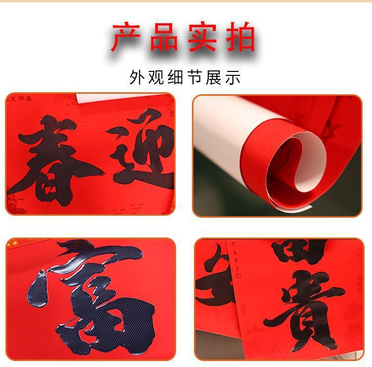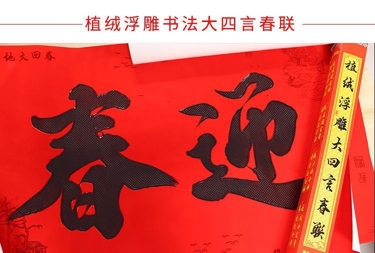 新款2026年植绒四字新年对联全套农村大双开门黑字大四言过年对联