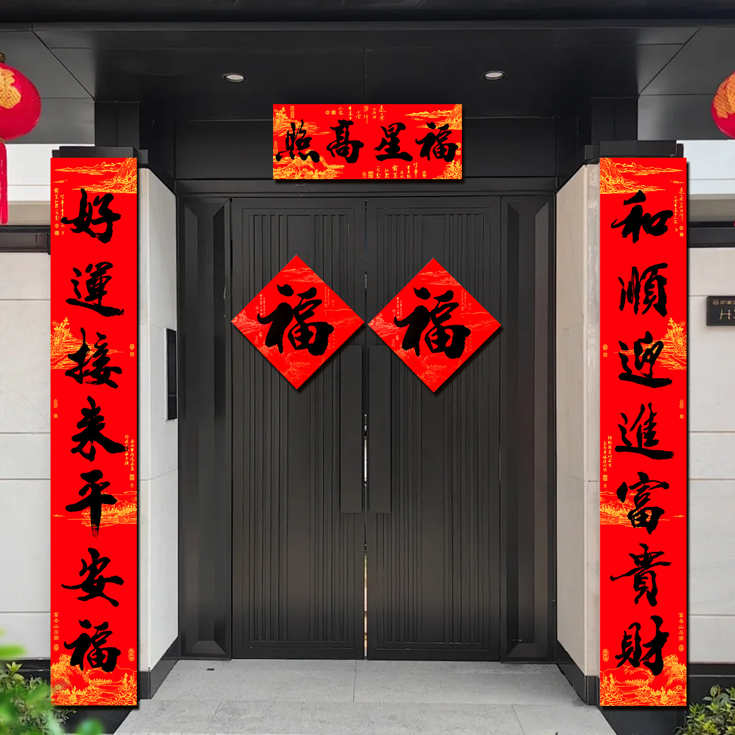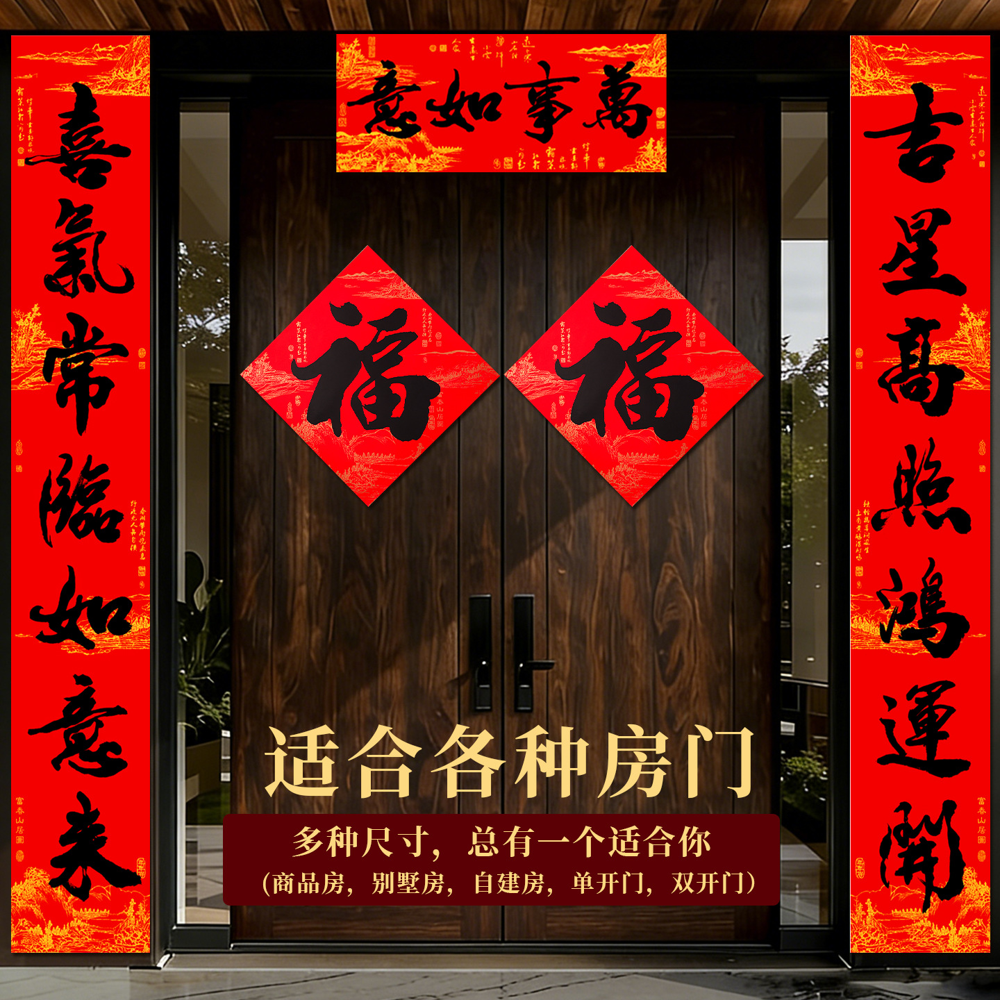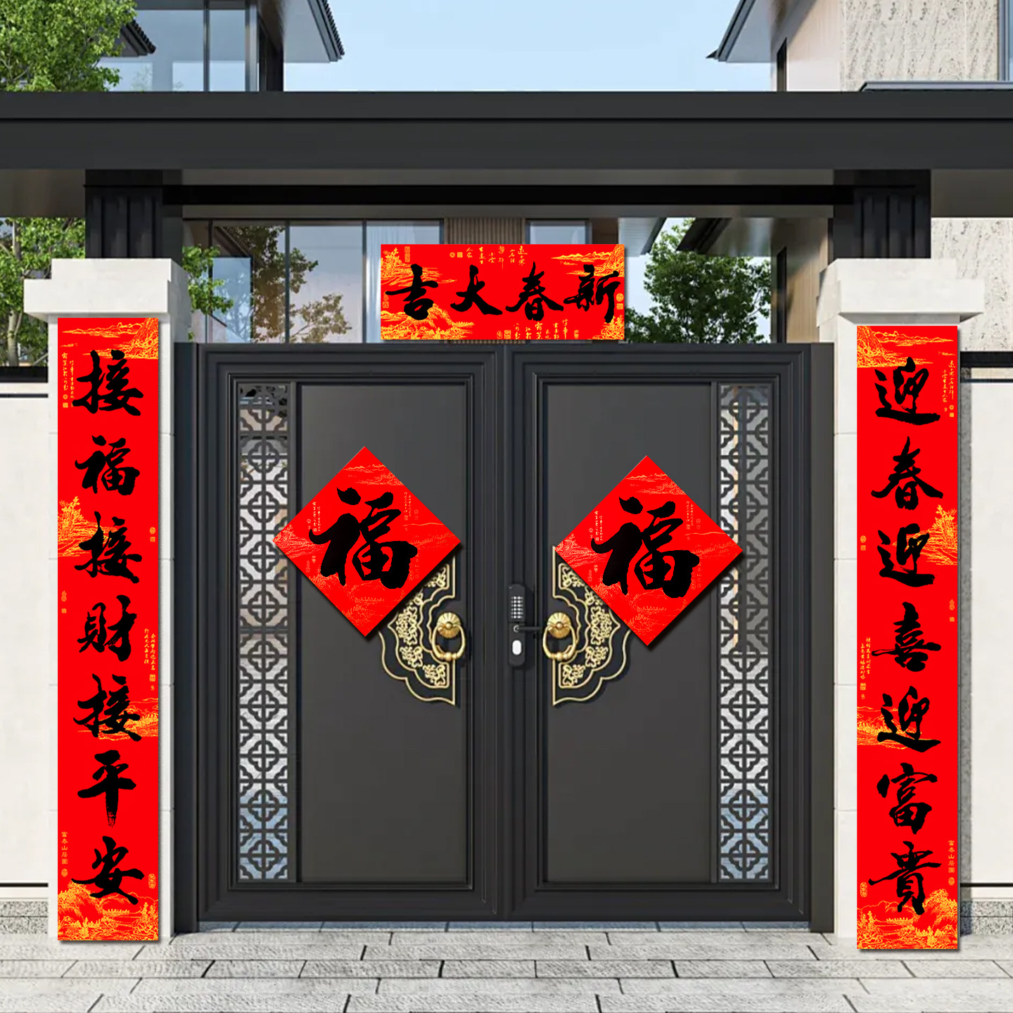 2026年新年春节书法对联高档植绒布福字大门贴农村自建房过年门联