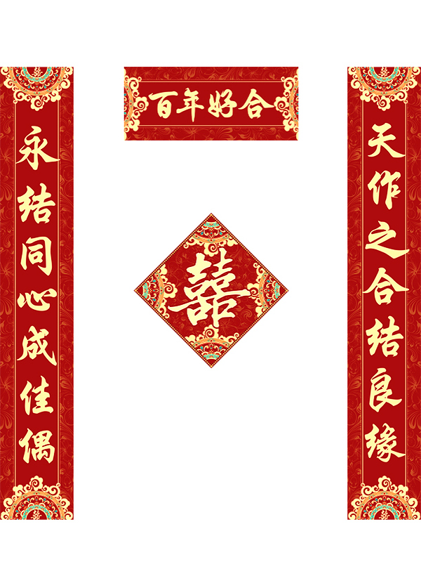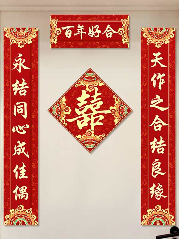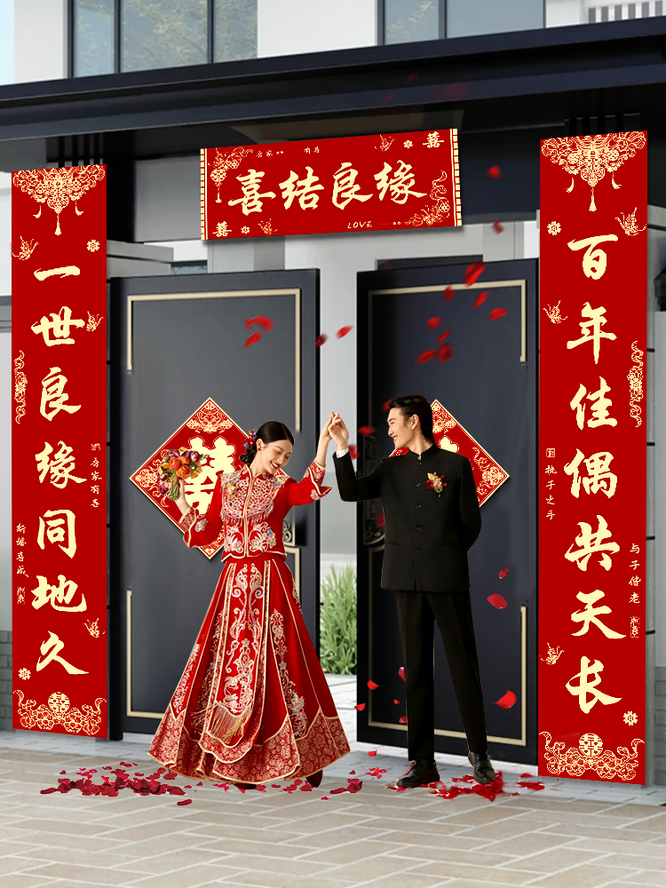 3米结婚对联男方农村大门喜联全套婚礼女方出嫁入户门喜字贴装饰