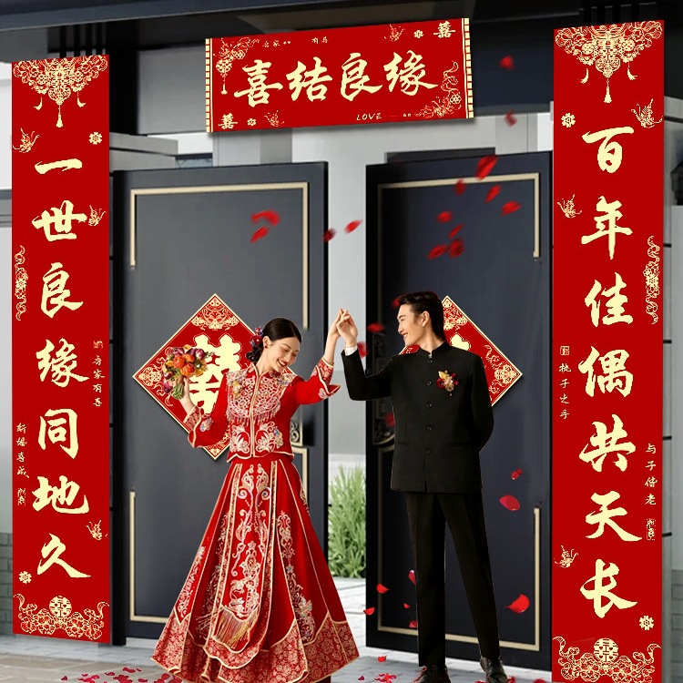3米结婚对联男方农村大门喜联全套婚礼女方出嫁入户门喜字贴装饰