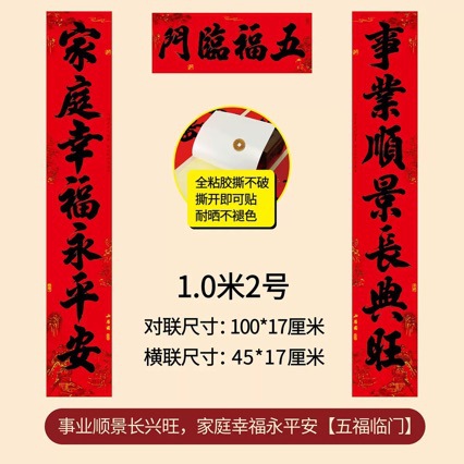 | 1.0m five blessings lucky, everything goes well to safe trip (real length 100 * 17cm)(1.0M五福临门鸿运开,万事顺心如意来出入平安(实长100*17cm)) | USD $0.97 | 350 pay available |