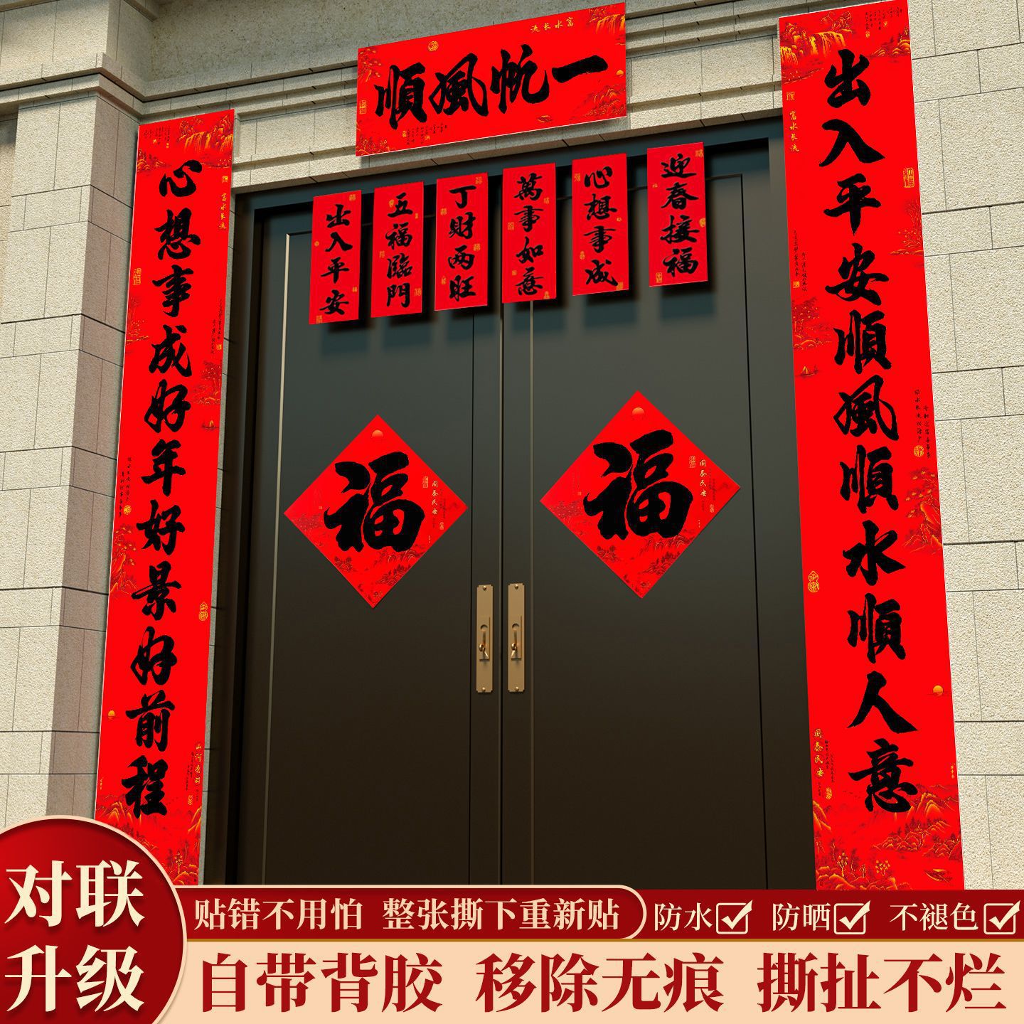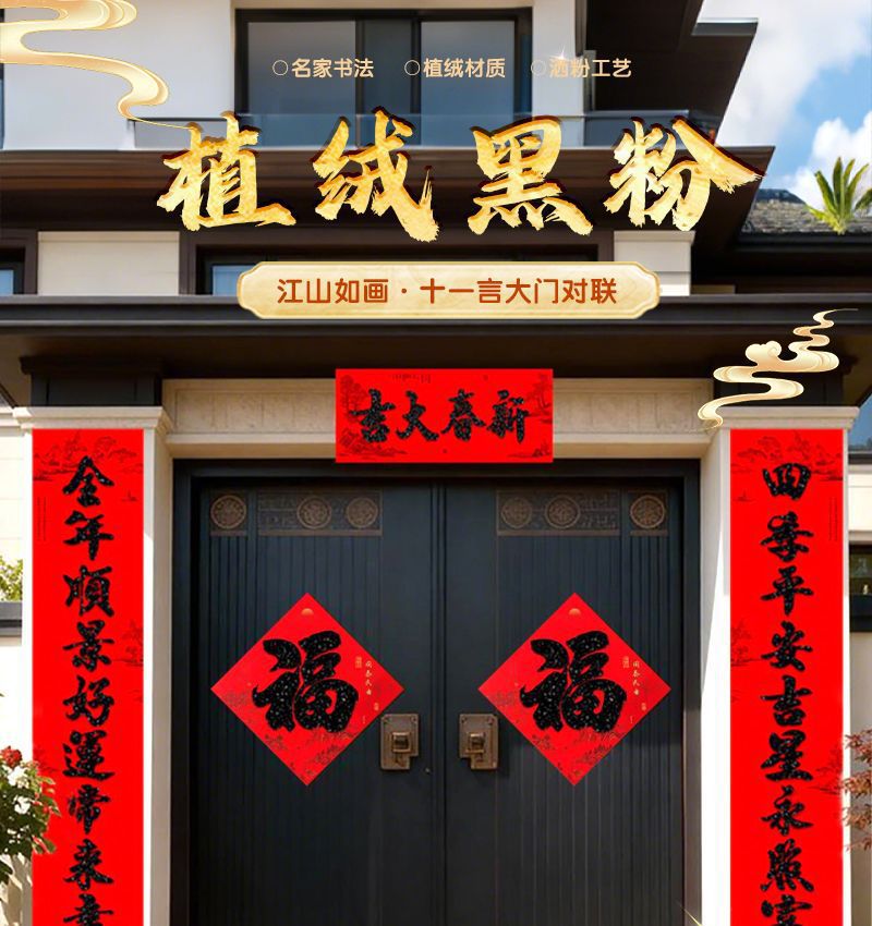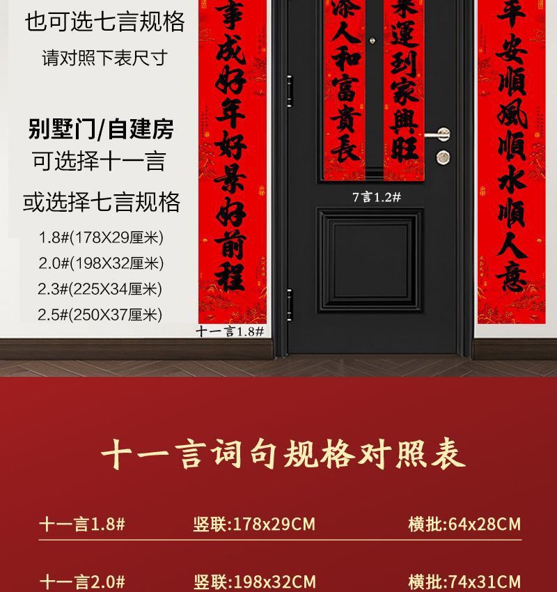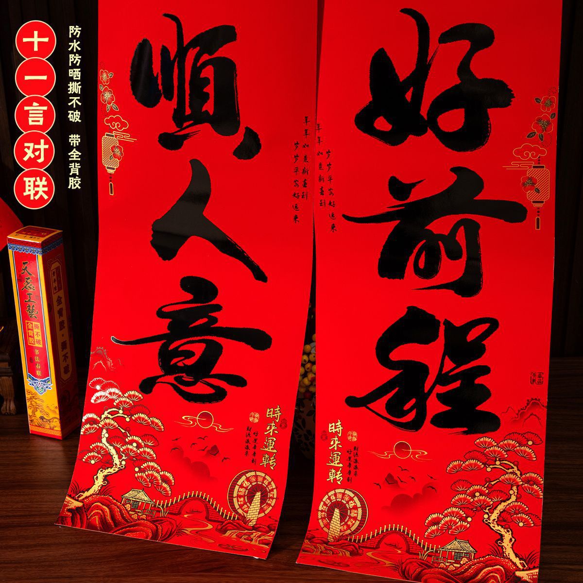 自粘十一言背胶2026年对联11字书法黑字春联农村大门对新年全年红
