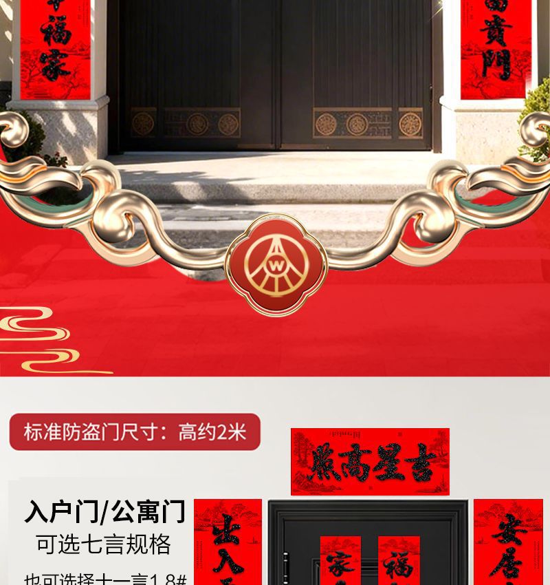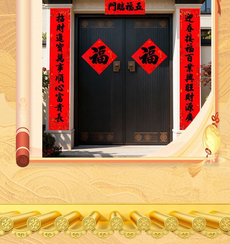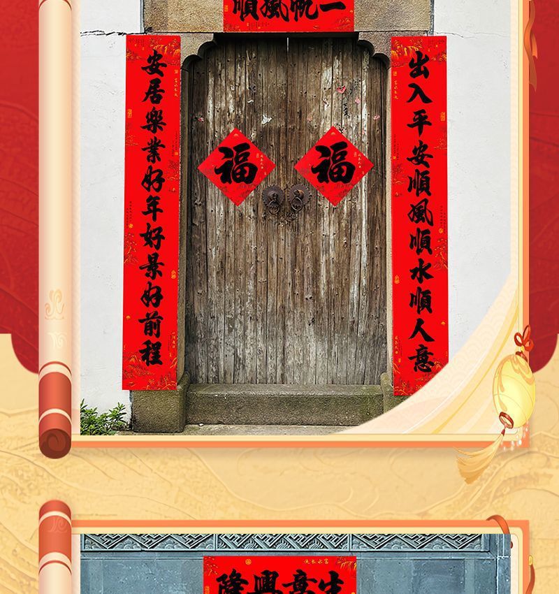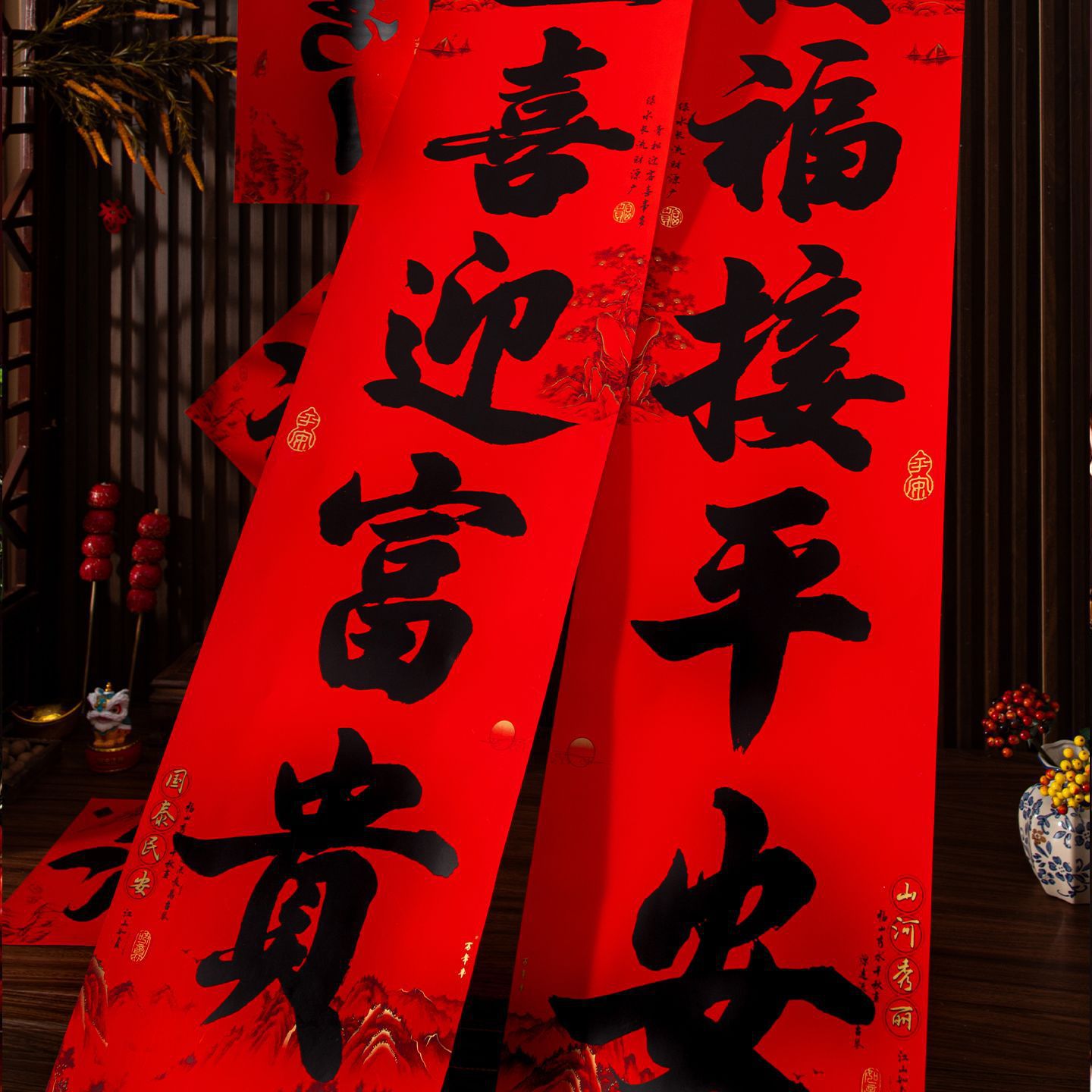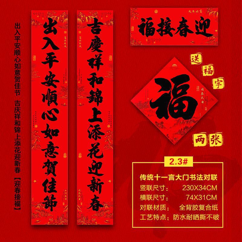 自粘十一言背胶2026年对联11字书法黑字春联农村大门对新年全年红