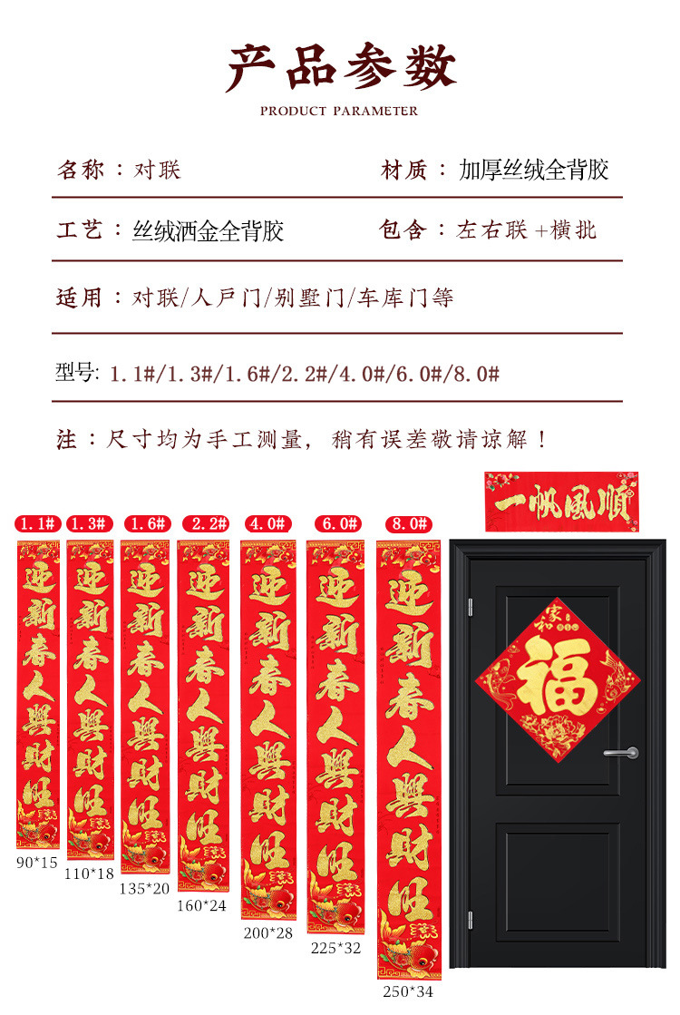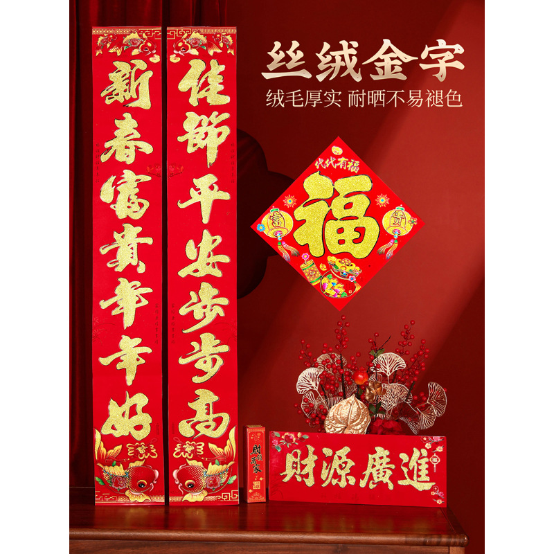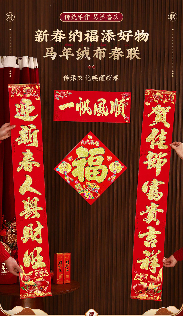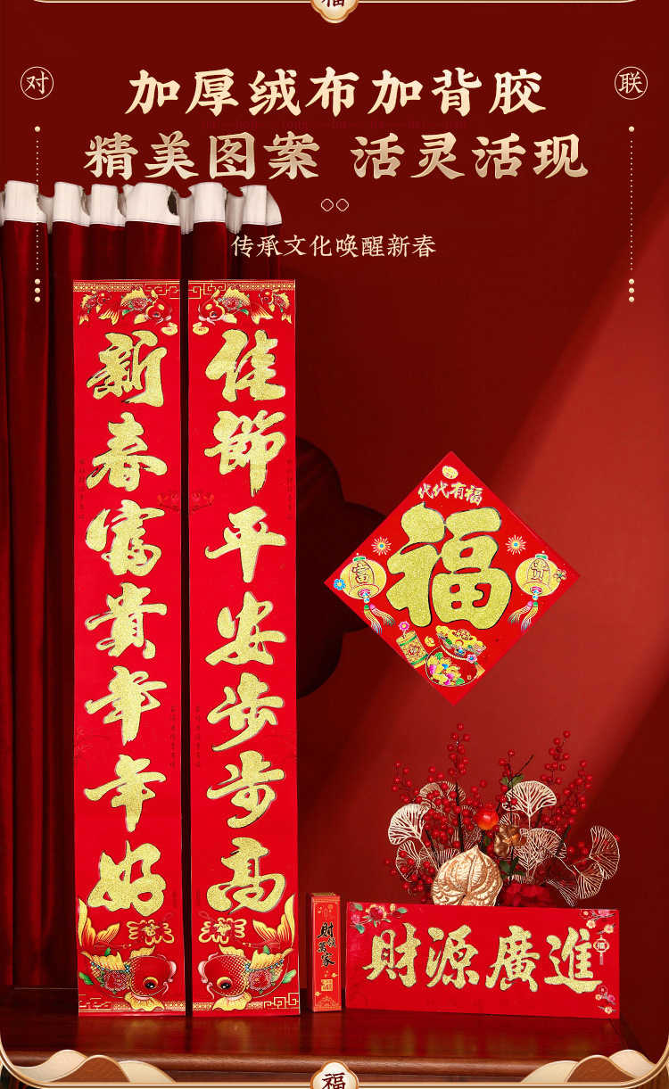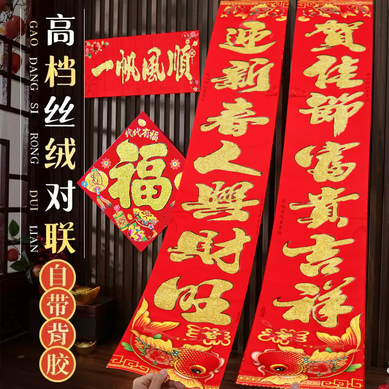 对联2026马年春联新款春节家用过新年丝绒农村自建房大门自粘背胶