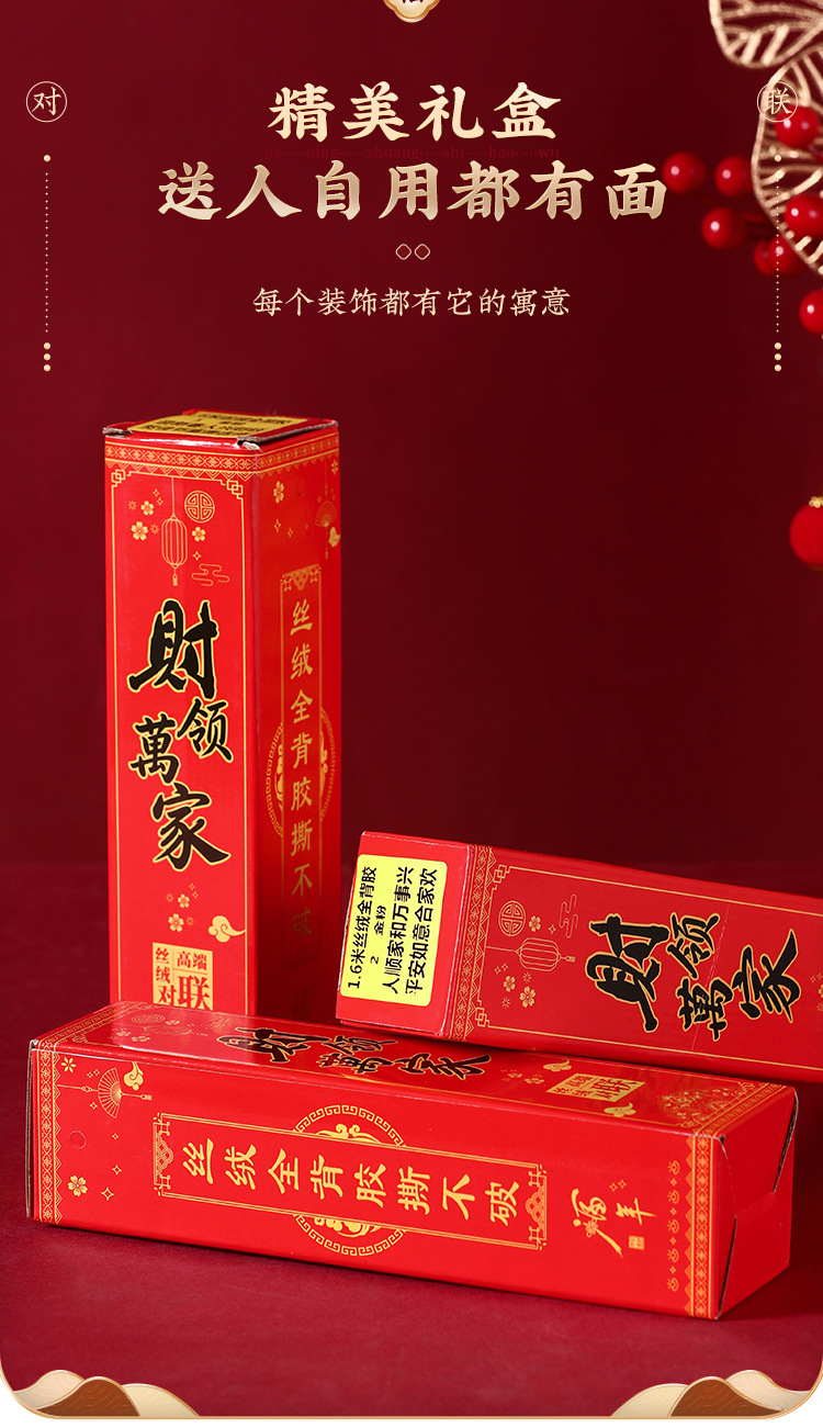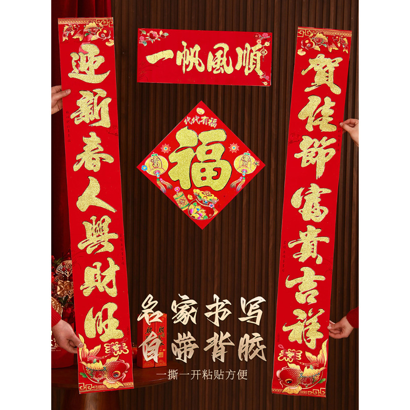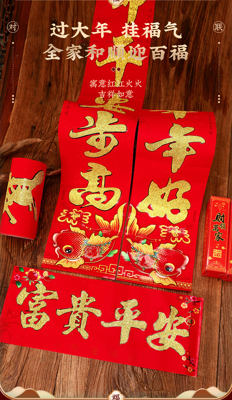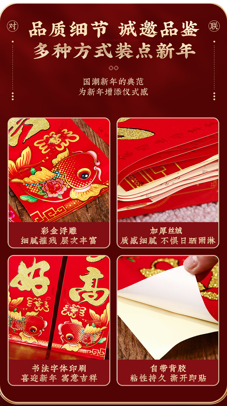 对联2026马年春联新款春节家用过新年丝绒农村自建房大门自粘背胶