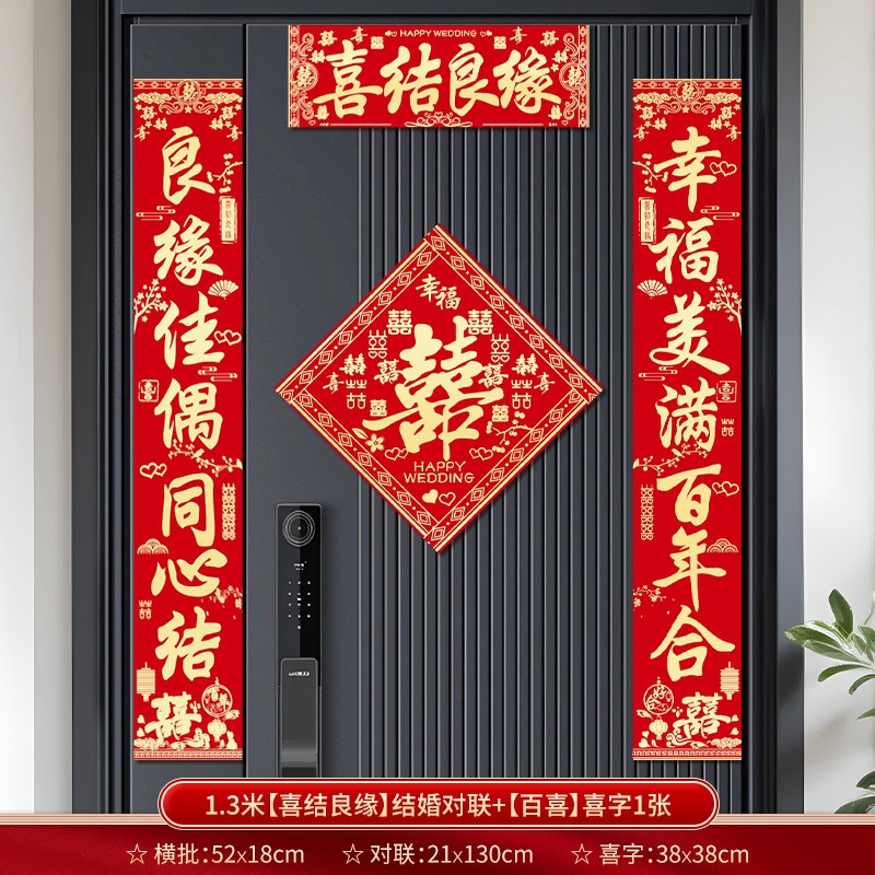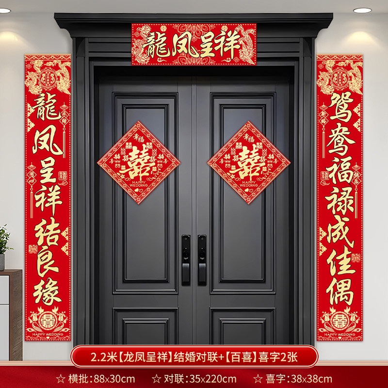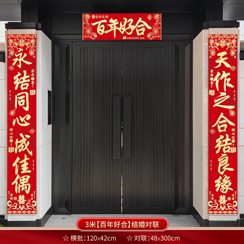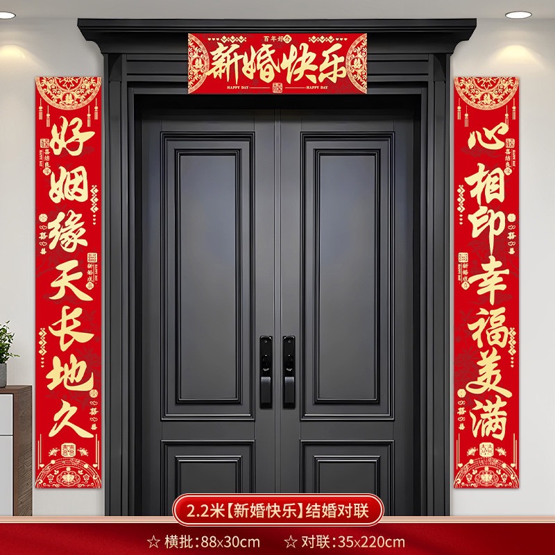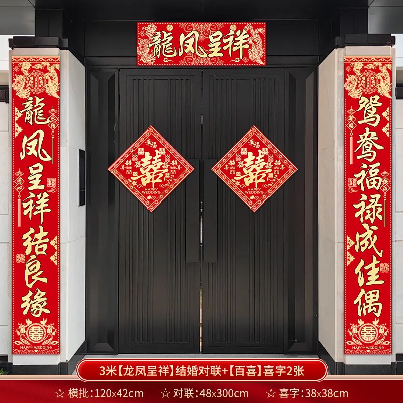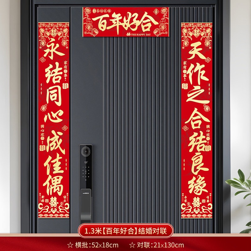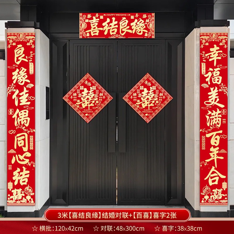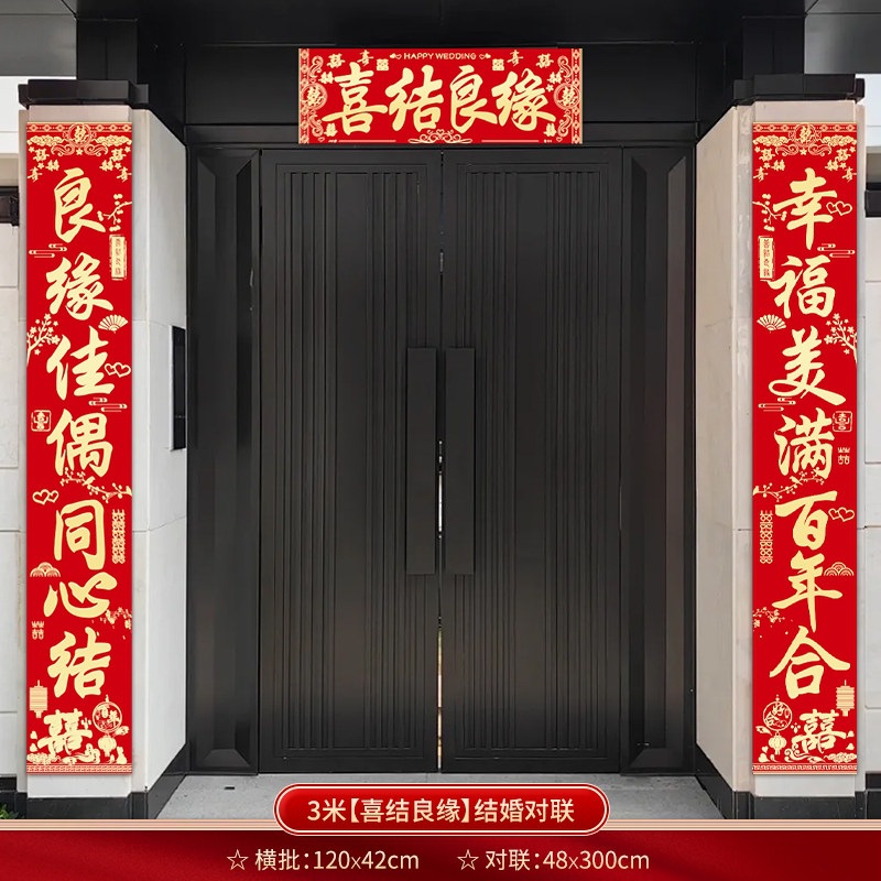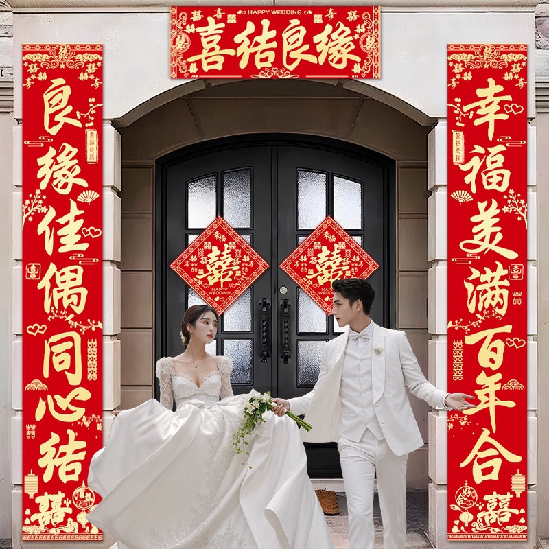 结婚对联别墅大门农村院子男方喜联全套婚礼女方出嫁入户门联装饰