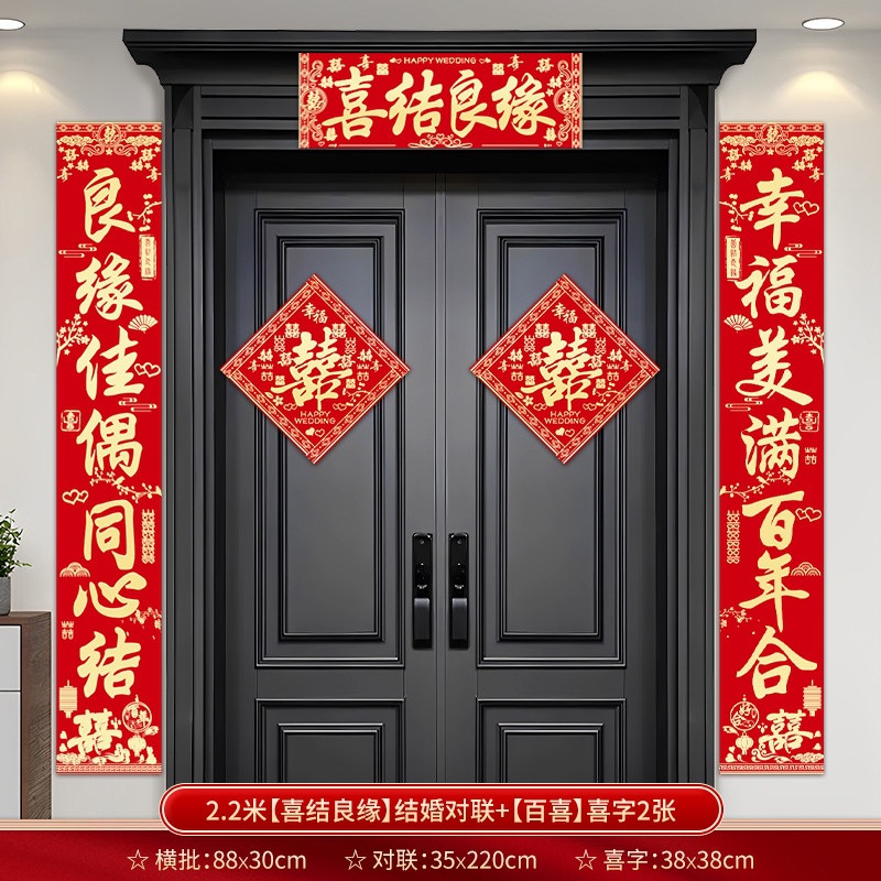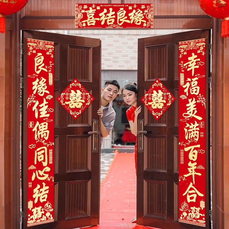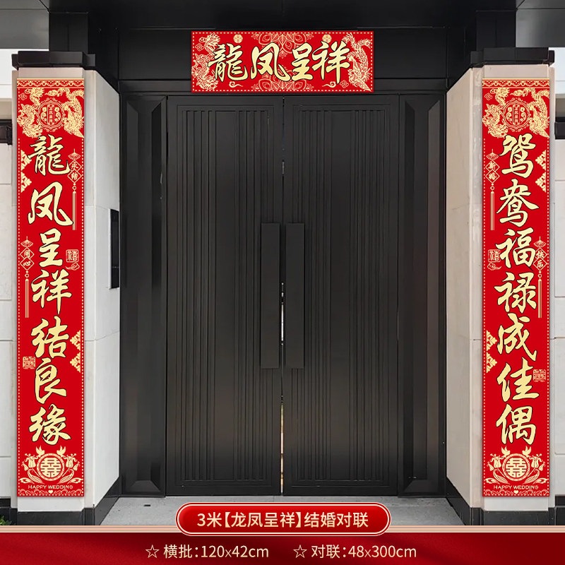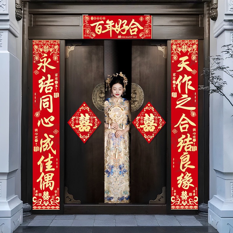 结婚对联别墅大门农村院子男方喜联全套婚礼女方出嫁入户门联装饰